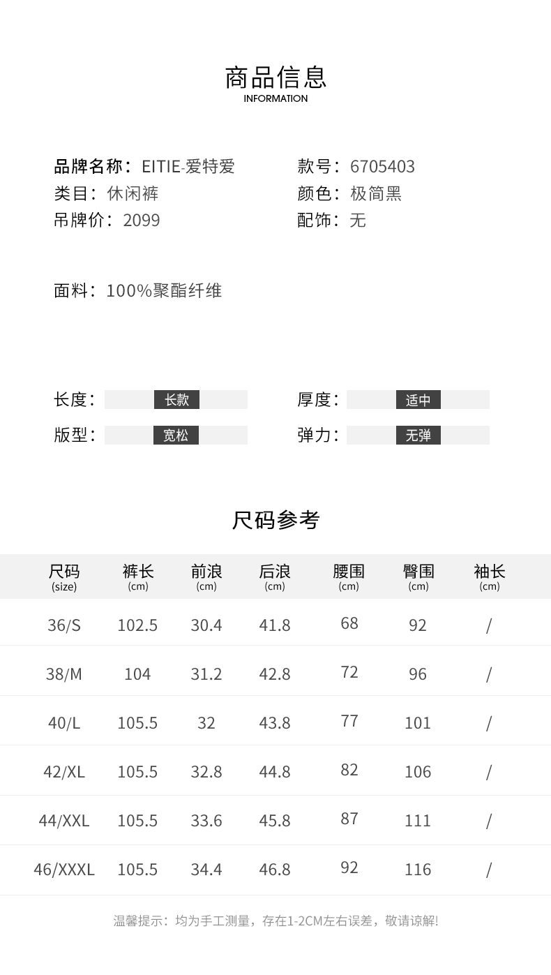 EITIE爱特爱秋季新款女时尚休闲高腰女装长裤子6705403