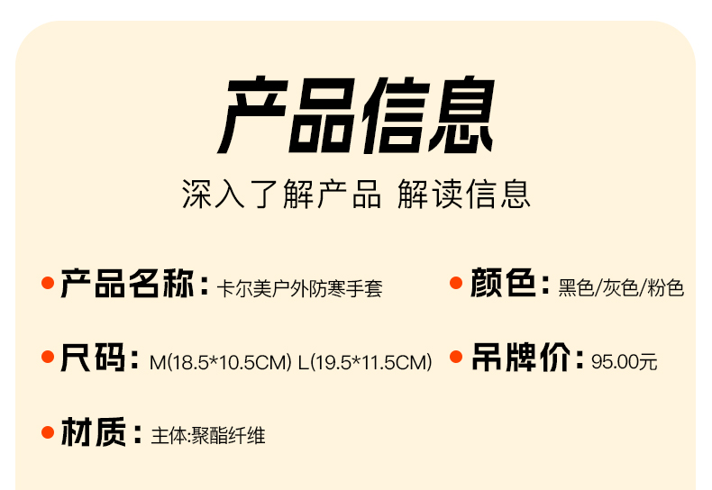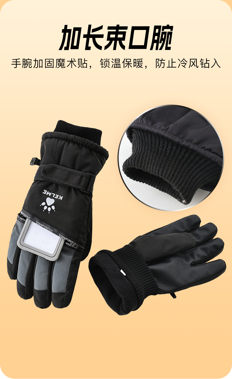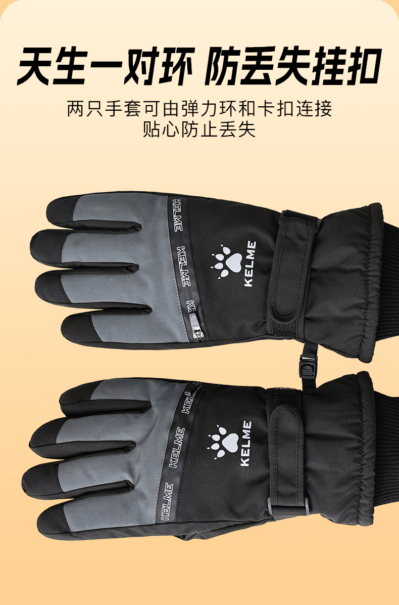 卡尔美滑雪手套-拉链款