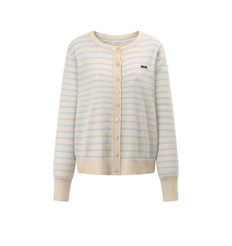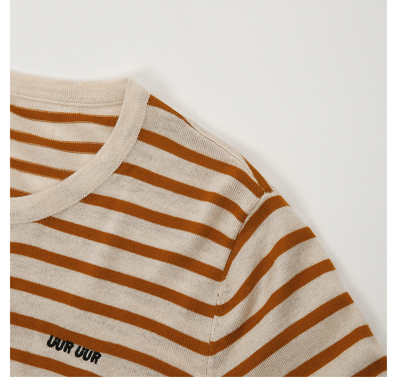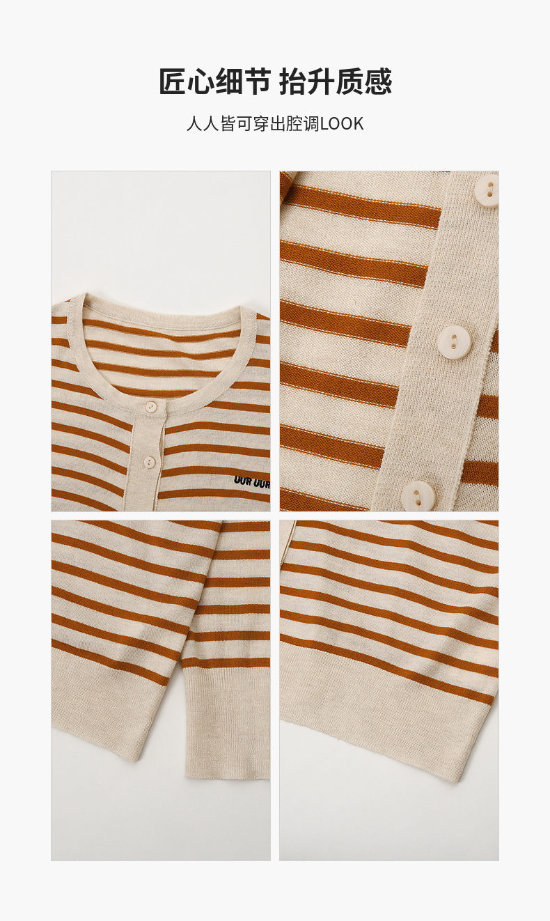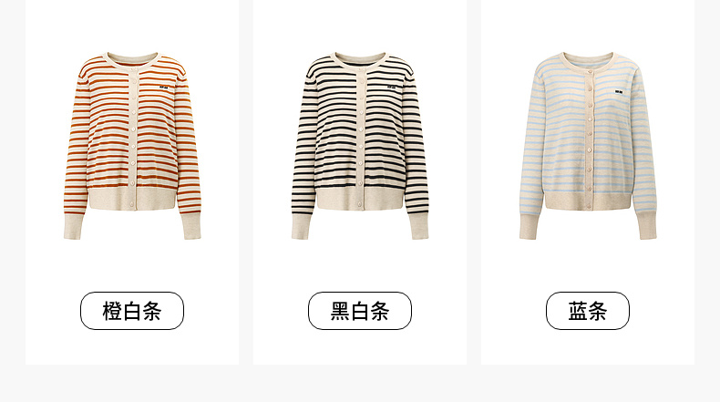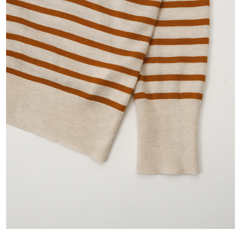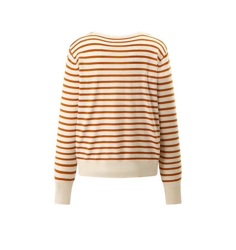 天猫同步【简约不过时】拉夏贝尔/La Chapelle设计感字母刺绣条纹绵羊毛+桑蚕丝针织衫百搭圆领毛衣