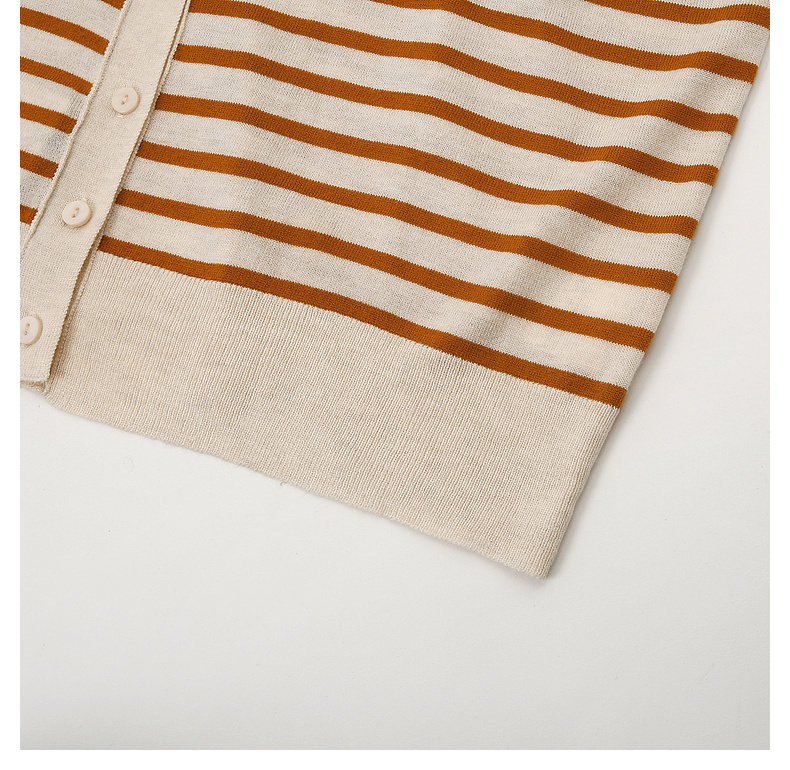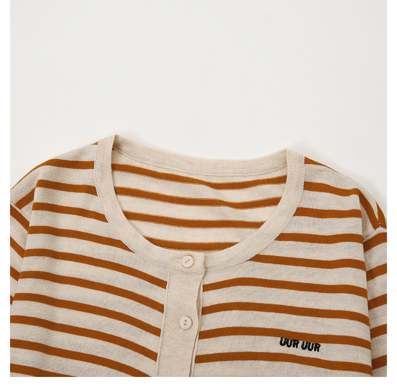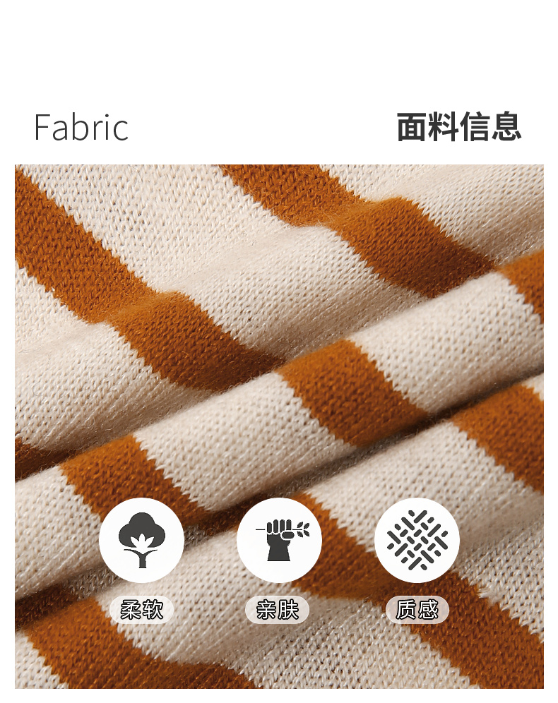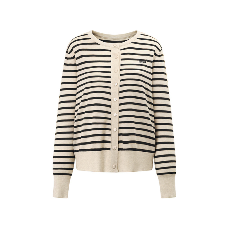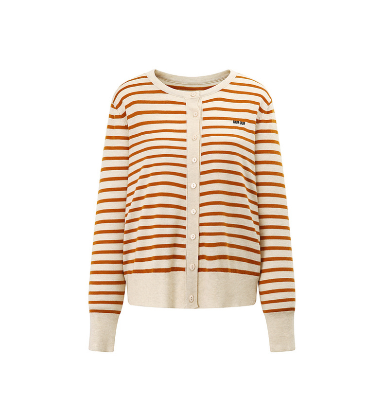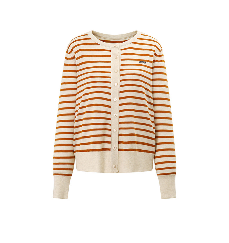 天猫同步【简约不过时】拉夏贝尔/La Chapelle设计感字母刺绣条纹绵羊毛+桑蚕丝针织衫百搭圆领毛衣