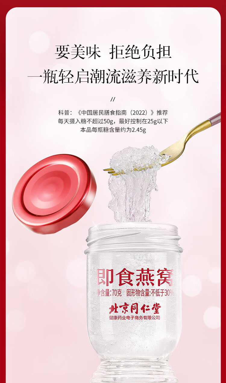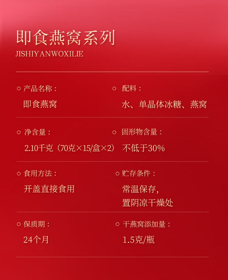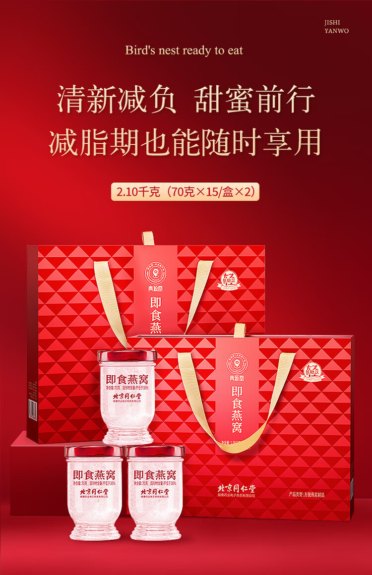 【正宗同仁堂品牌】北京同仁堂 青源堂 即食燕窝2.1kg(70*15瓶/盒*2盒)低糖款 固形物含量≥30%SY