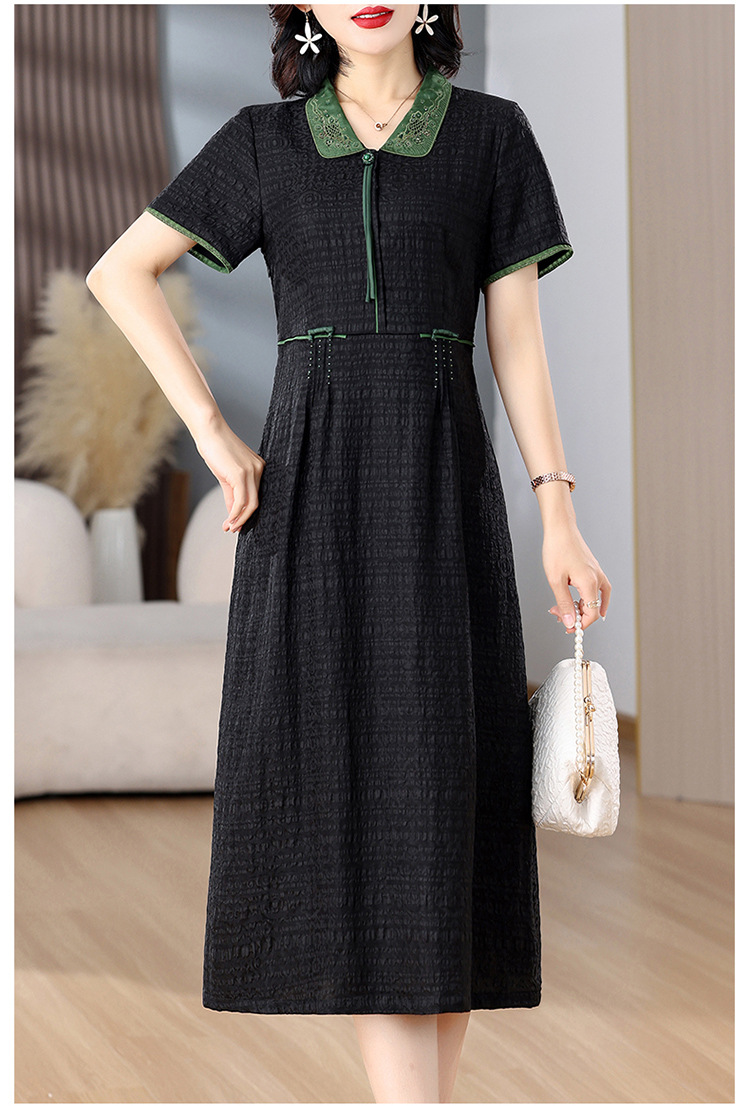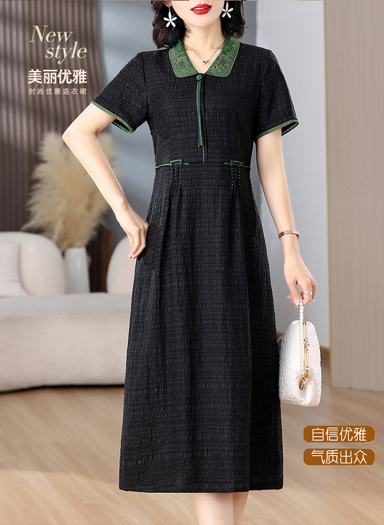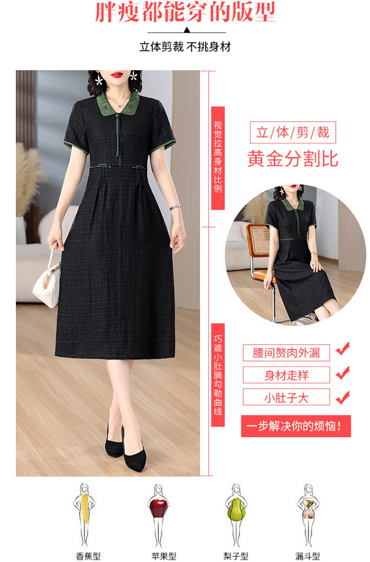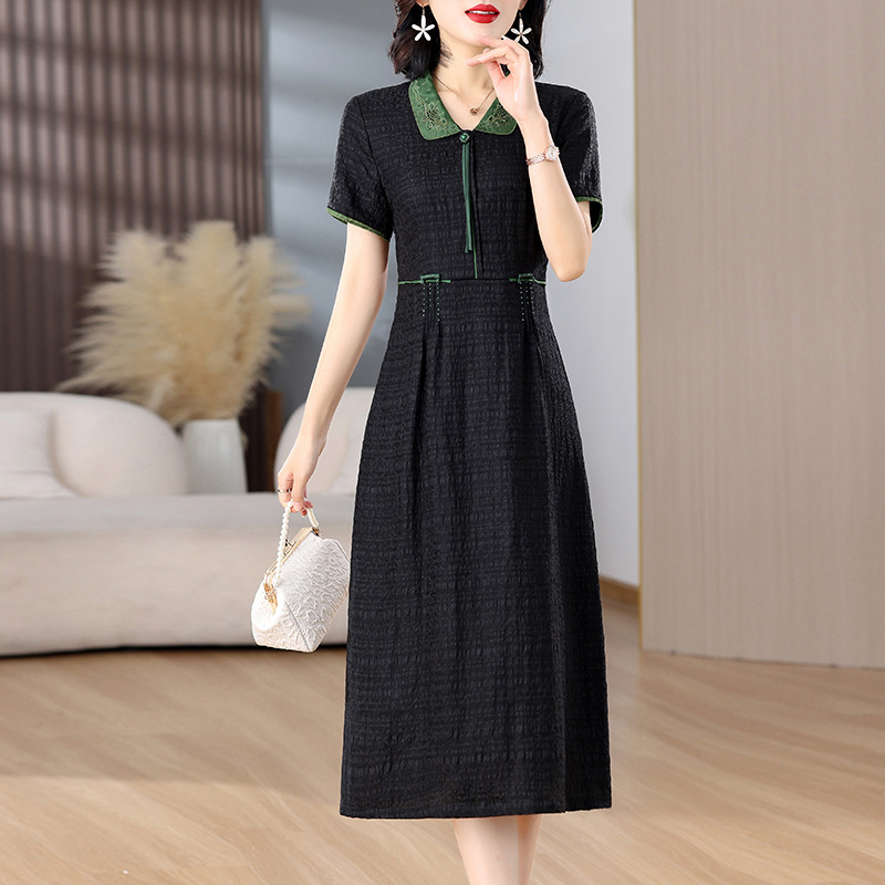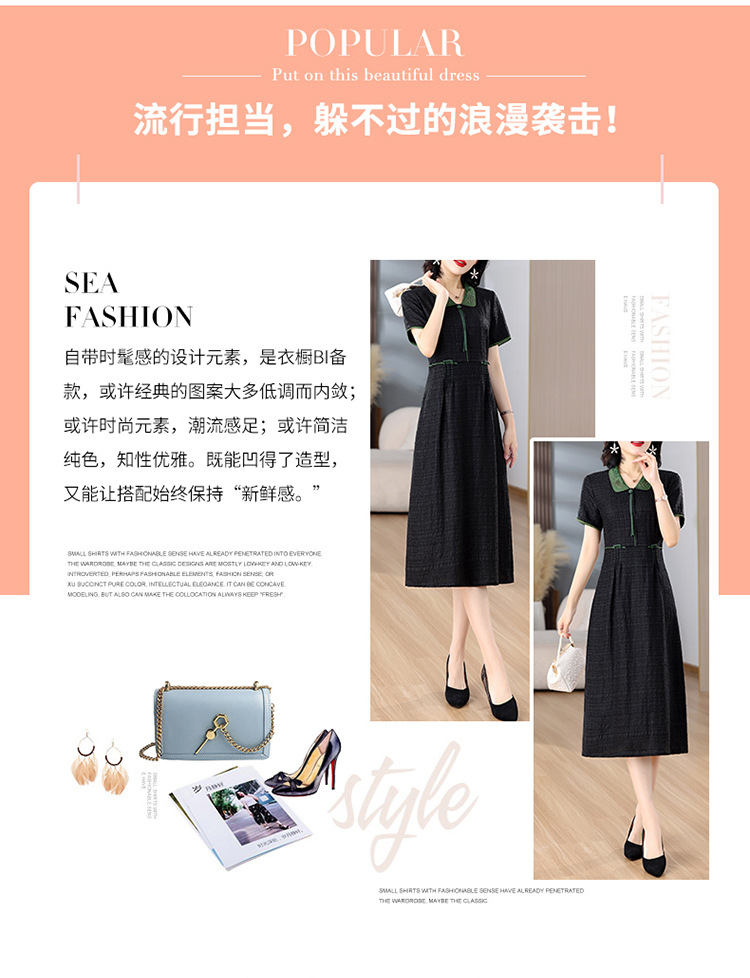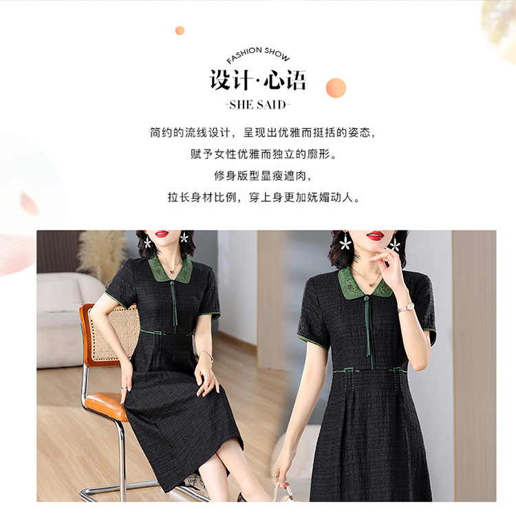 雀说时尚翻领黑色连衣裙新款收腰中长裙AL9143