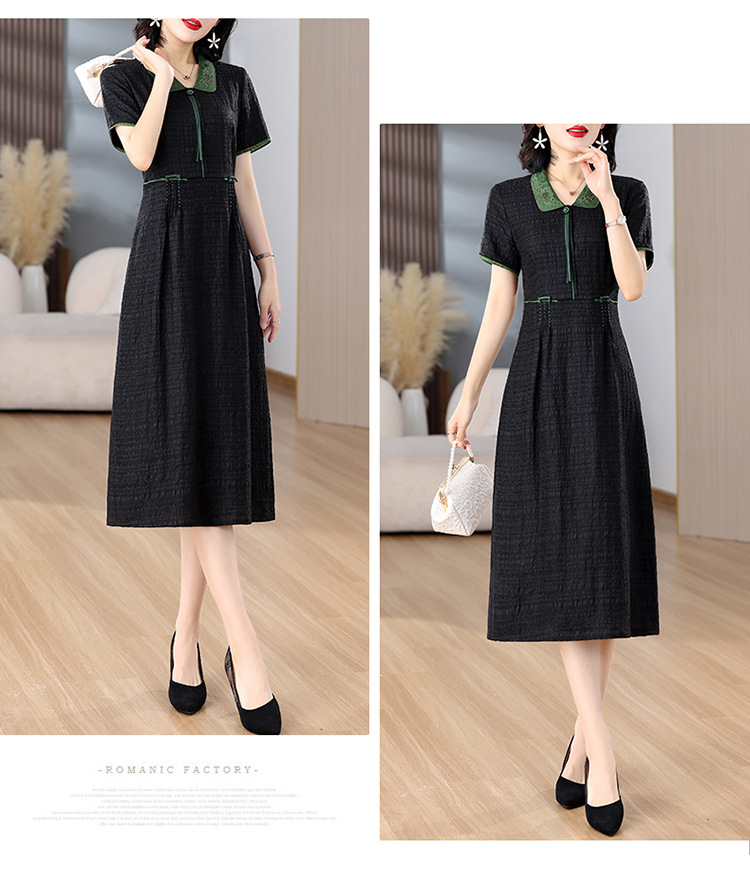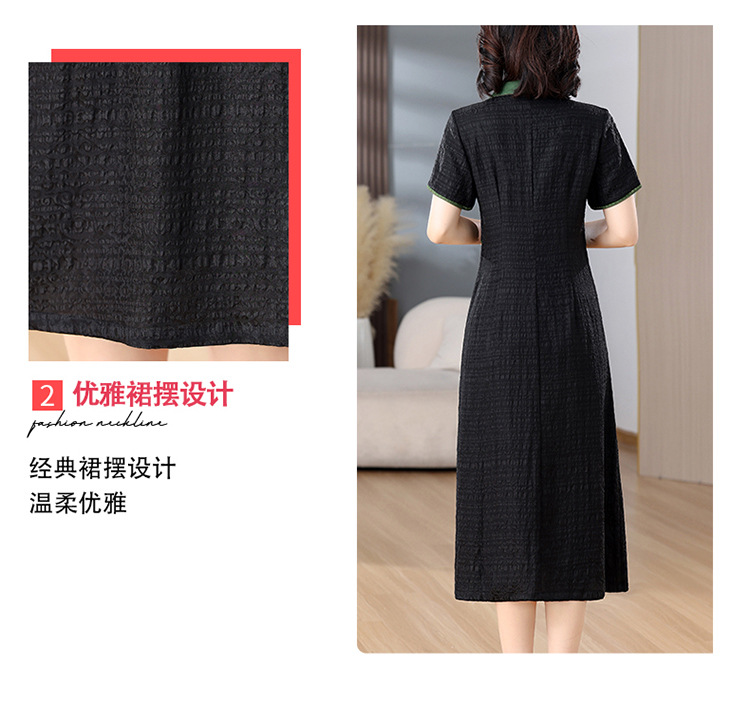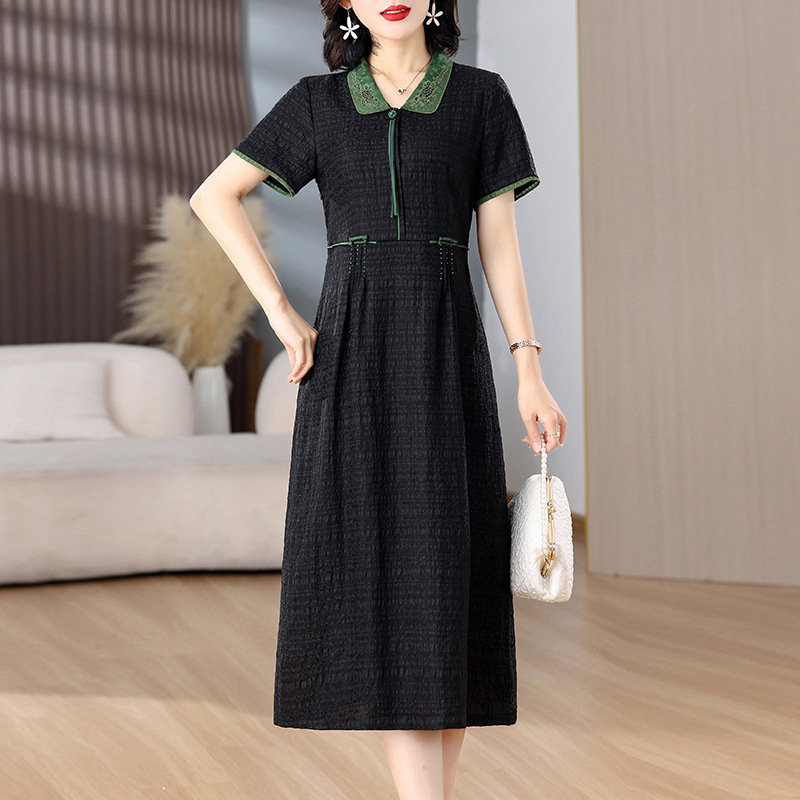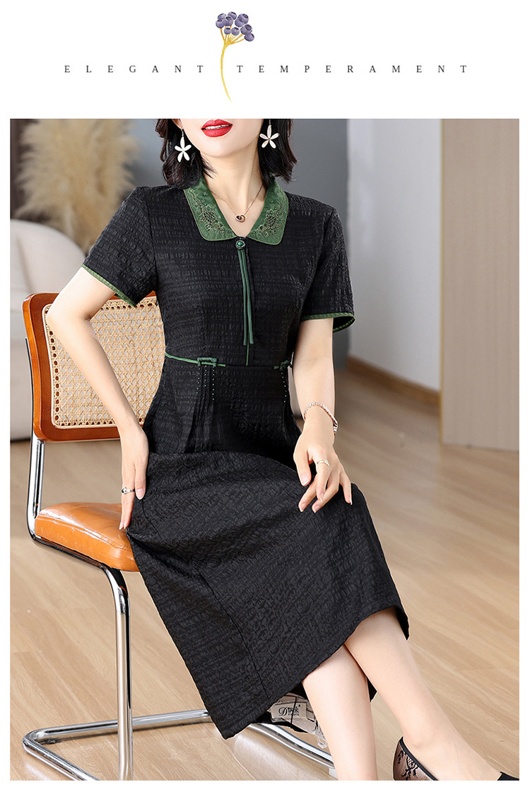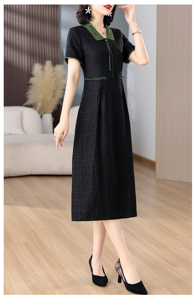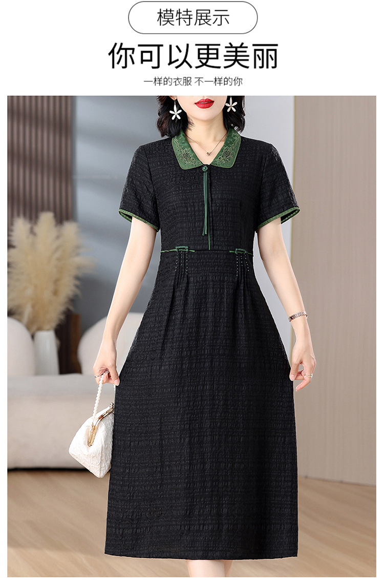 雀说时尚翻领黑色连衣裙新款收腰中长裙AL9143