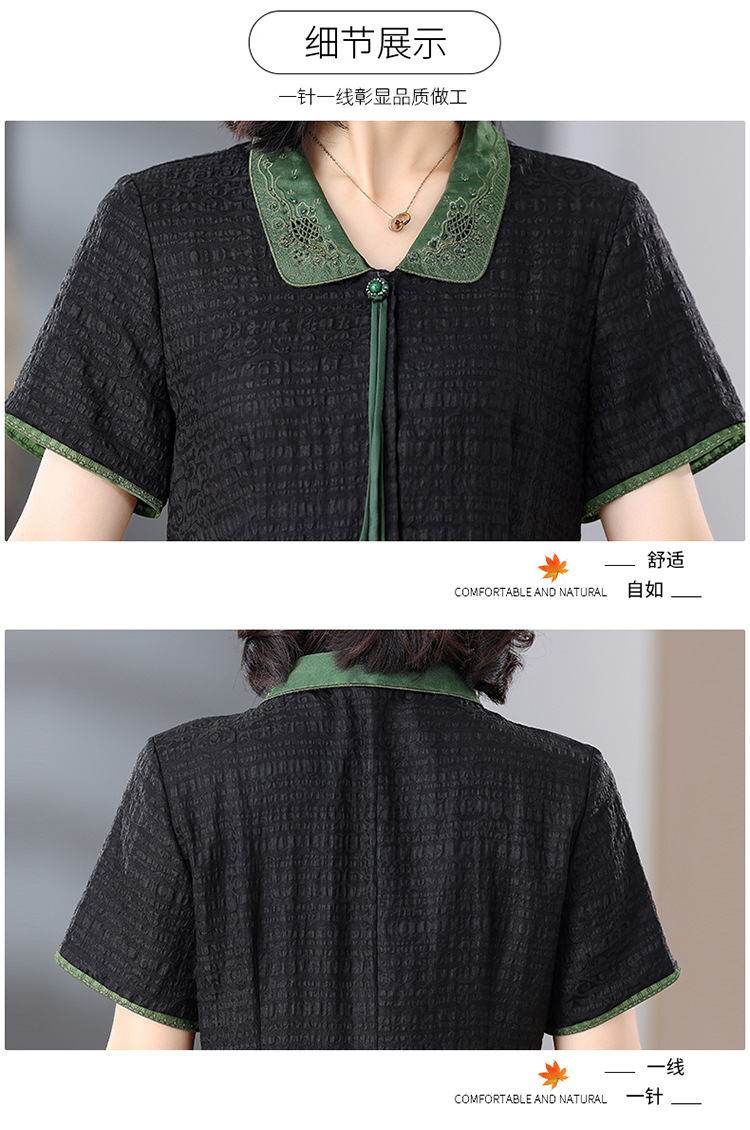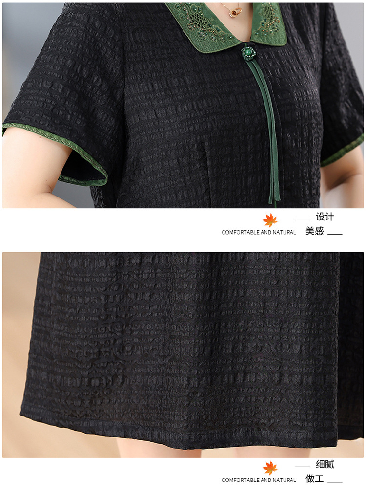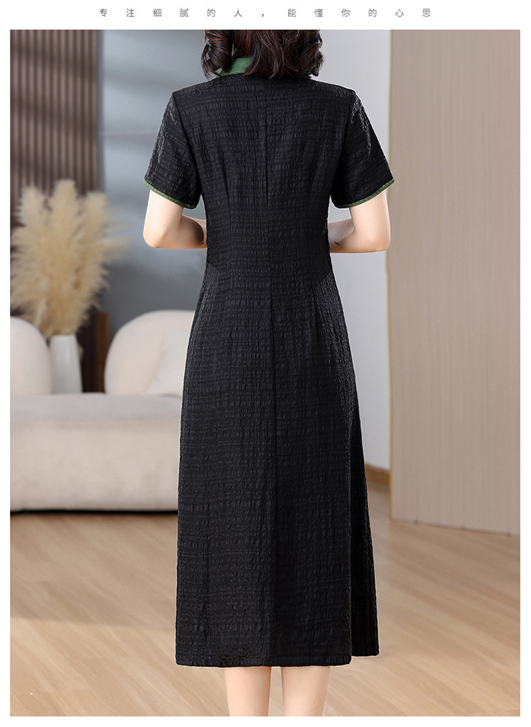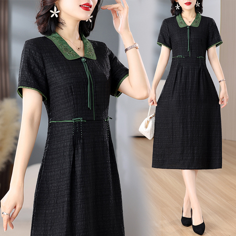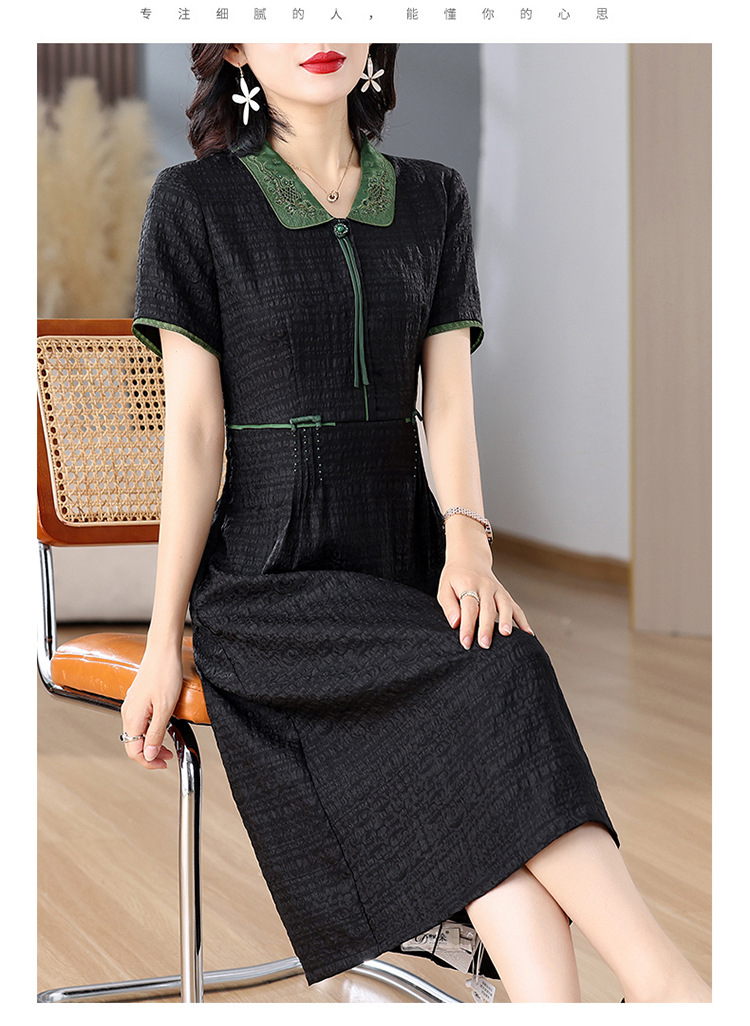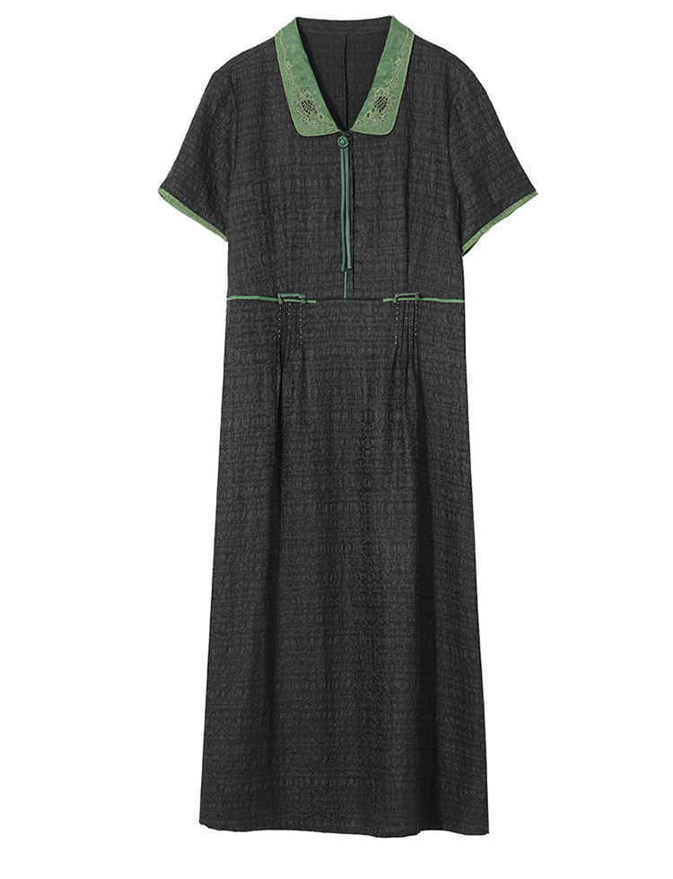 雀说时尚翻领黑色连衣裙新款收腰中长裙AL9143