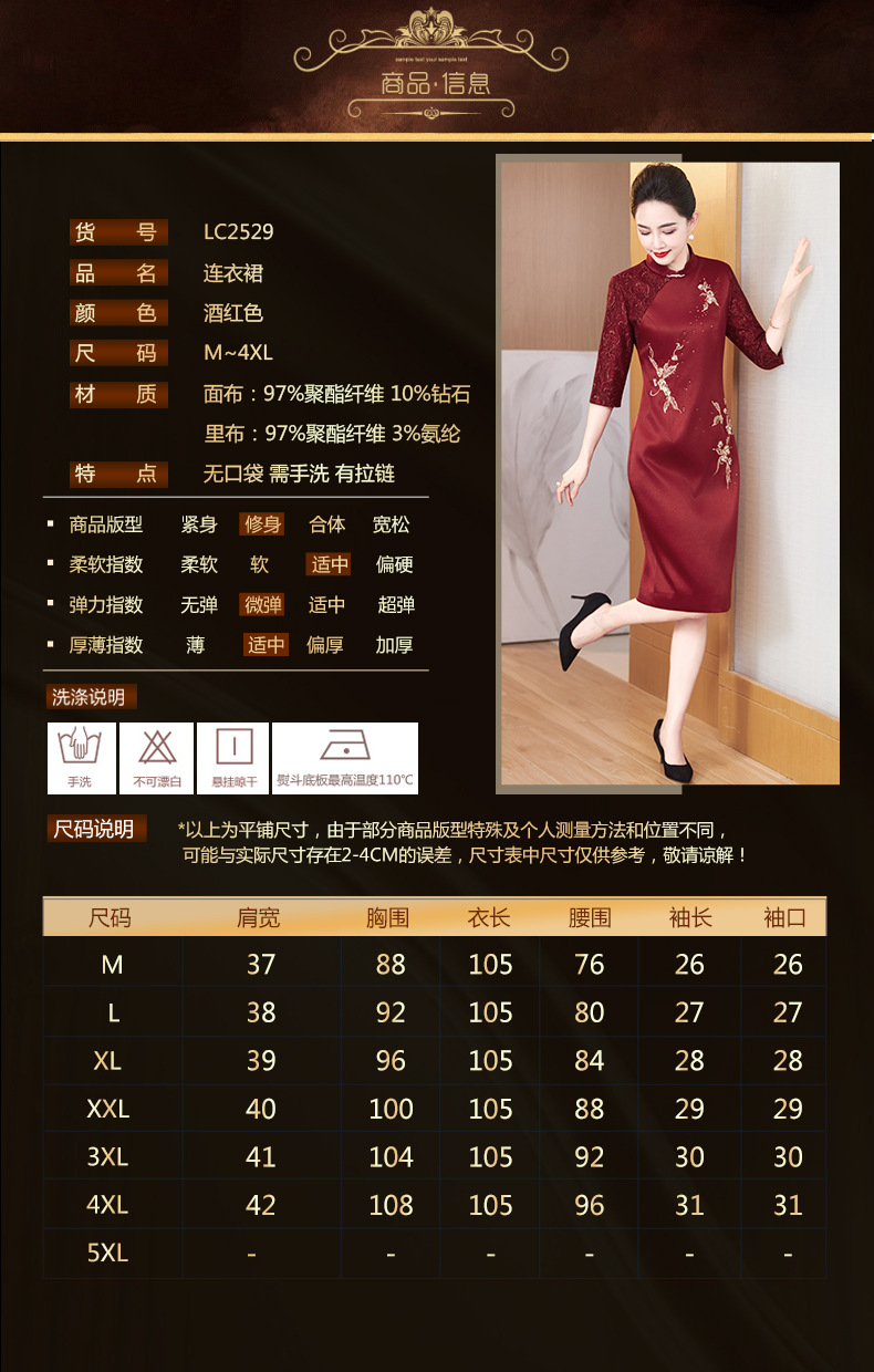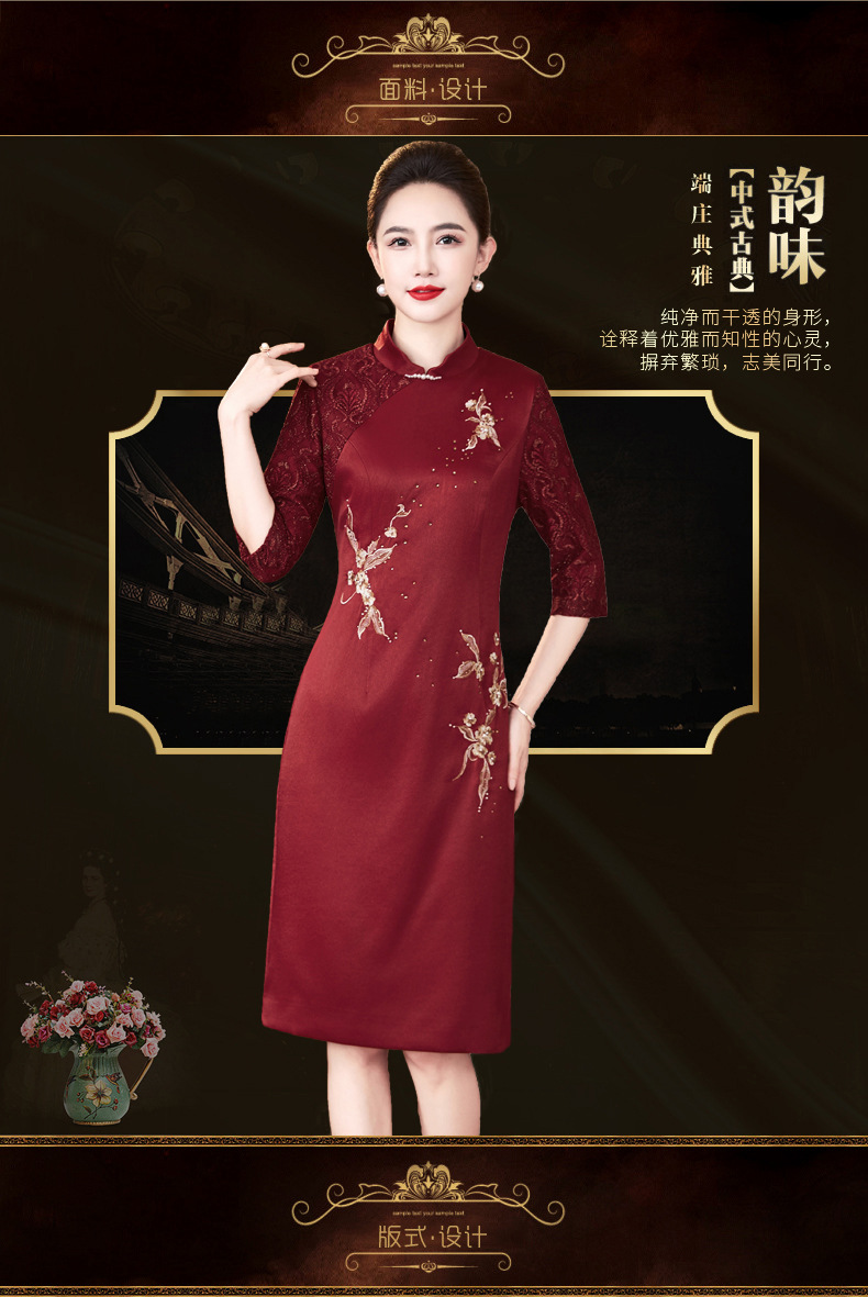 LC 2529旗袍妈妈装婚宴长款复古气质