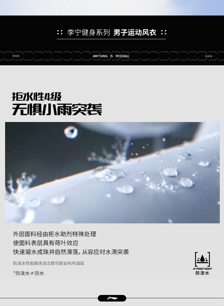 【3XL断码】李宁健身系列男子防泼水宽松运动风衣AFDV067【库存有限,如无货将做退款,介意慎拍!】