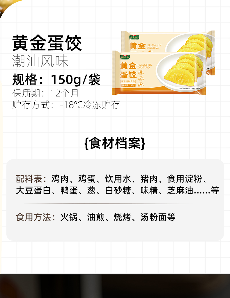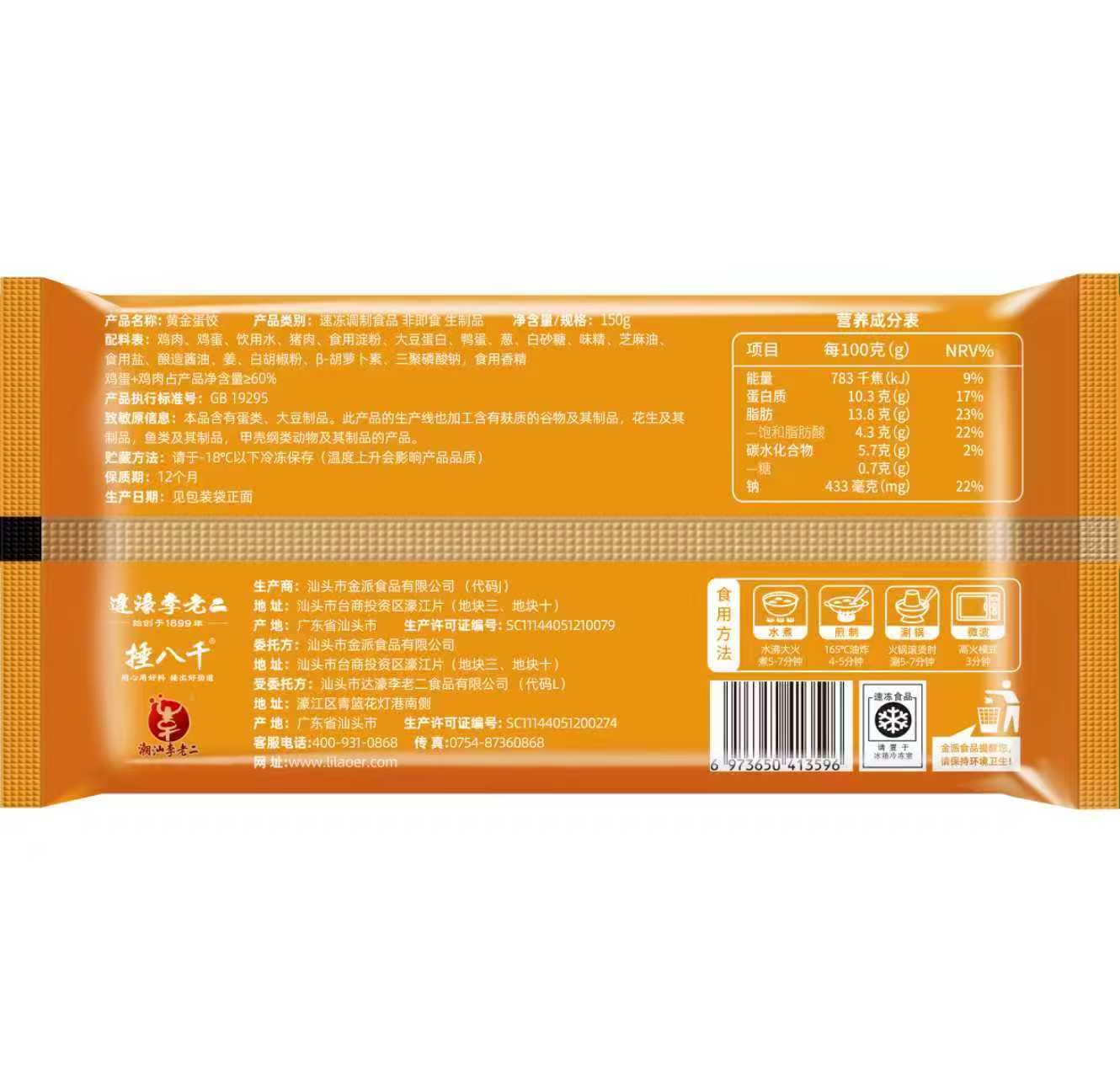 热卖中!!顺丰/京东发货!【百年品牌 CCTV推荐】潮汕达濠李老二黄金蛋饺 150g/袋