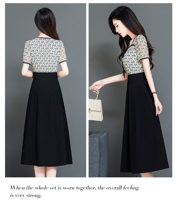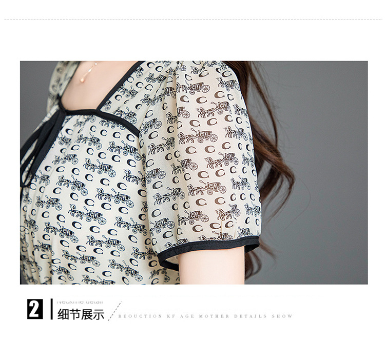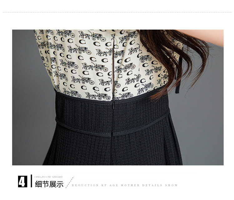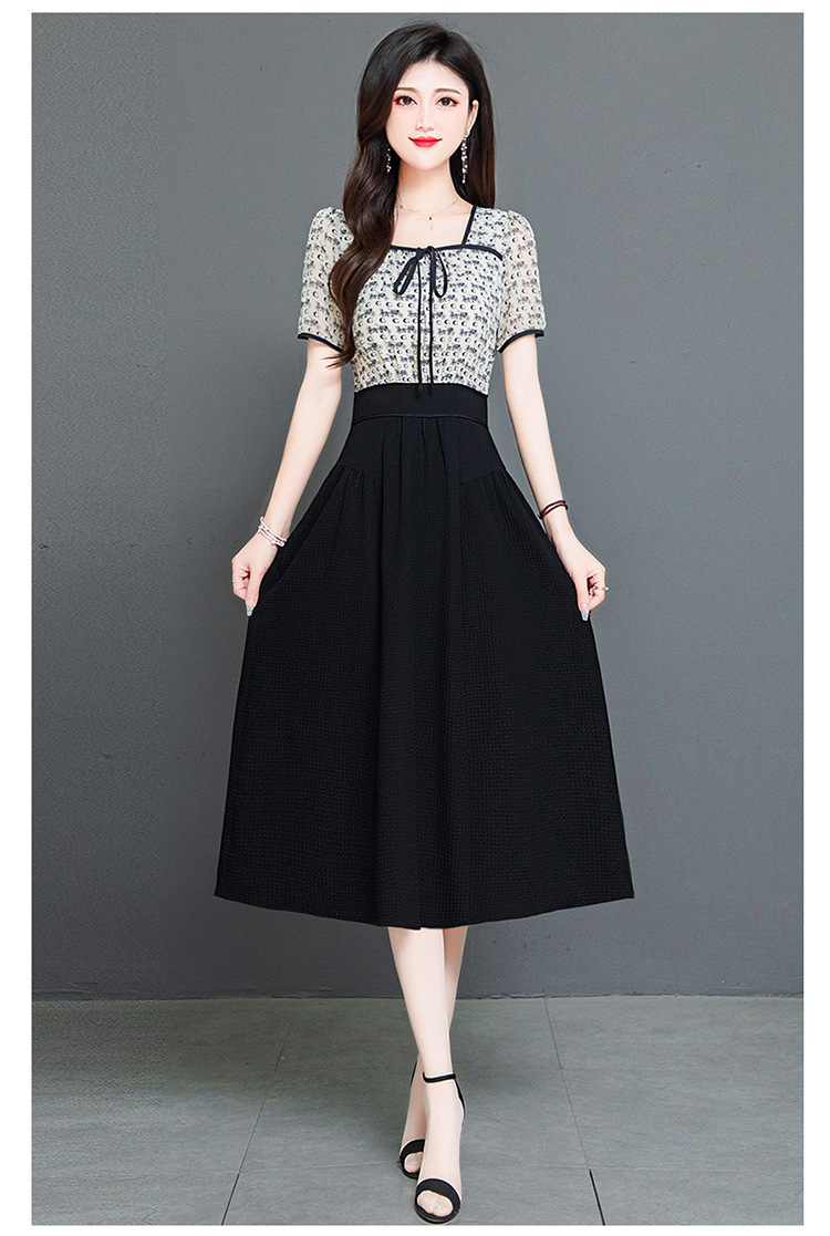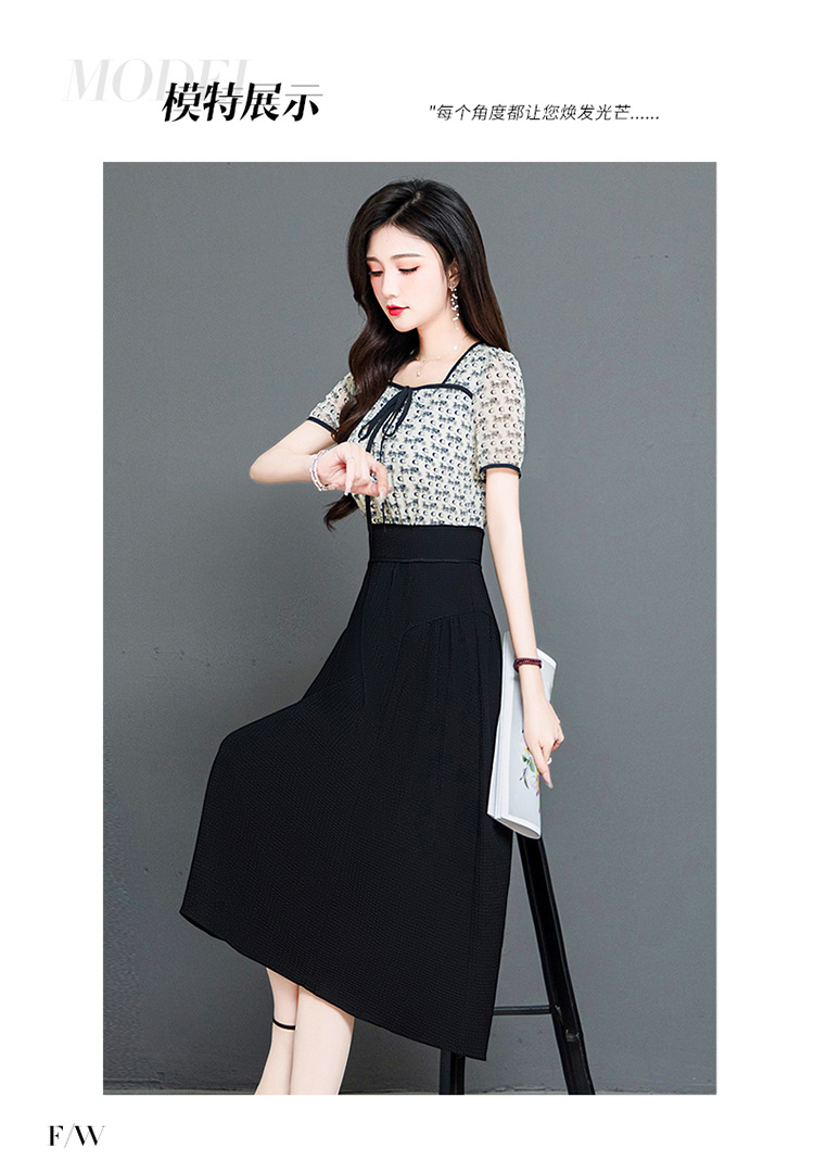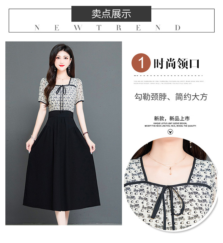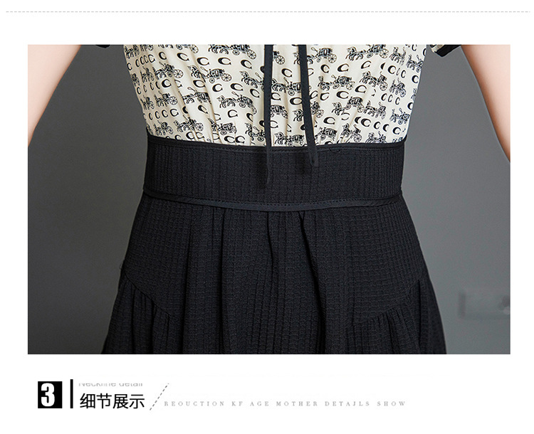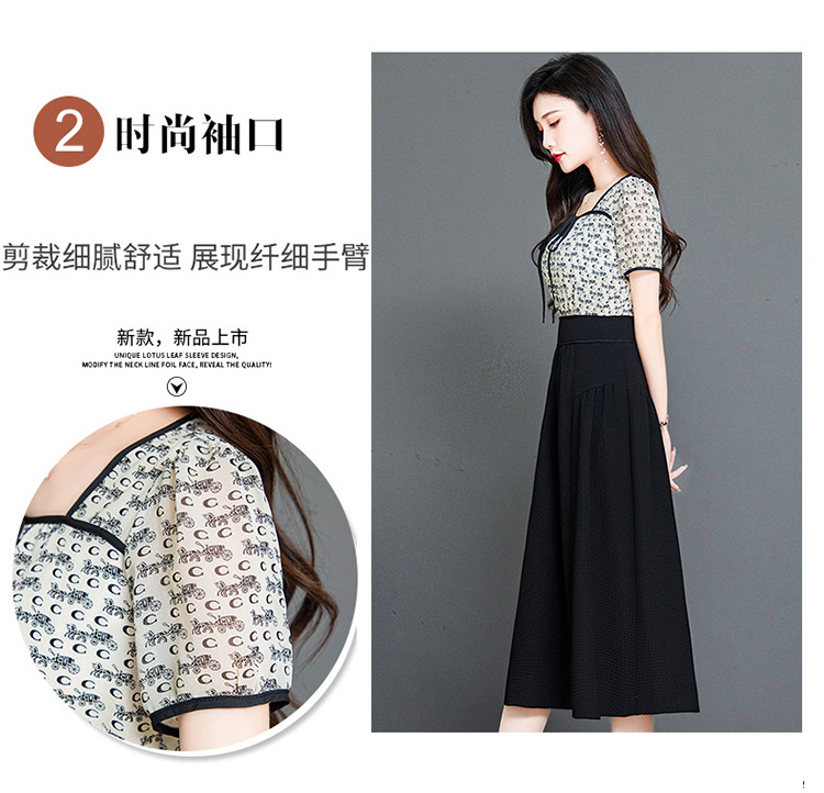 QYMTYP-LX71-Y,印花连衣裙夏季新款短袖裙中长款假两件高腰A字裙