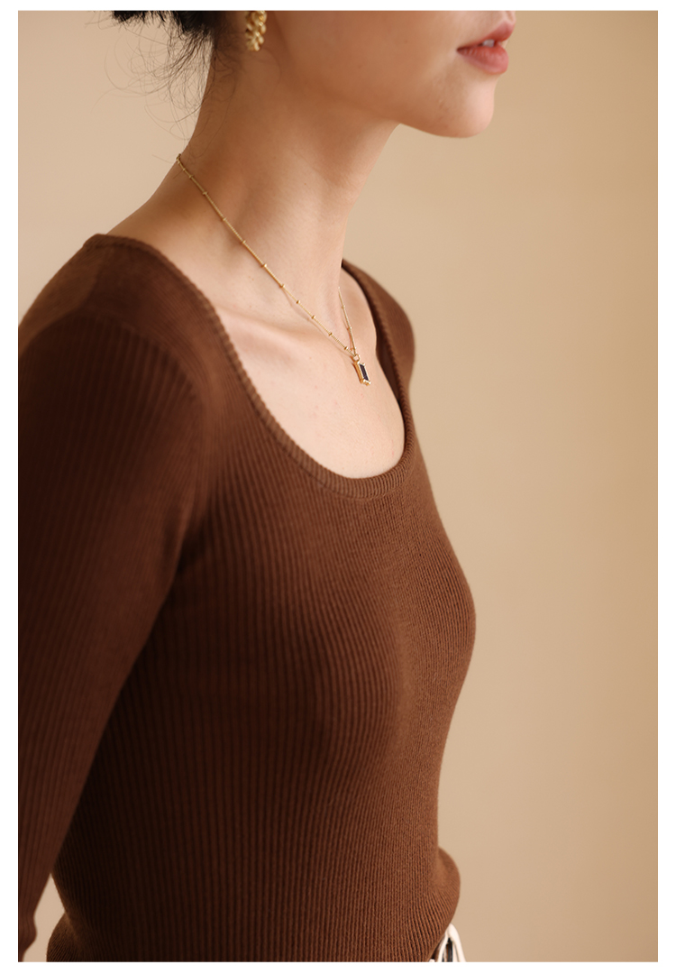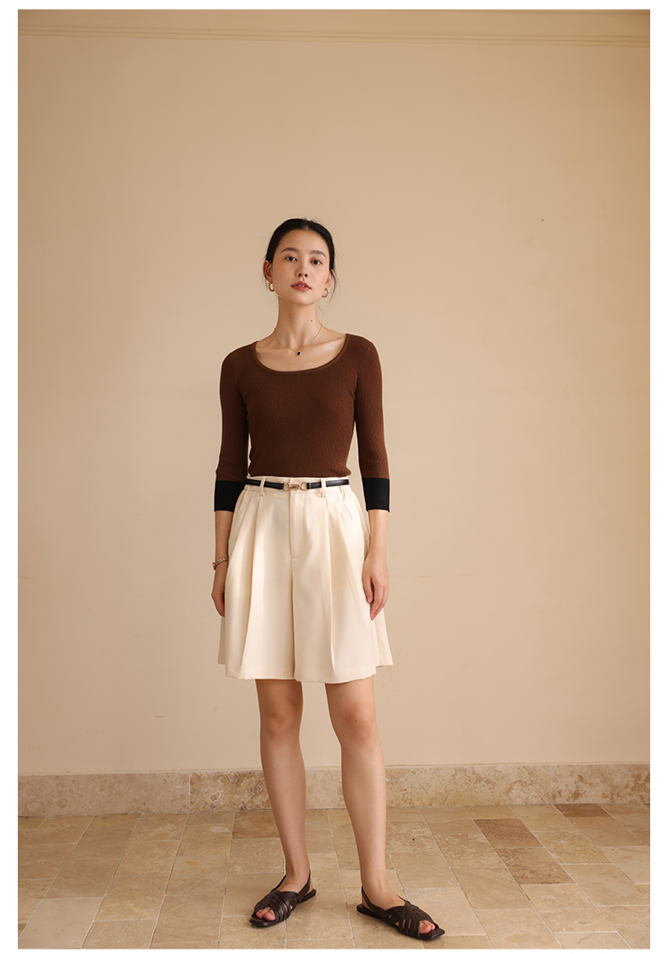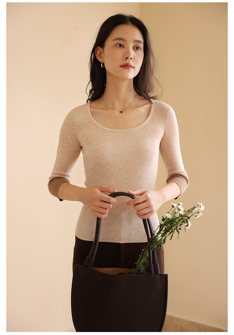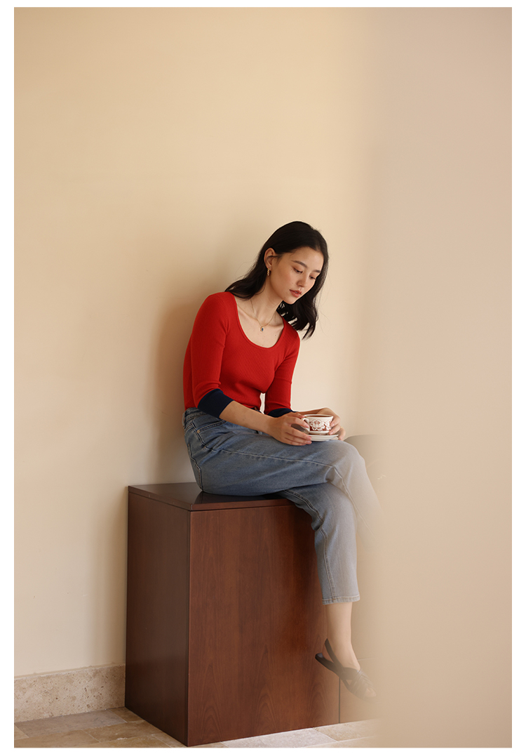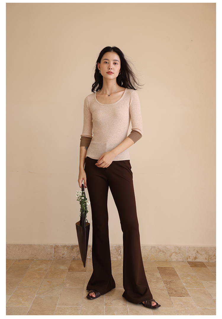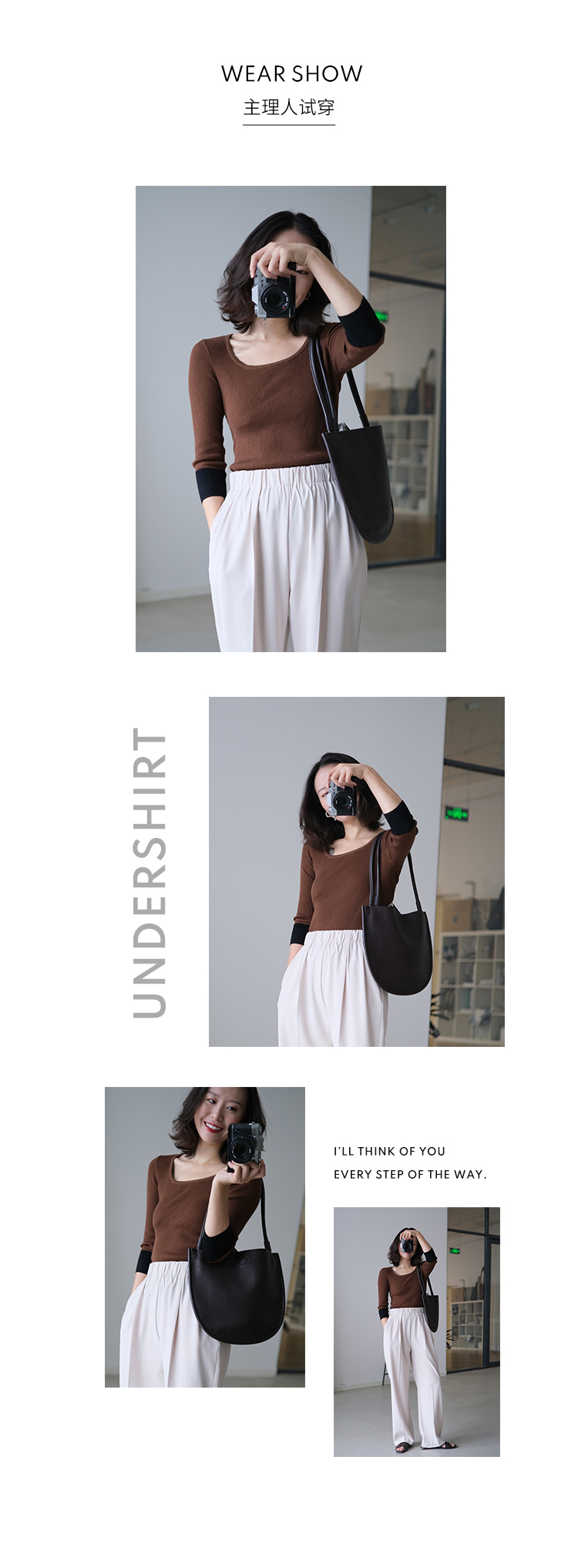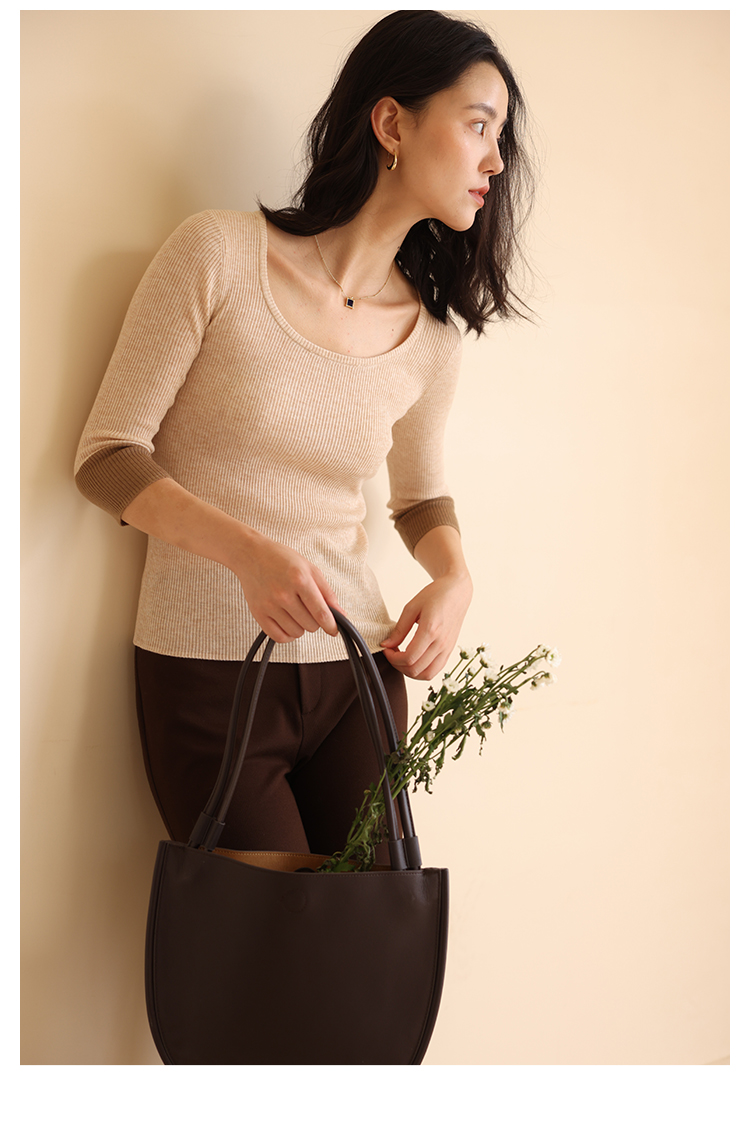 HeyDress法式圆领针织衫女秋季撞色九分袖设计打底衫修身别致上衣