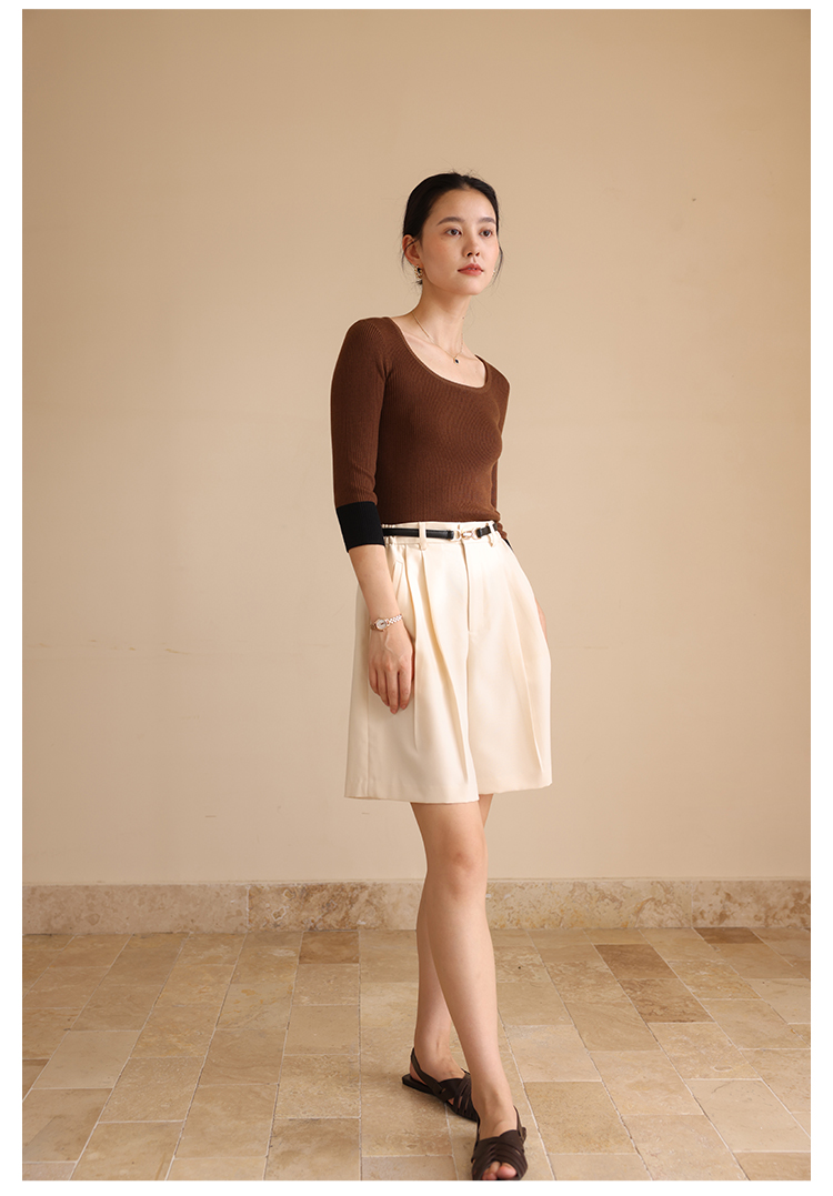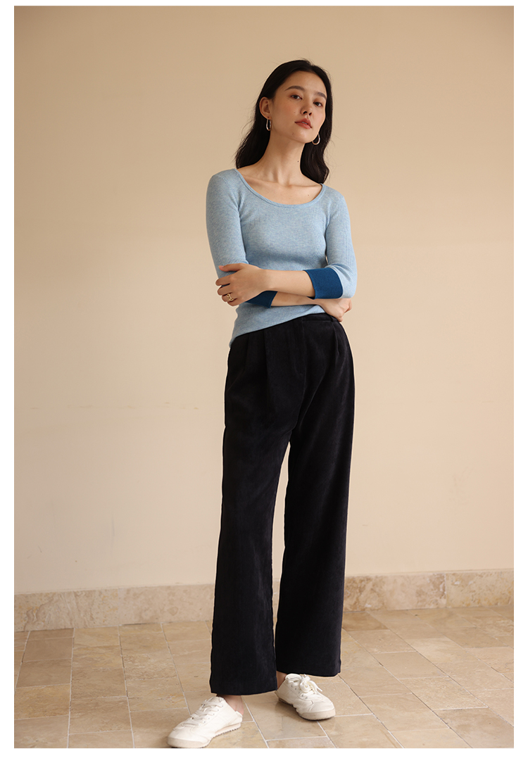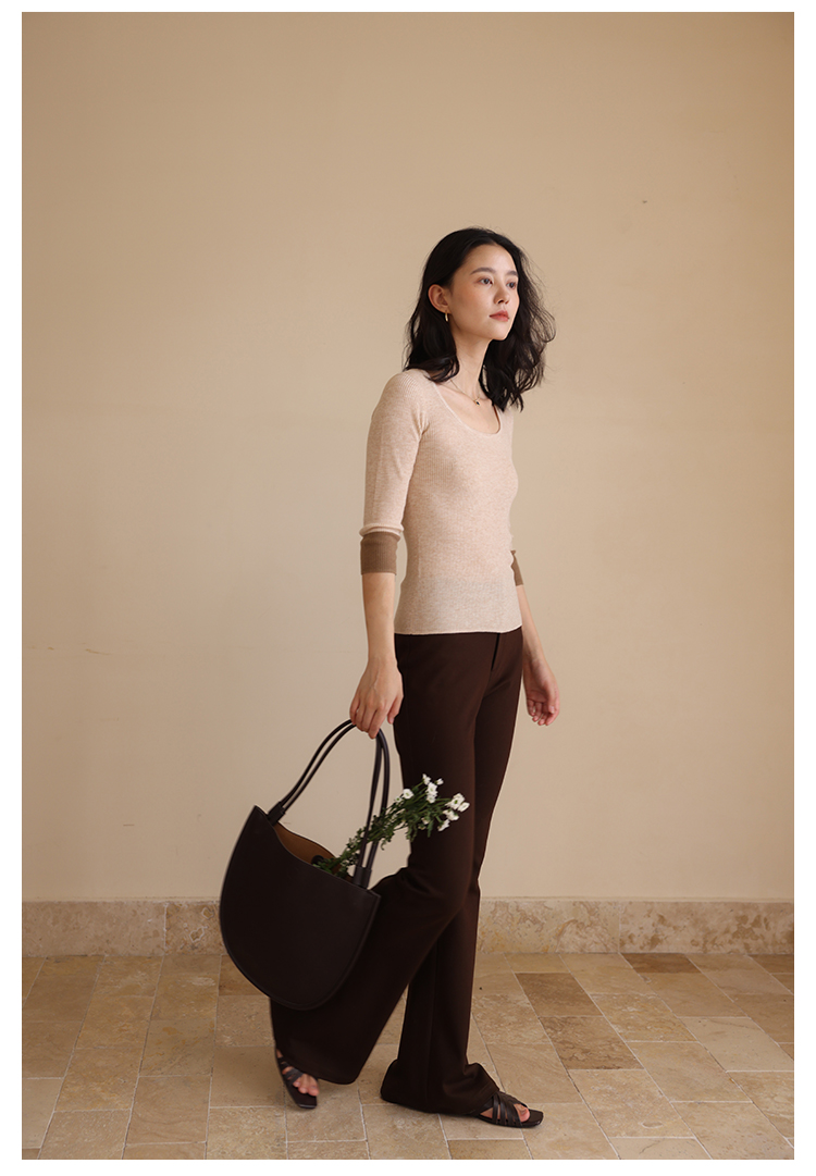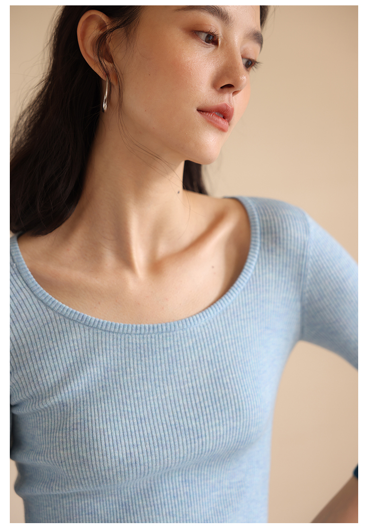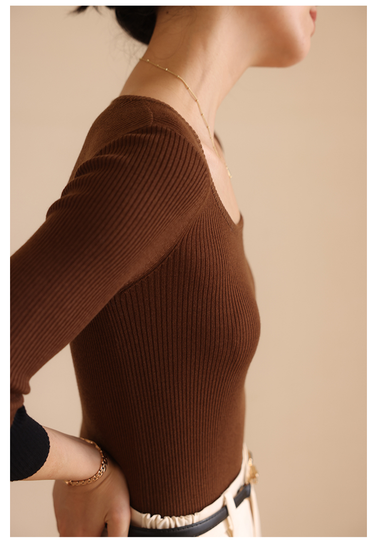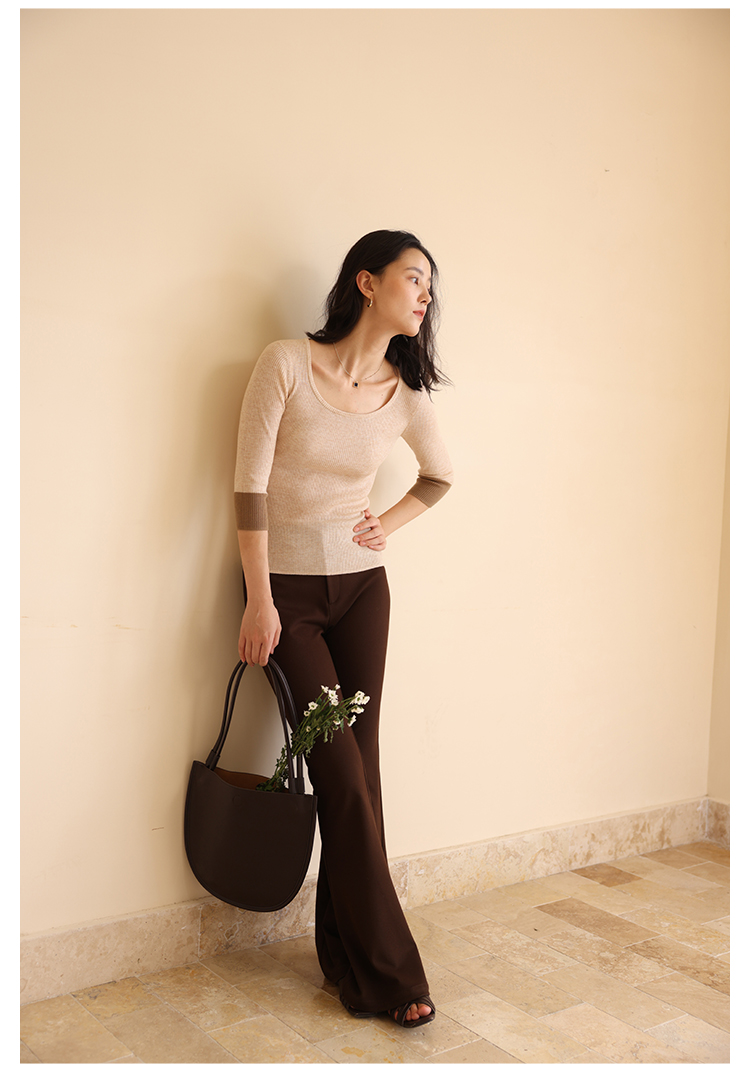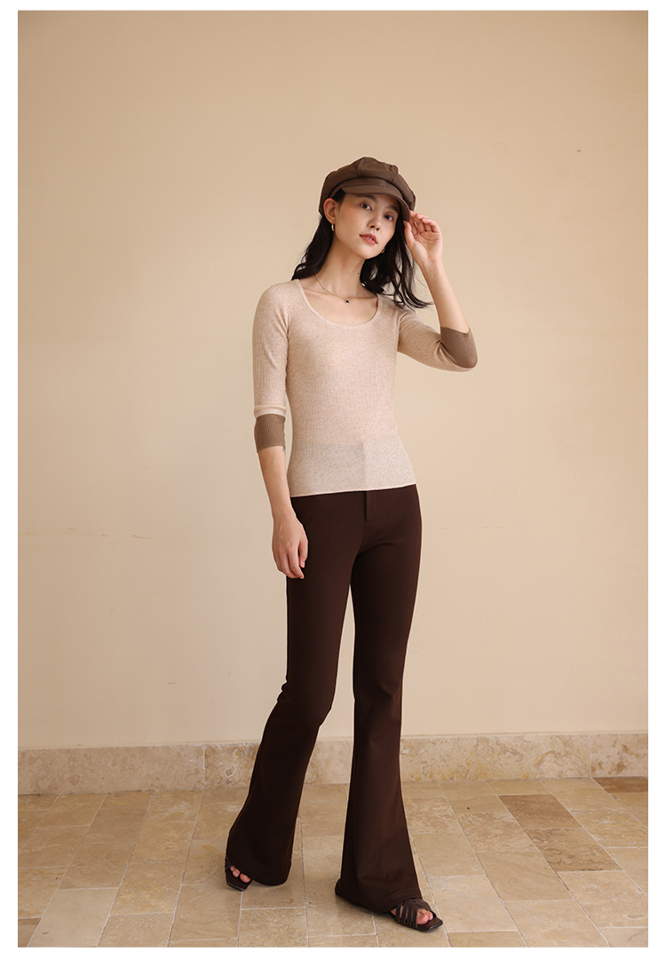 HeyDress法式圆领针织衫女秋季撞色九分袖设计打底衫修身别致上衣