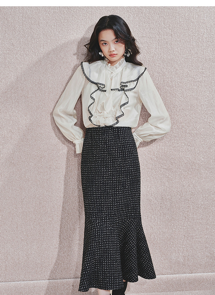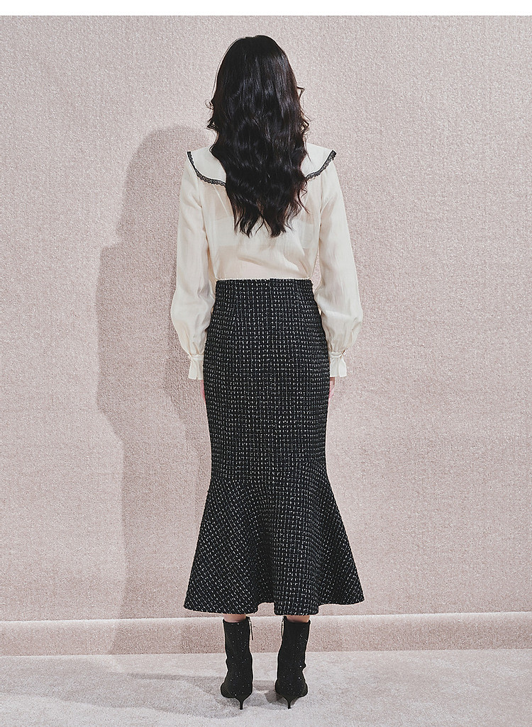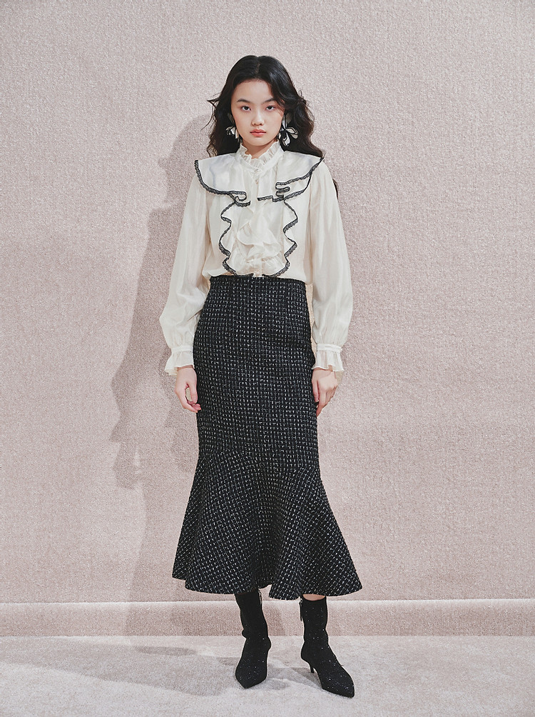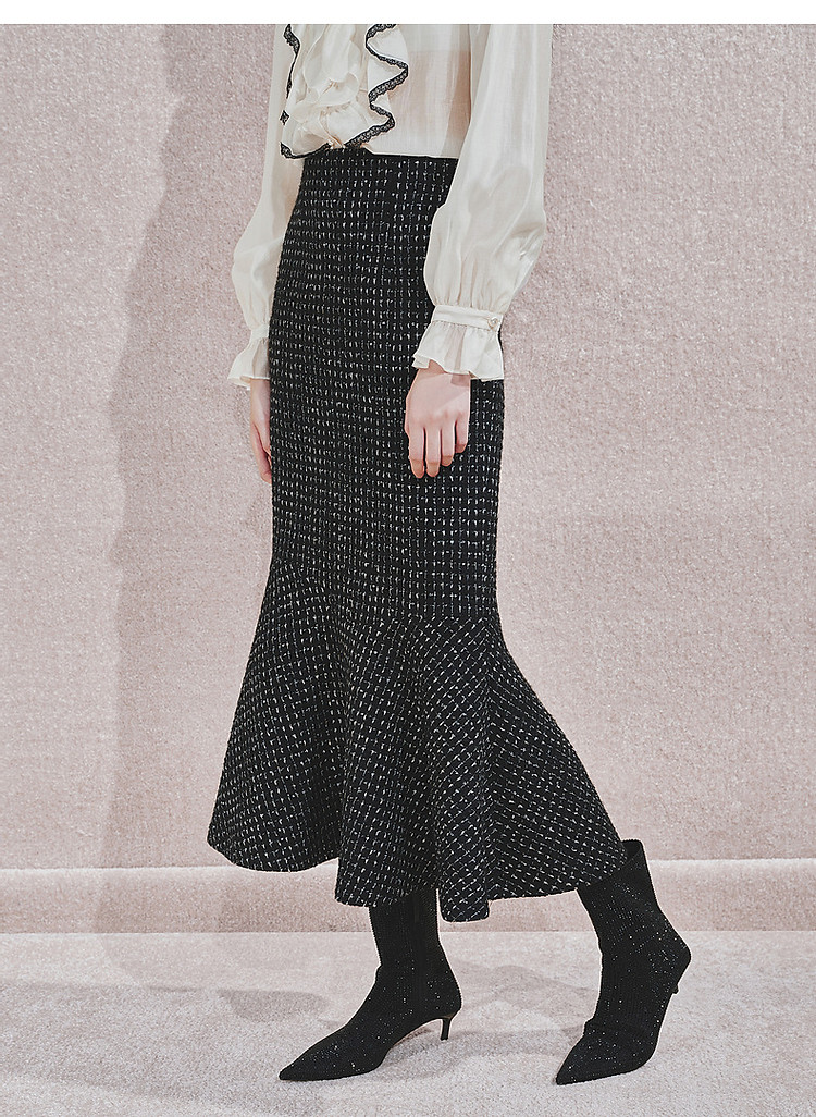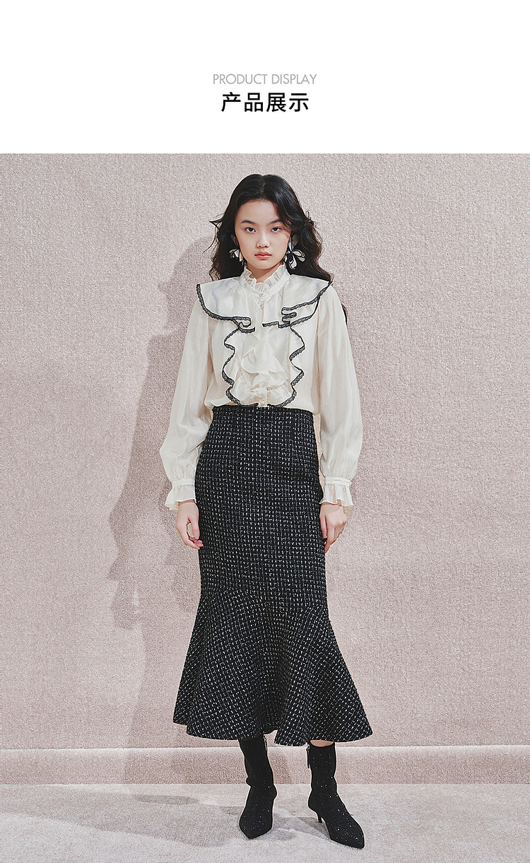 MAXRIENY法式复古感鱼尾半裙2024秋冬半身裙