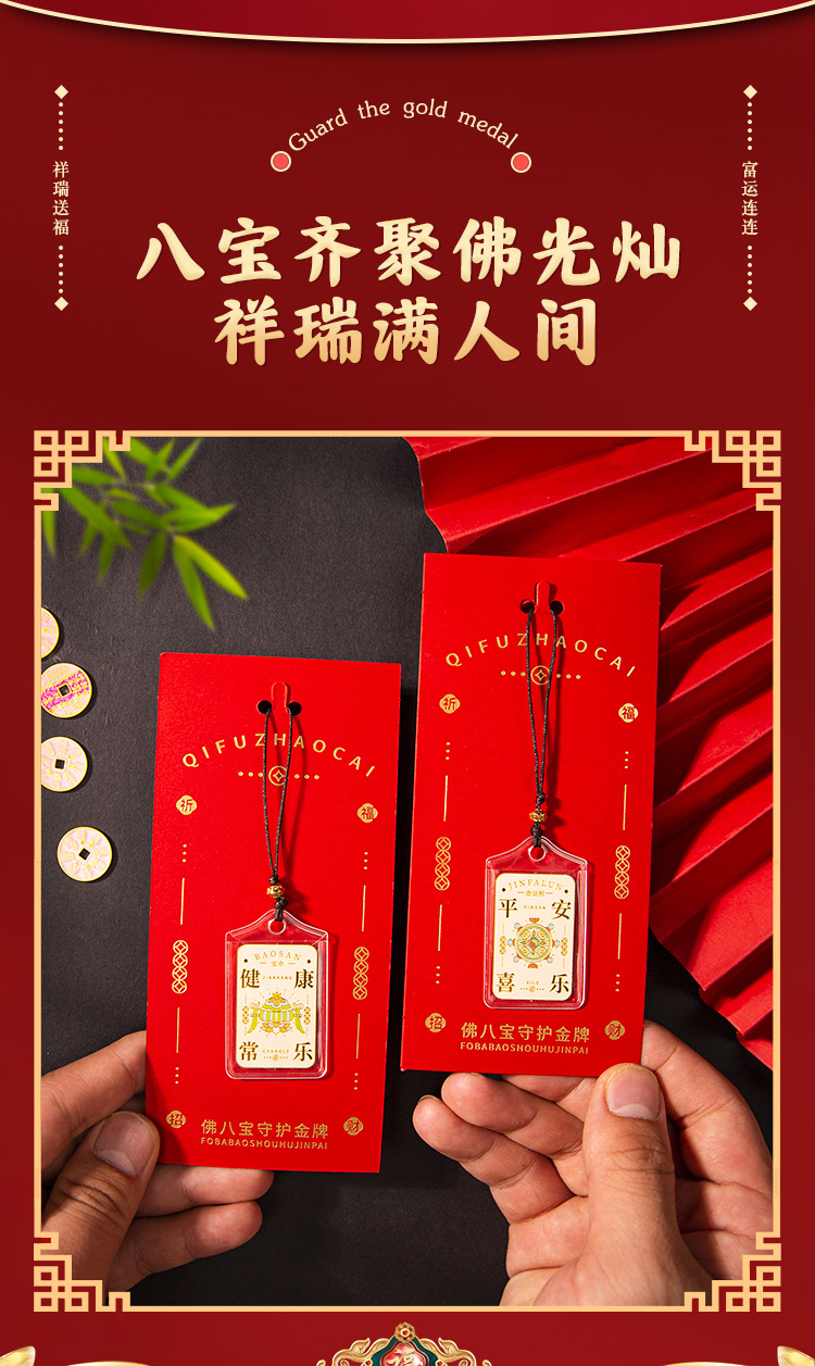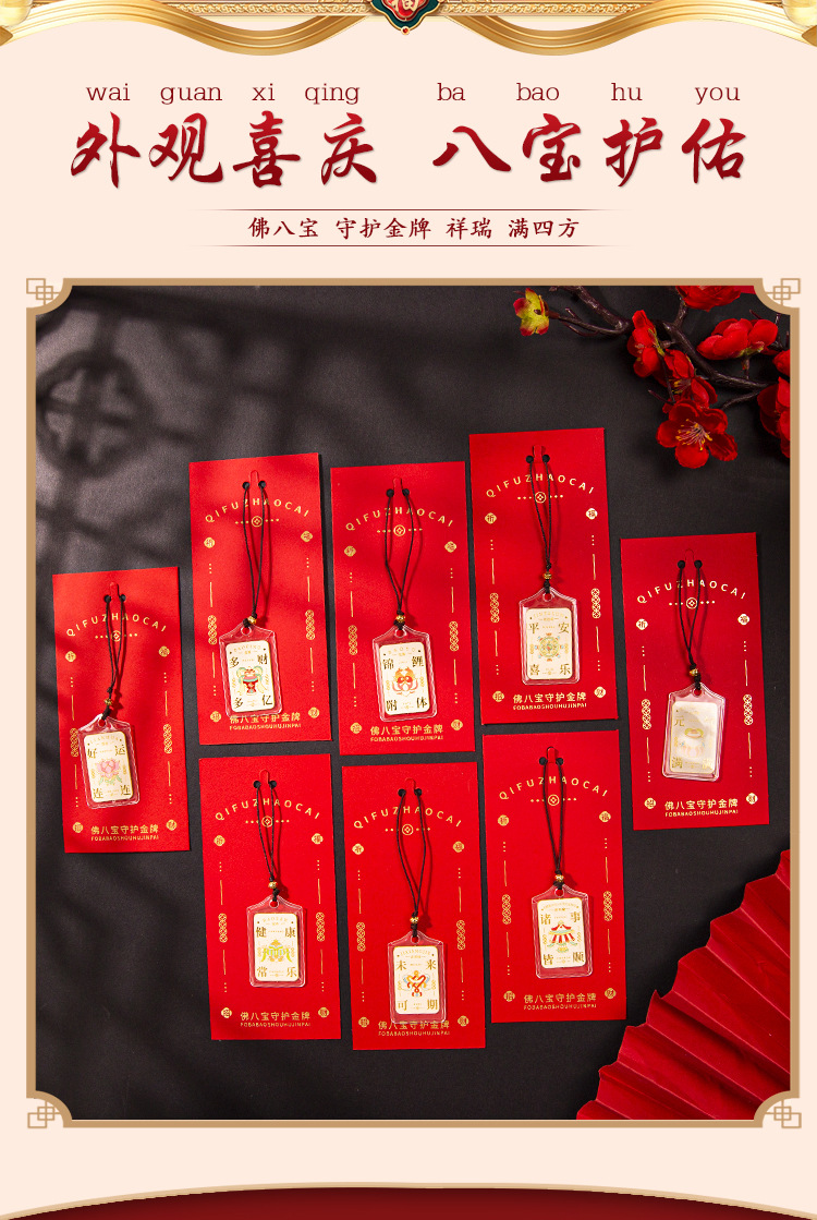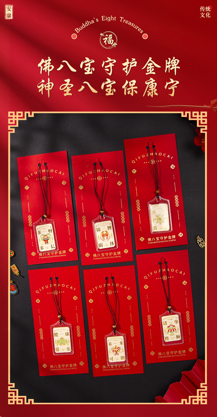 国潮祈福挂件佛八宝牌景区祈福文创手机小挂件礼品