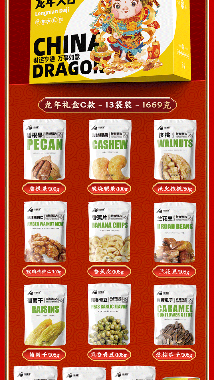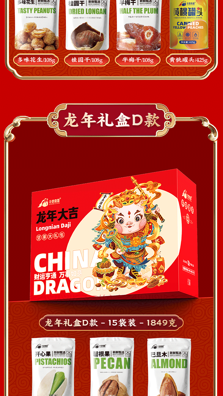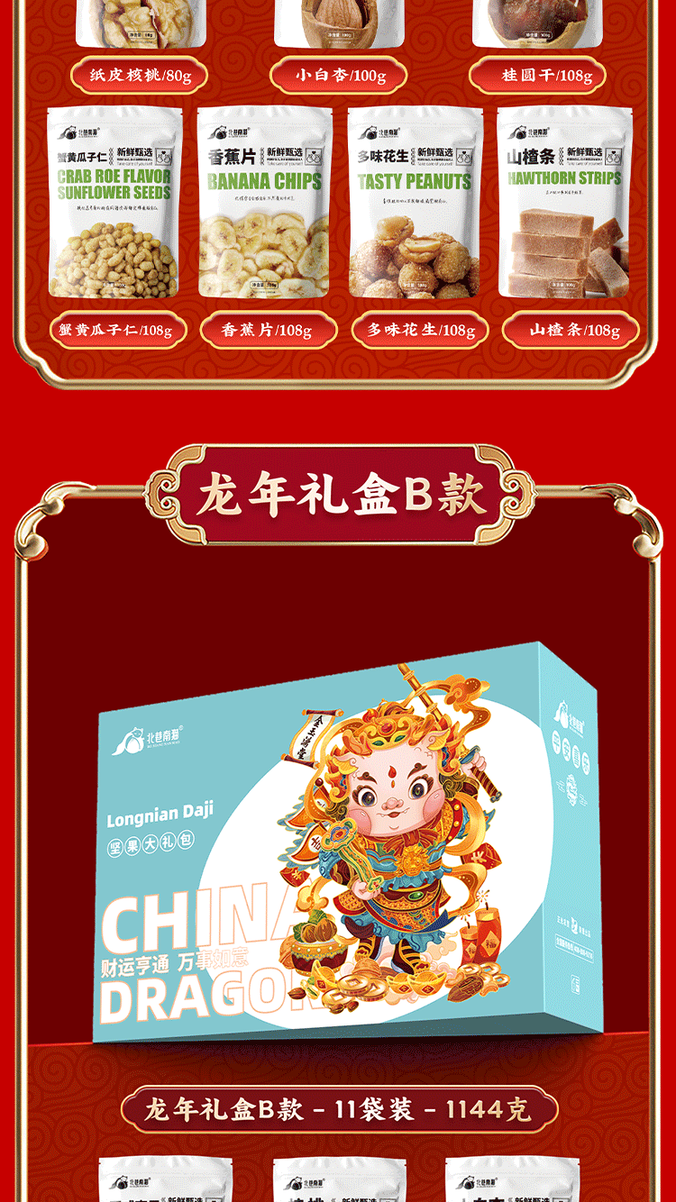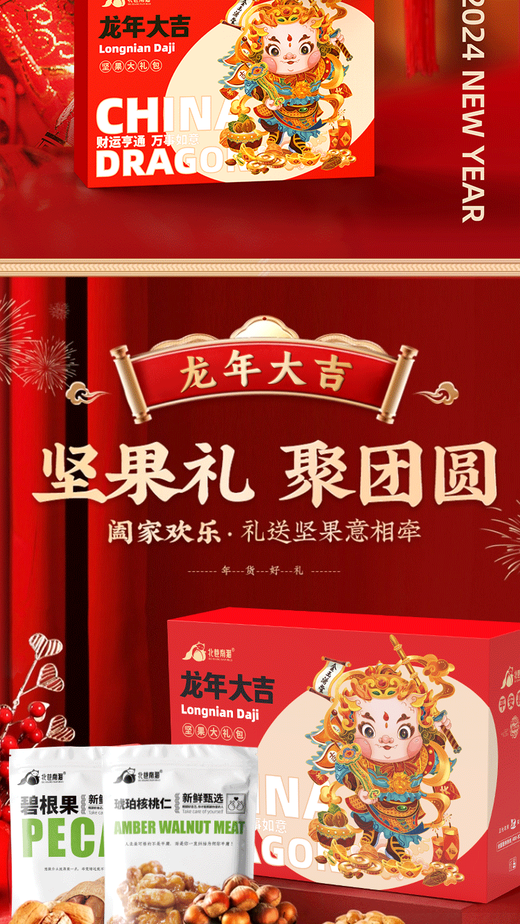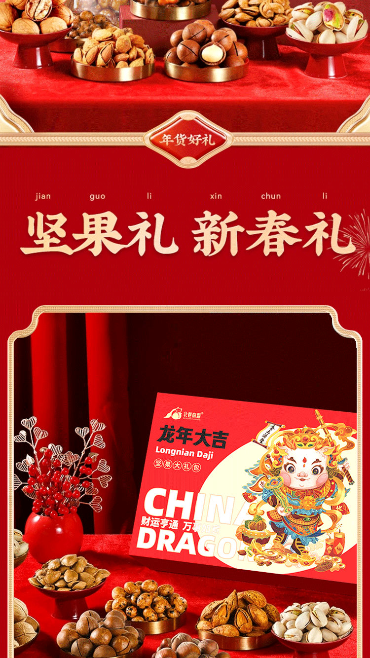 【龙年大吉!坚果好礼】2024龙年新款 坚果礼盒 零食大礼包零食 坚果炒货干果开心果,多种组合带来味蕾享受