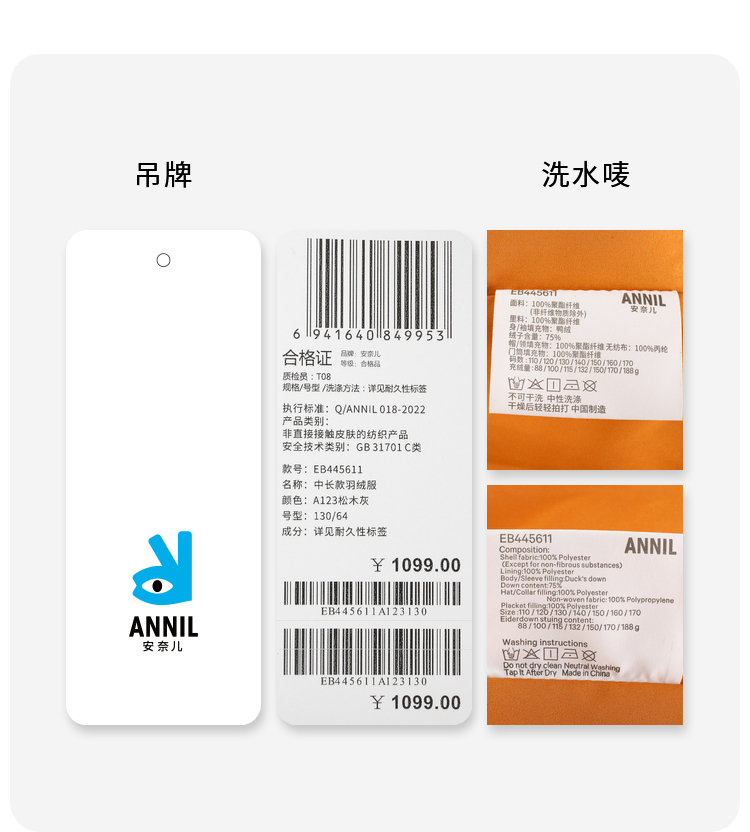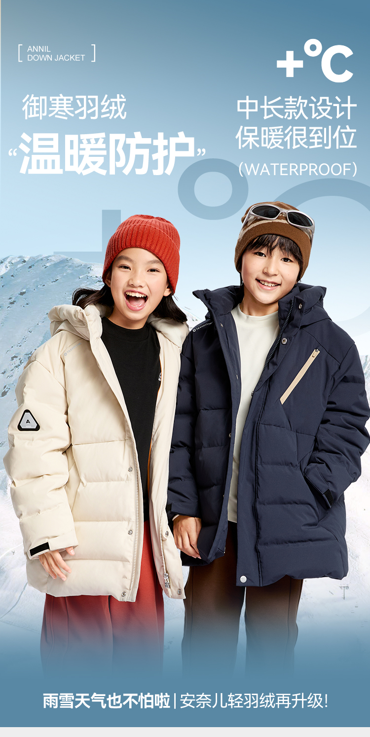【御寒-5~5℃】男童中长款羽绒服外套冬季新款安奈儿童装EB445611