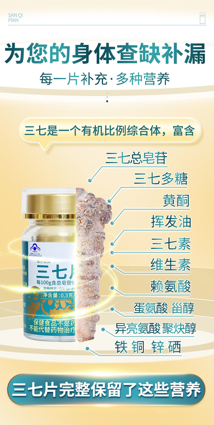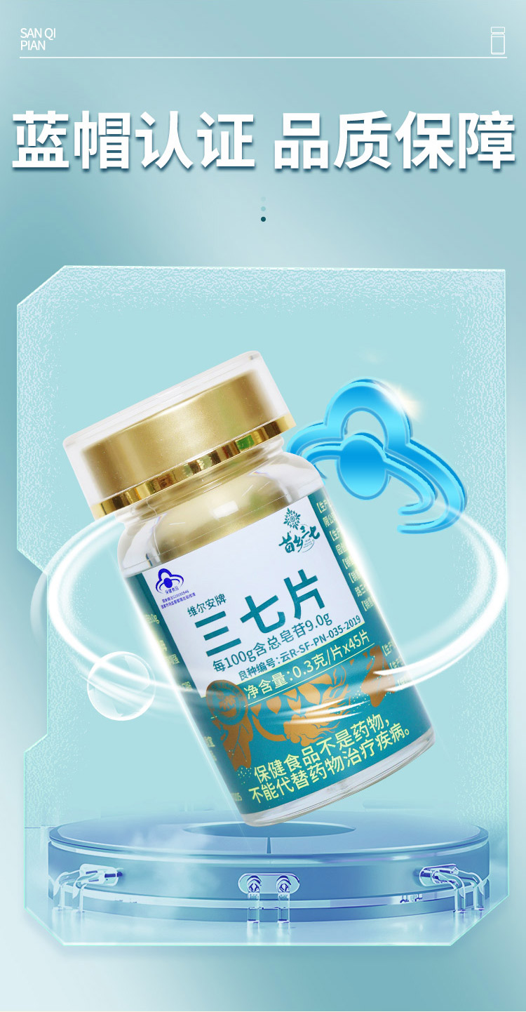 【蓝笑】云南文山有机三七片0.3g*45片/盒 非硫熏、无添加,片形完整,色泽自然,药效更纯正