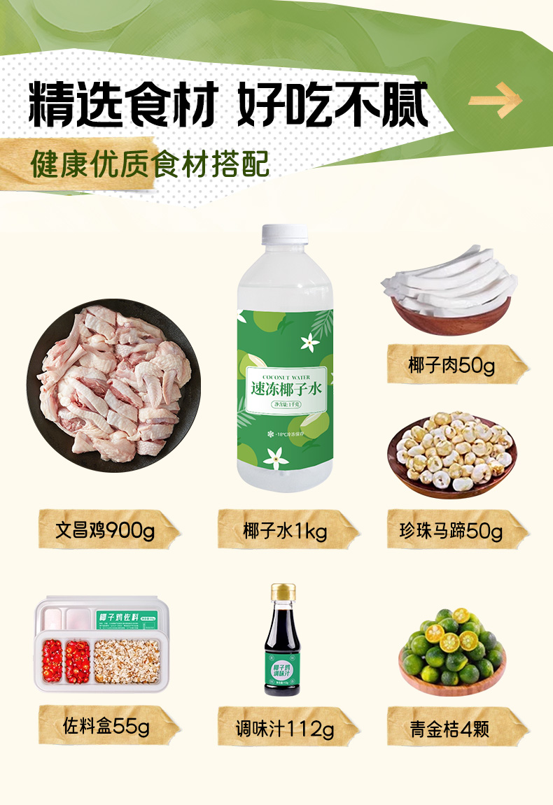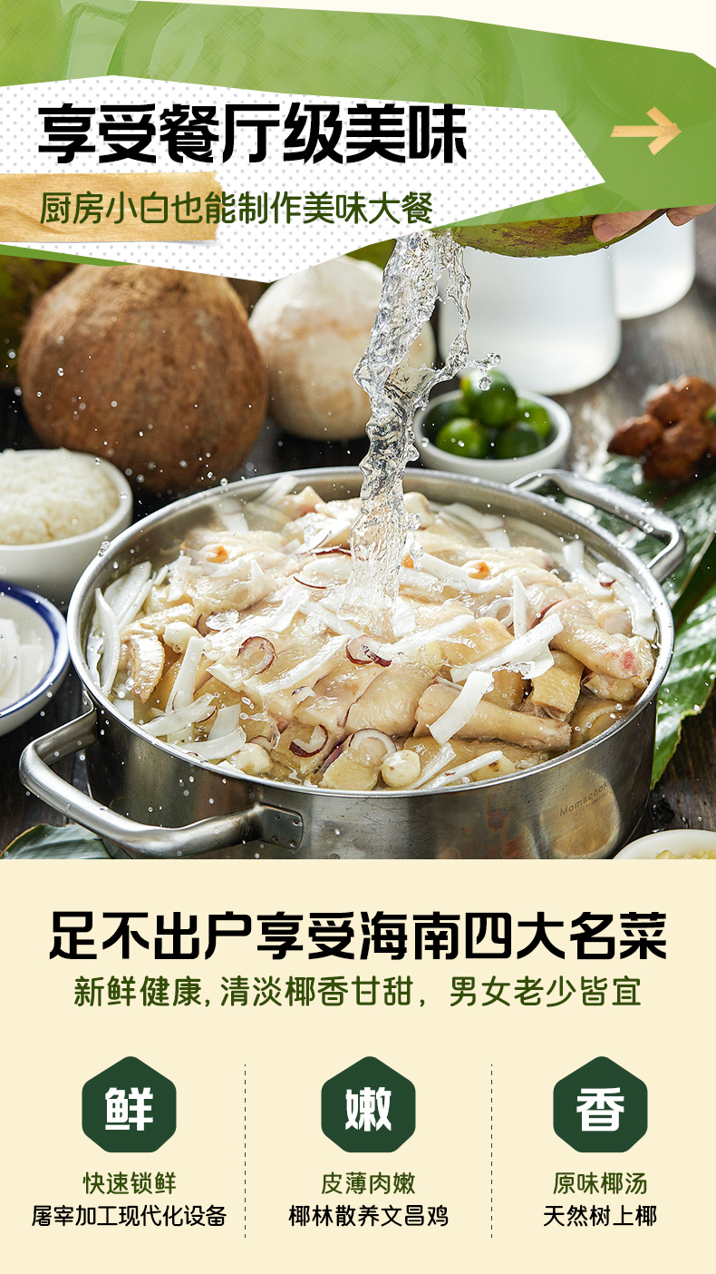 海南椰子鸡 椰林散养180天汤汁鲜香清甜 肉质紧实爽口 包含鸡肉+椰子水+配料+蘸料 简单易上手 预售7天