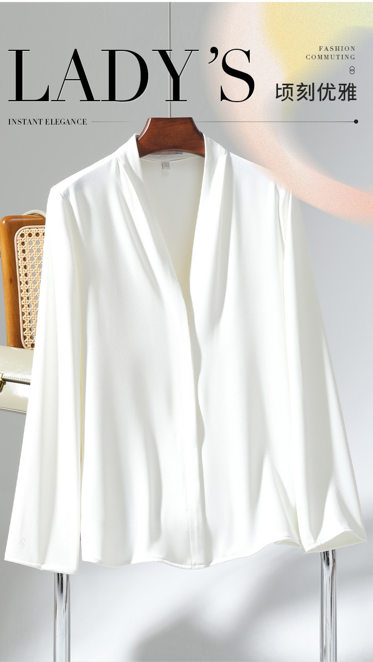 【简约V领】罗蒙女士长袖衬衫舒适商务时尚百搭通勤质感衬衫女