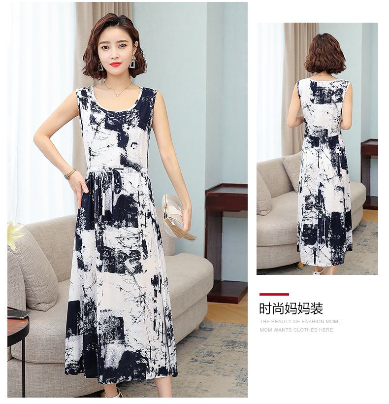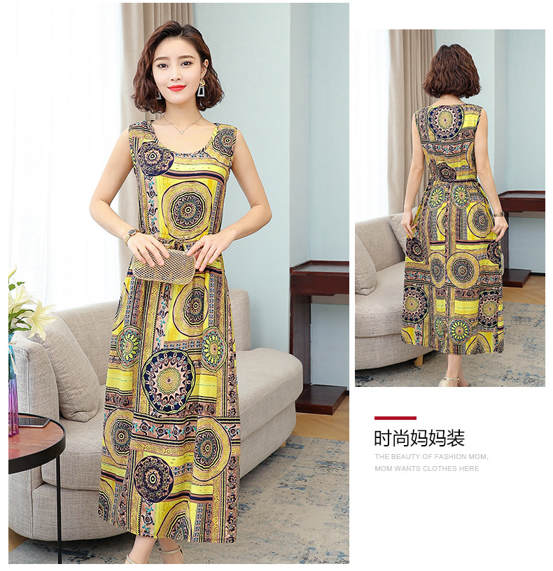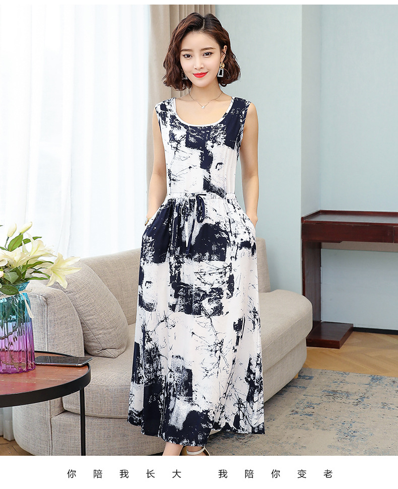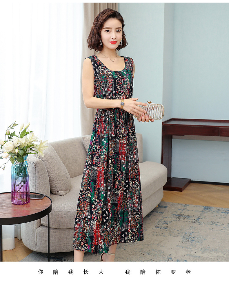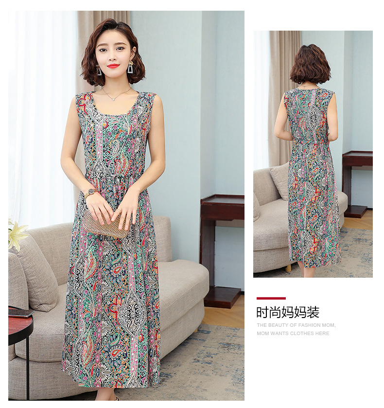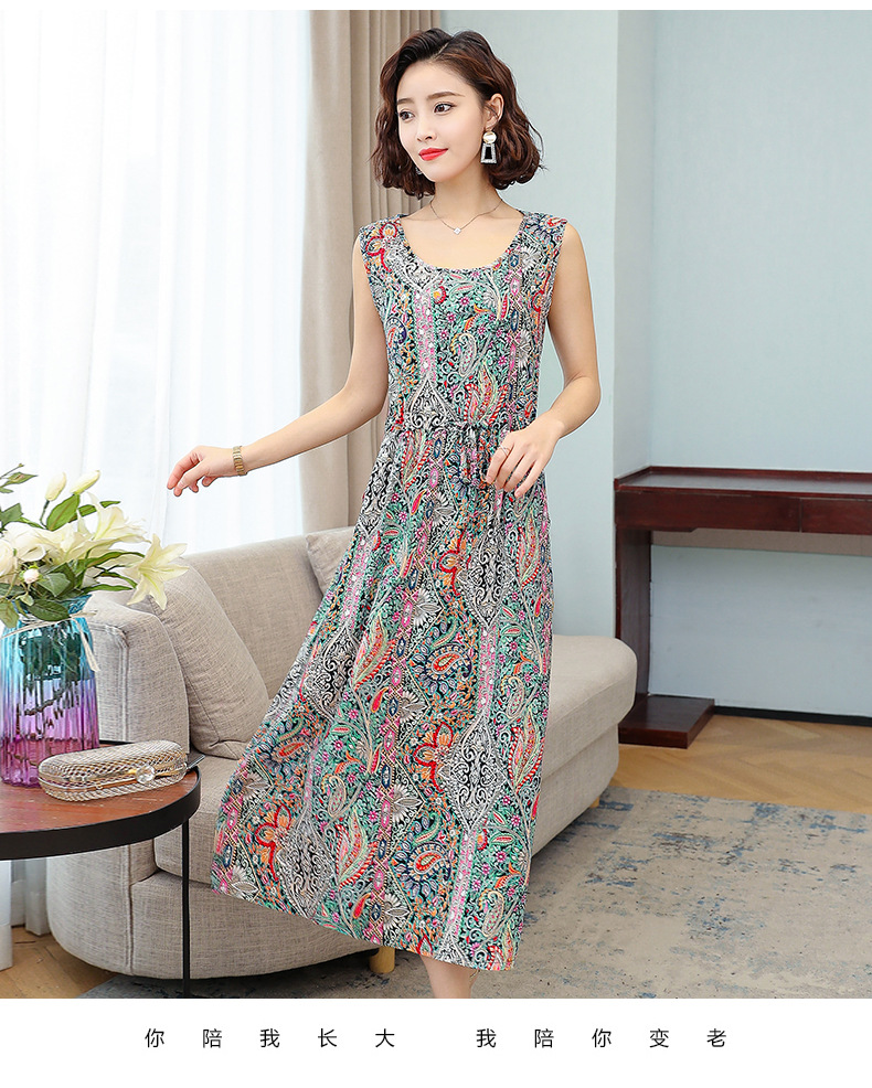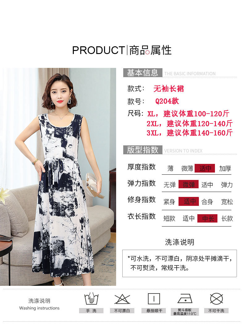 MQ-3324-Q204夏新款中长款短袖印花棉绸连衣裙YY