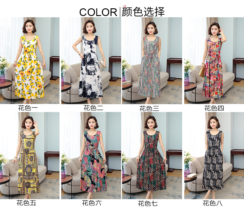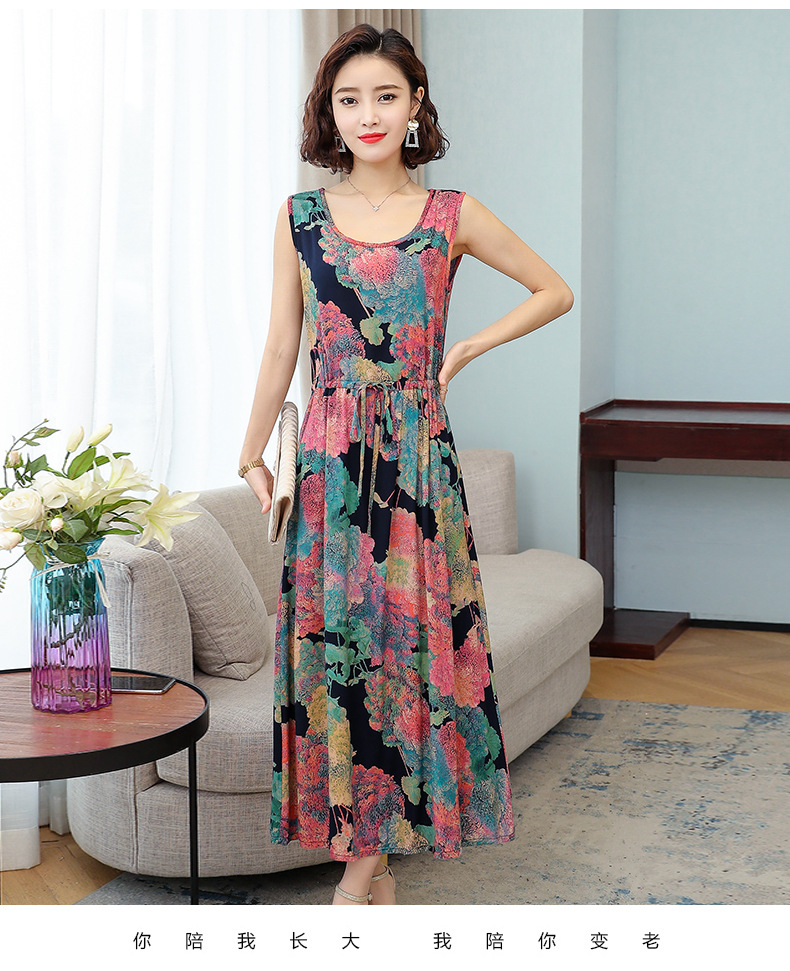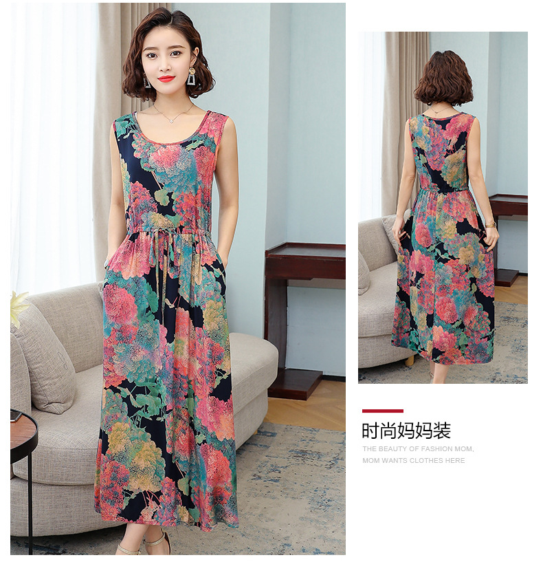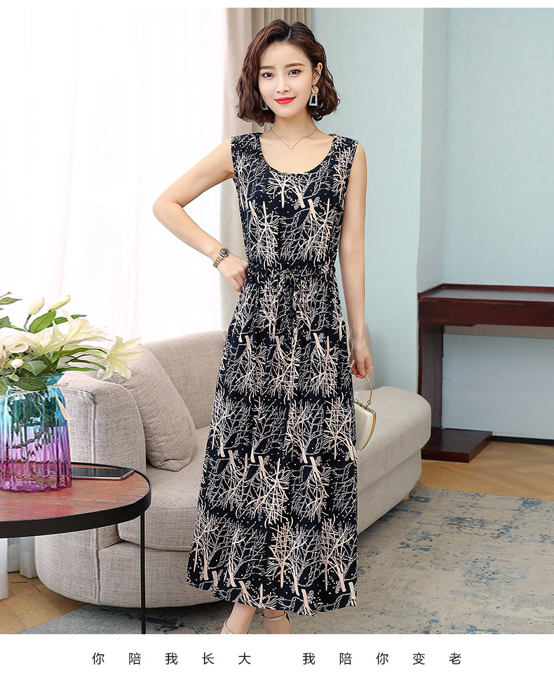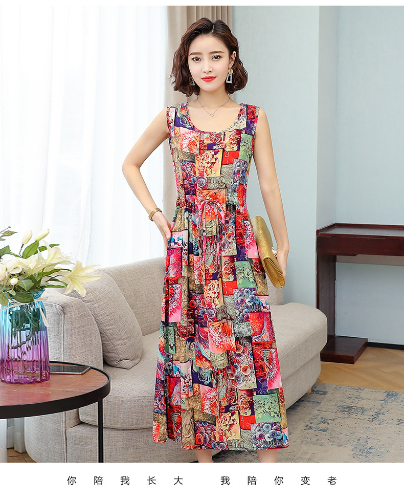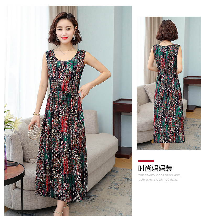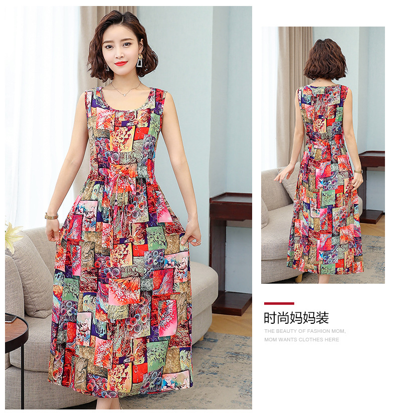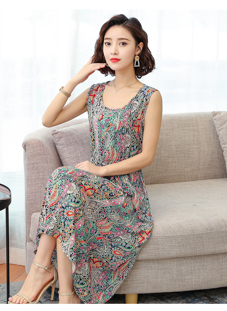 MQ-3324-Q204夏新款中长款短袖印花棉绸连衣裙YY