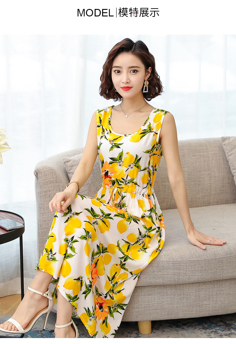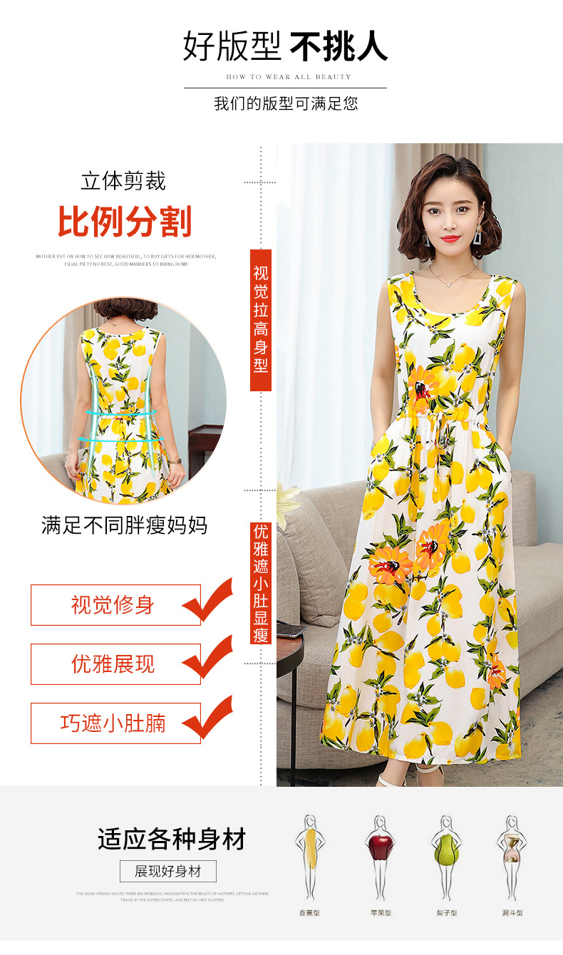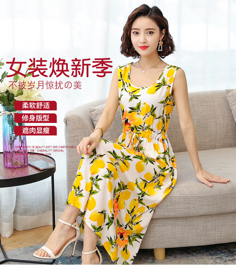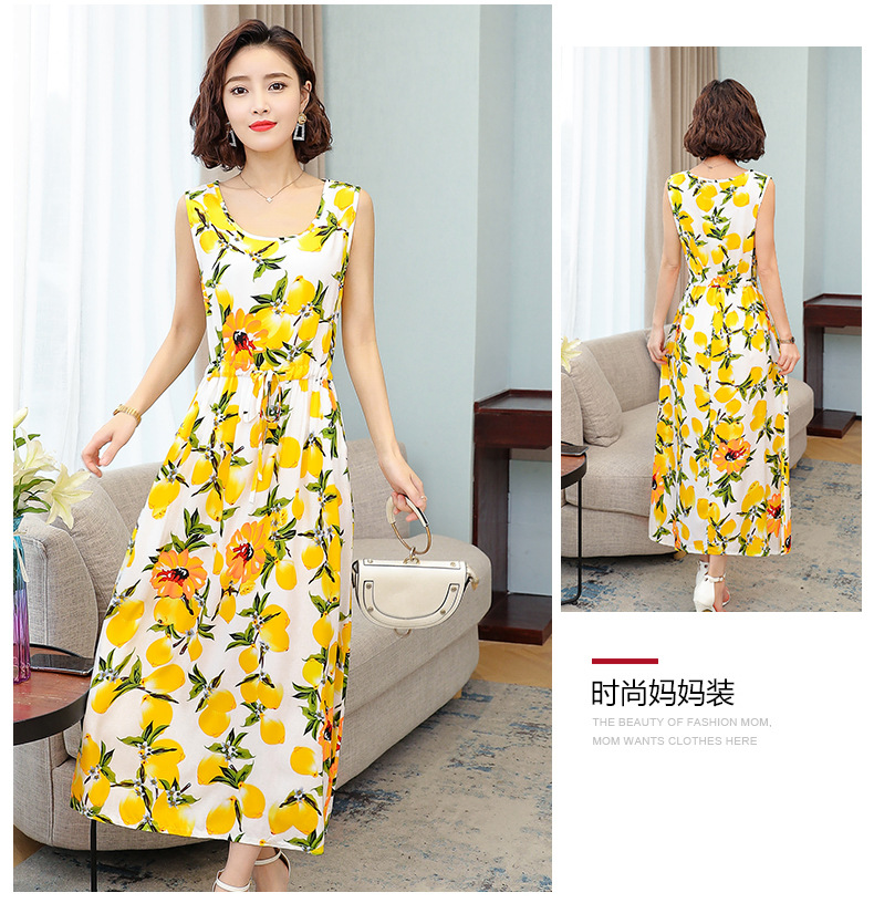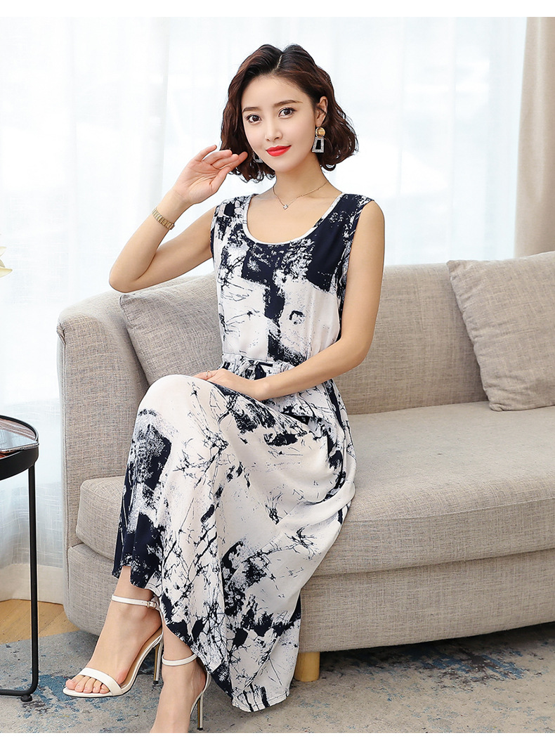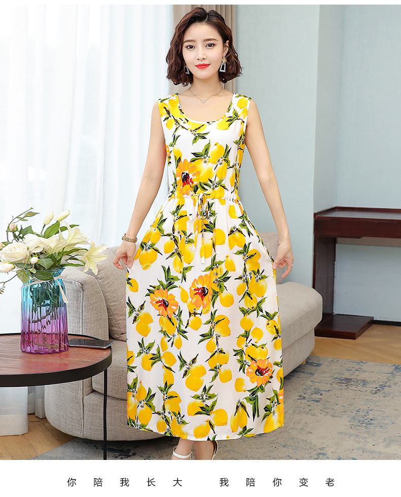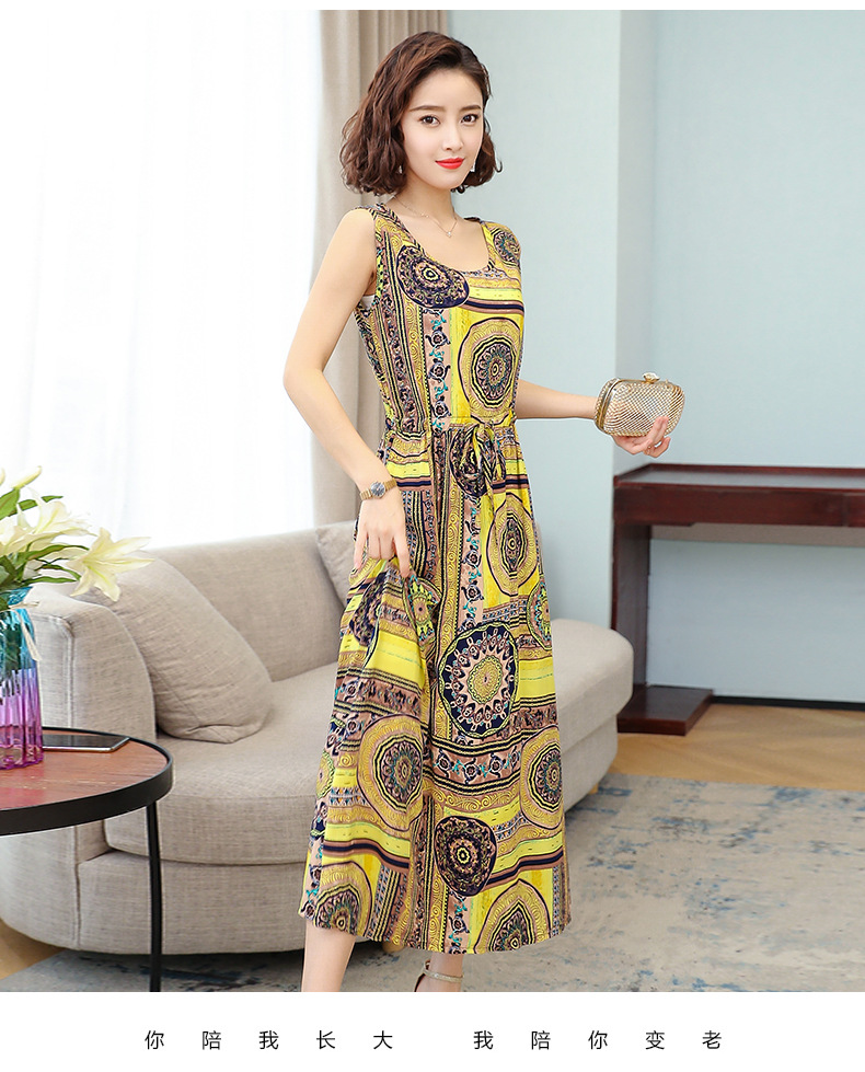 MQ-3324-Q204夏新款中长款短袖印花棉绸连衣裙YY