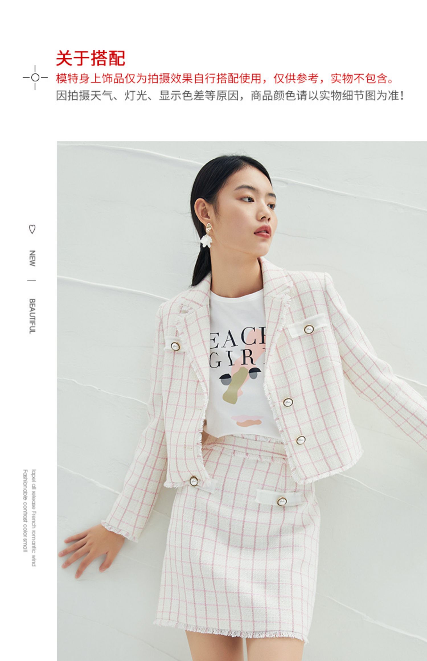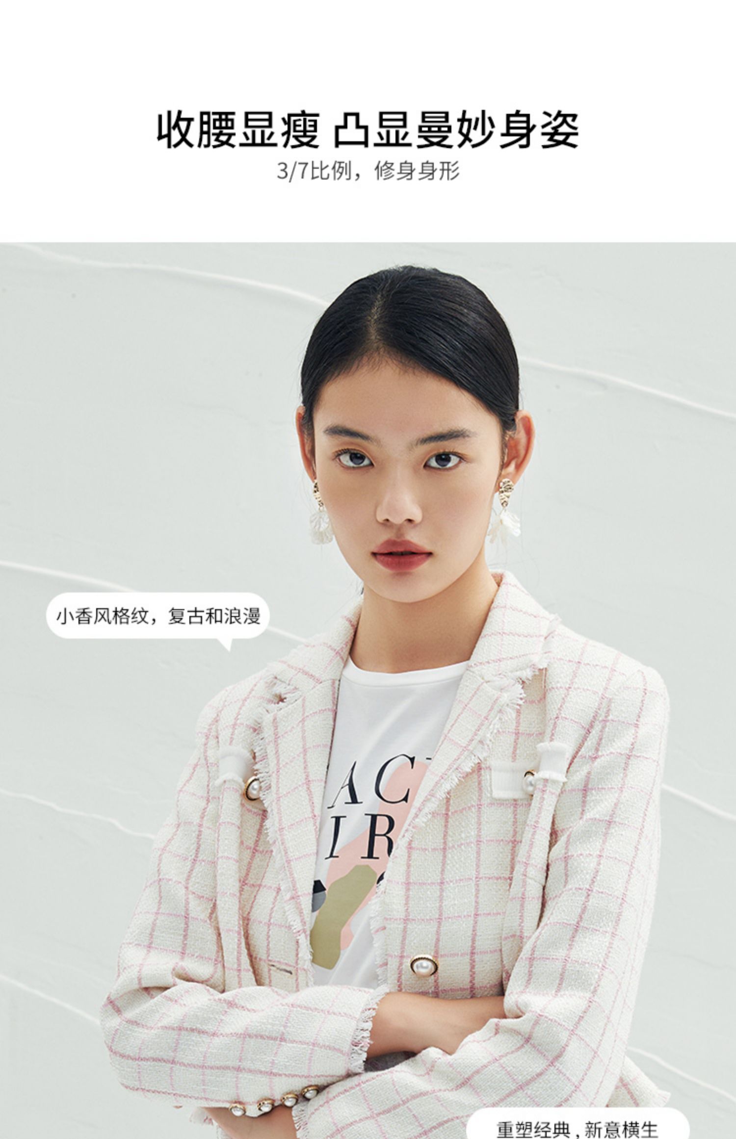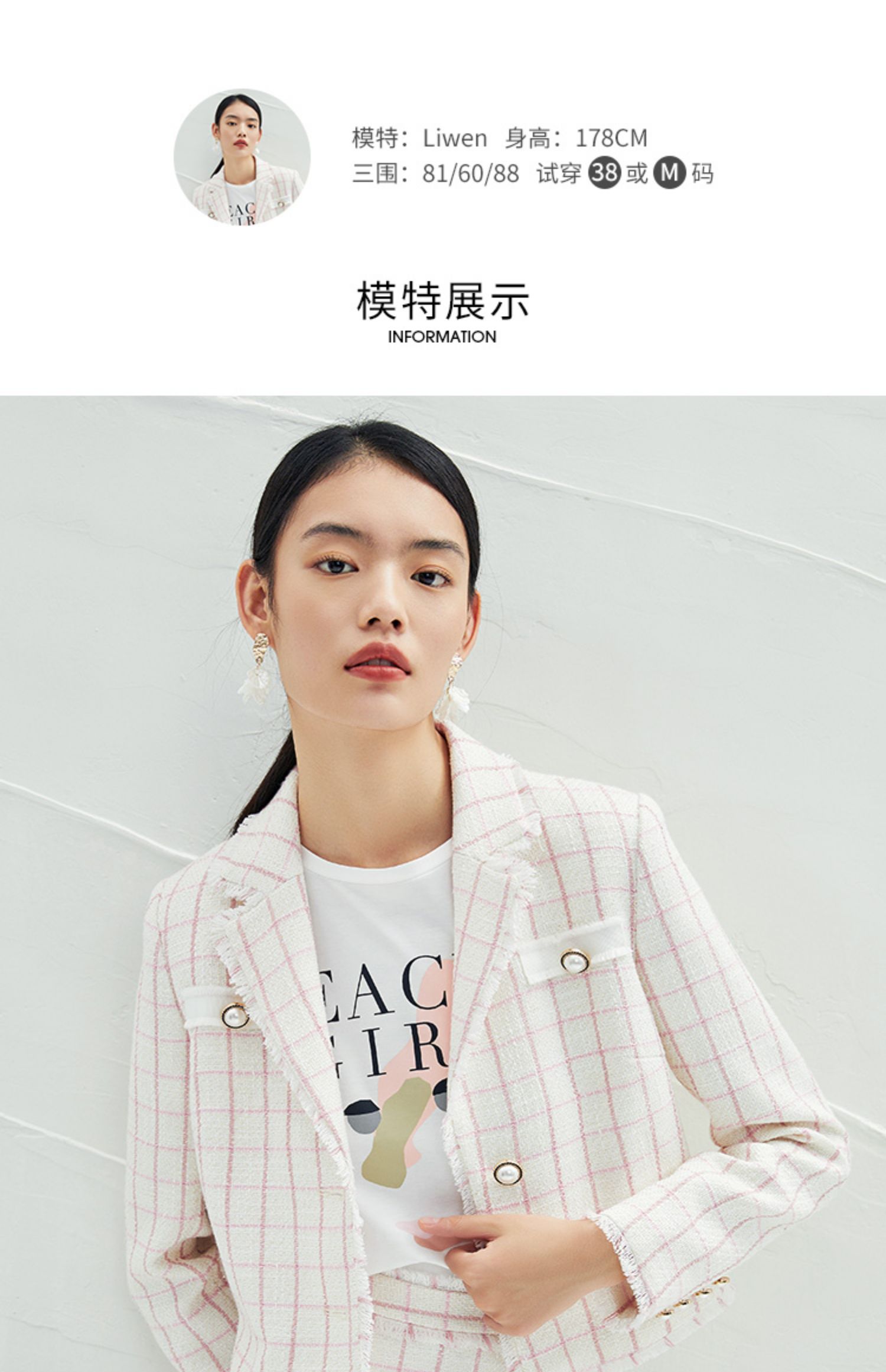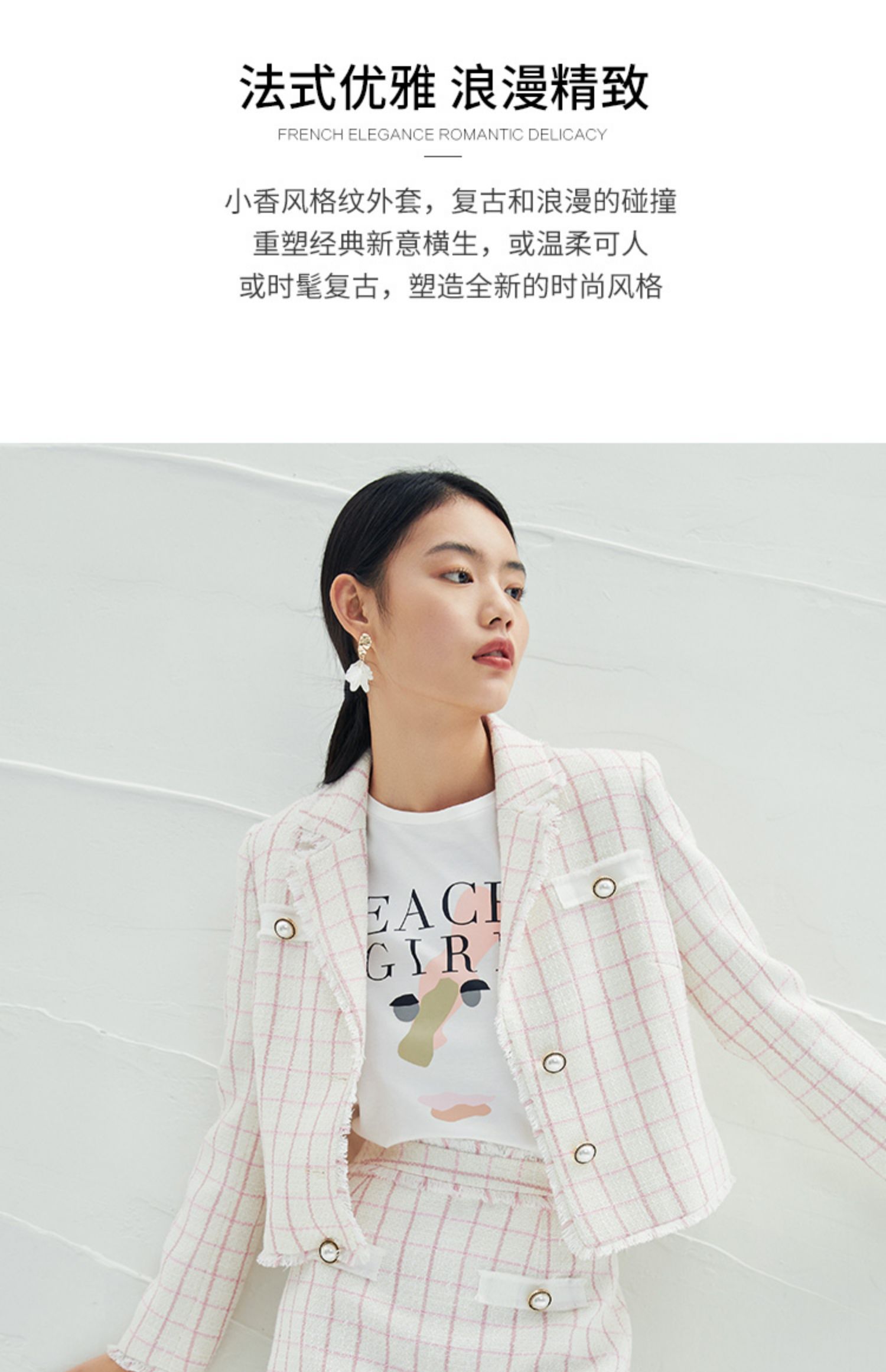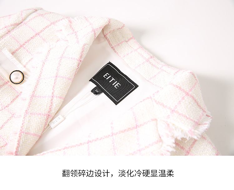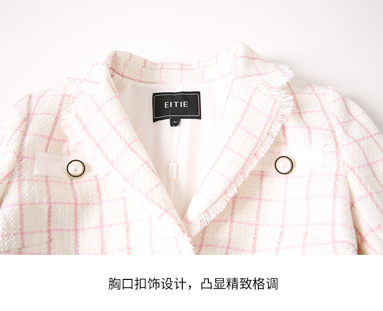 EITIE爱特爱春季新款格子气质翻领修身显瘦百搭简约女短外套A2203905