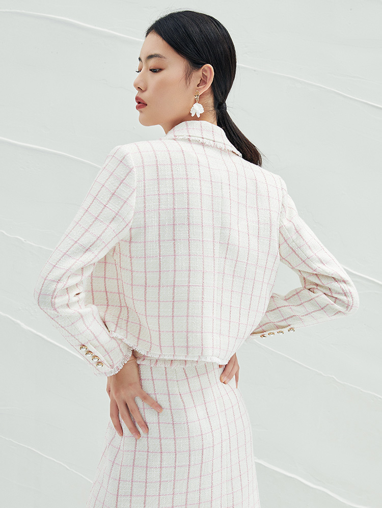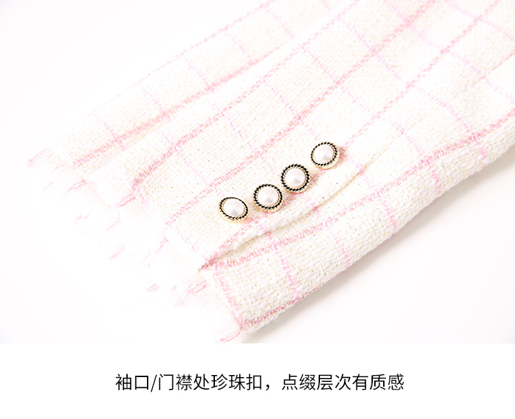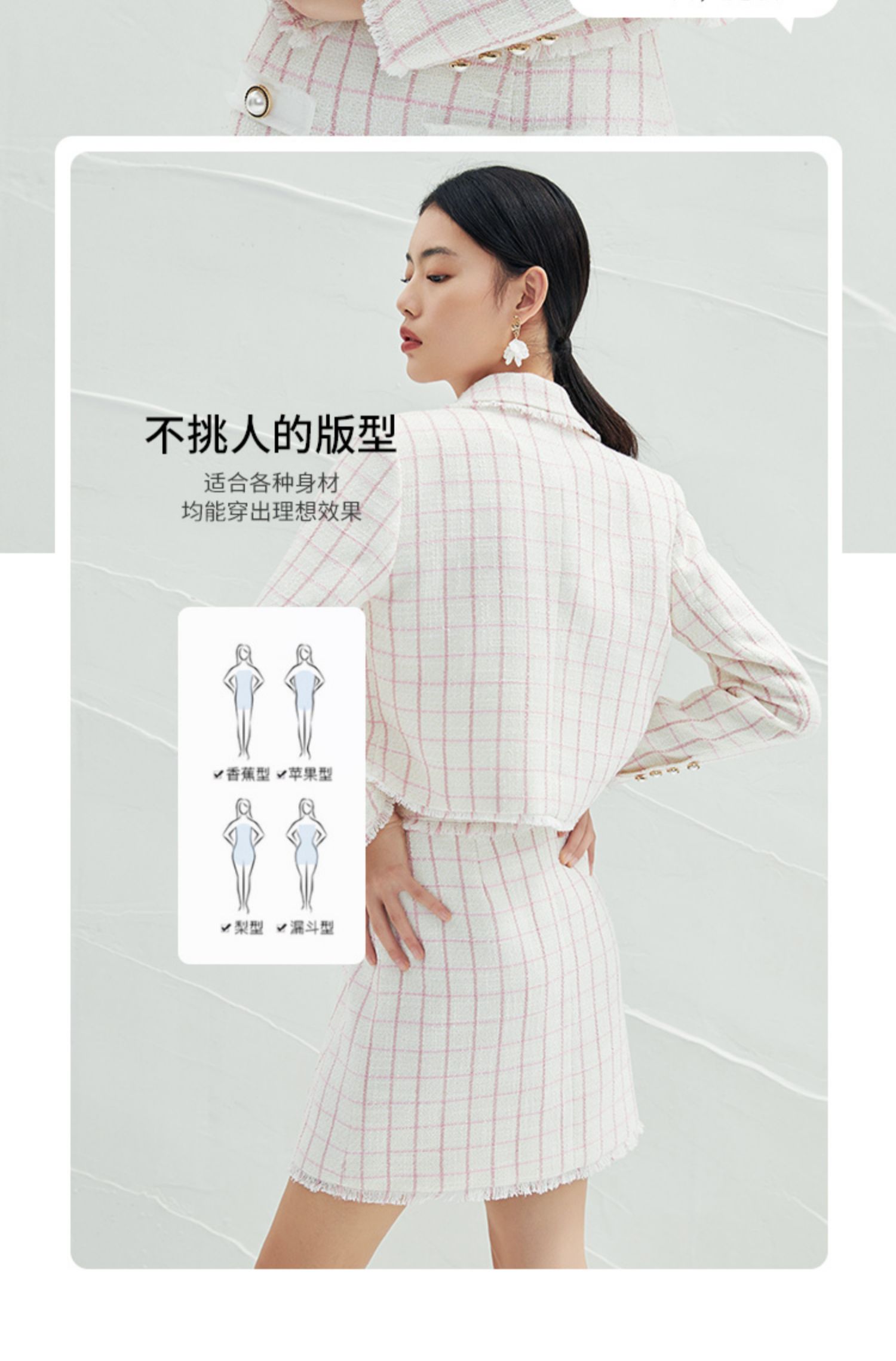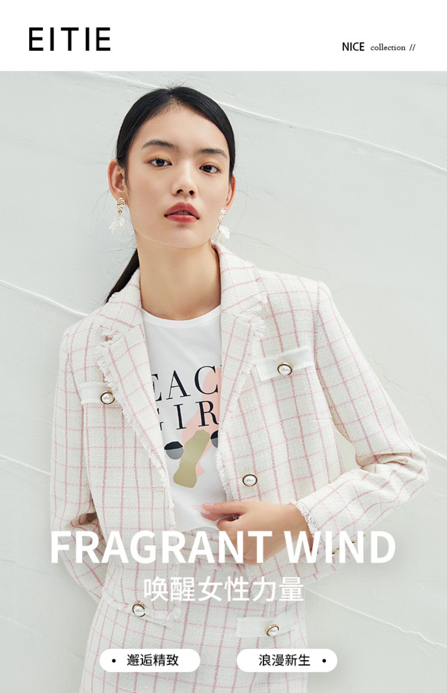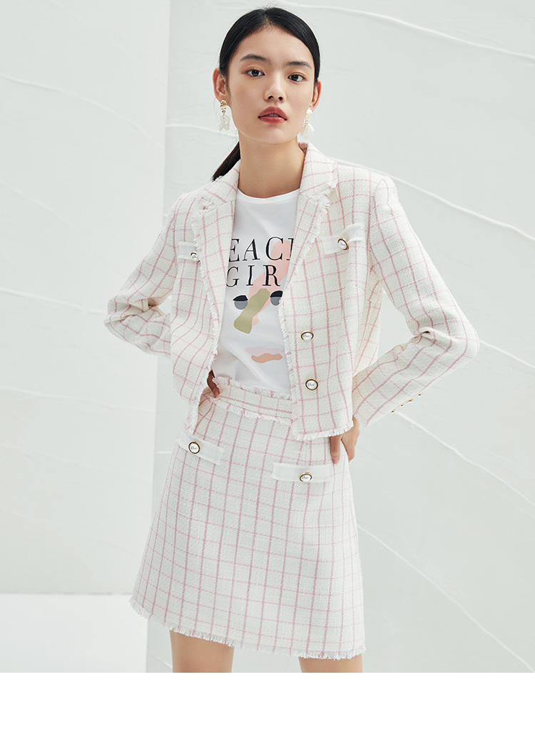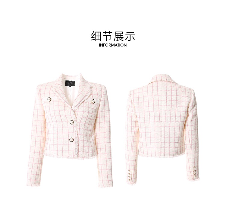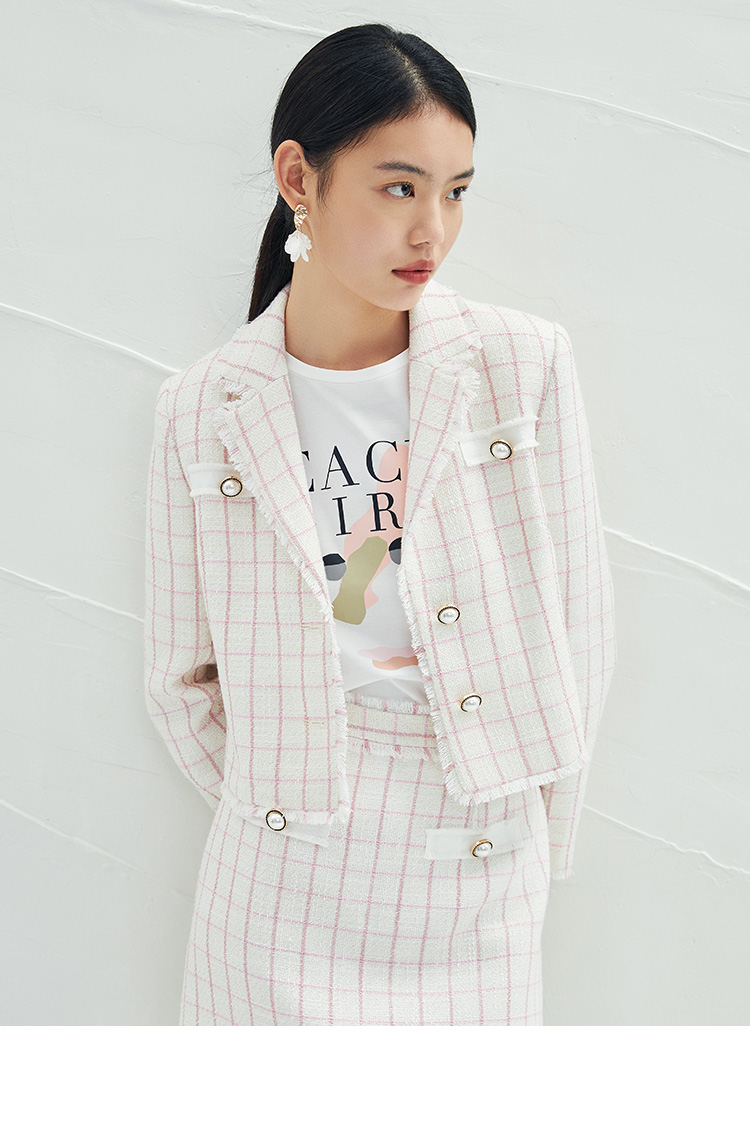 EITIE爱特爱春季新款格子气质翻领修身显瘦百搭简约女短外套A2203905