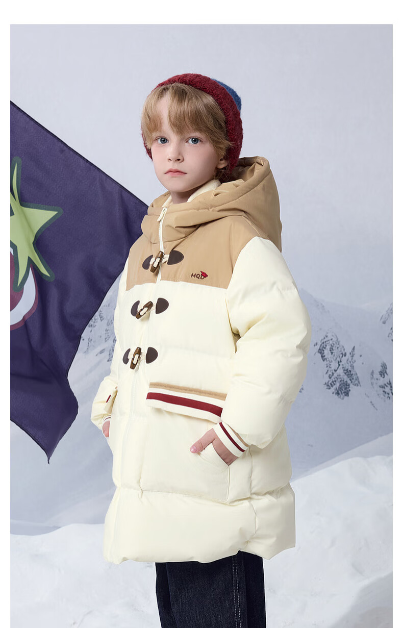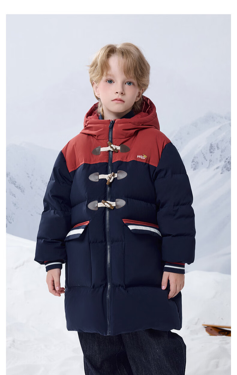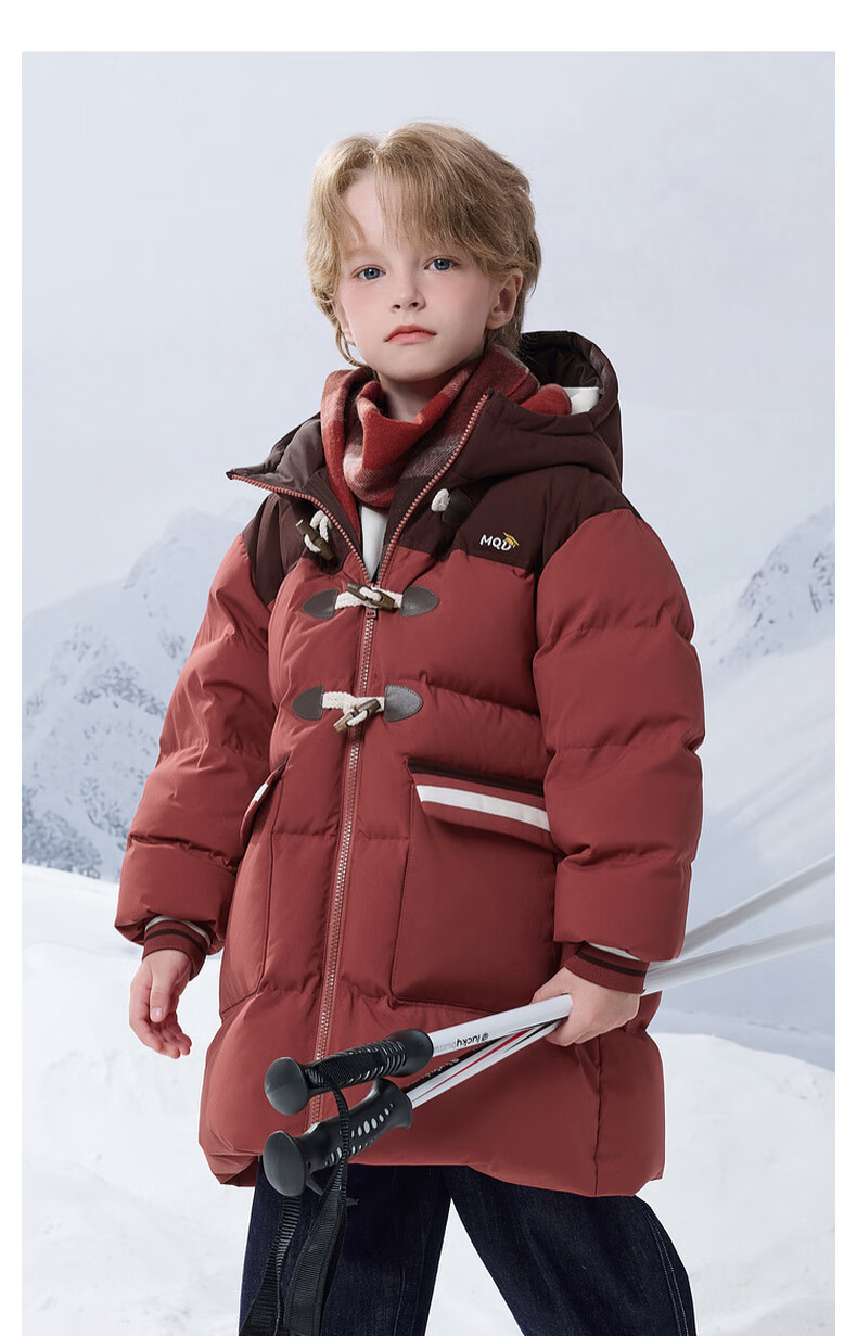 【MQD】冬季男女大童潮酷学院风休闲保暖中长款连帽羽绒服