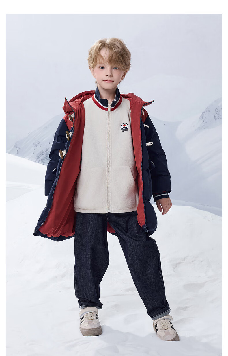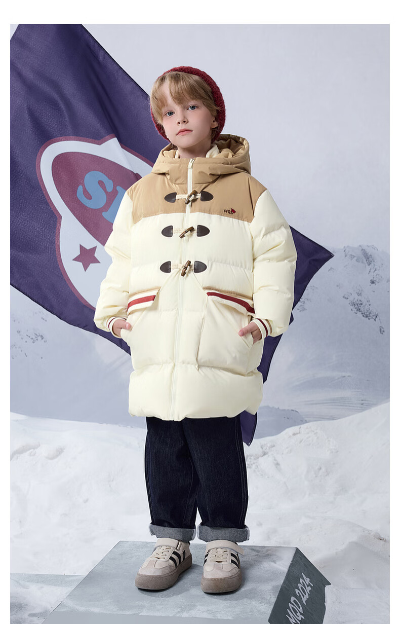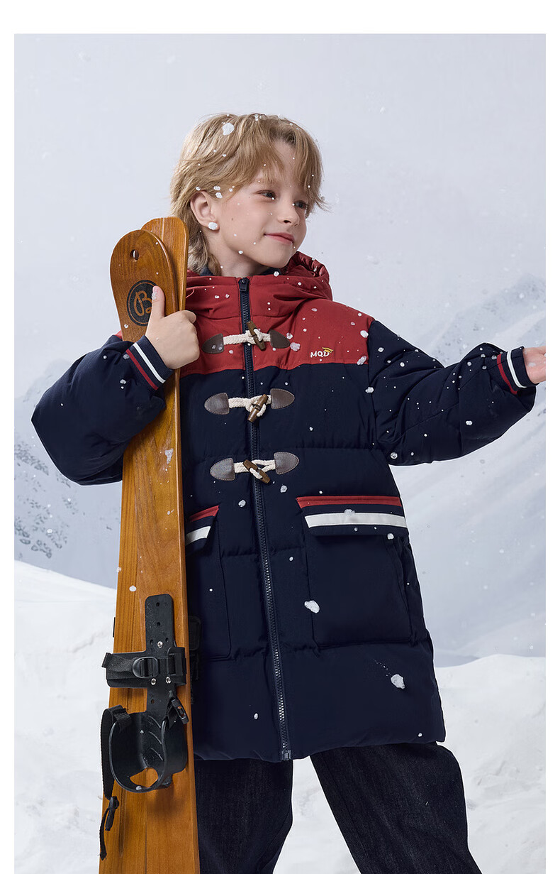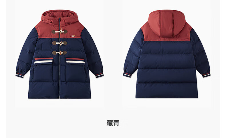 【MQD】冬季男女大童潮酷学院风休闲保暖中长款连帽羽绒服