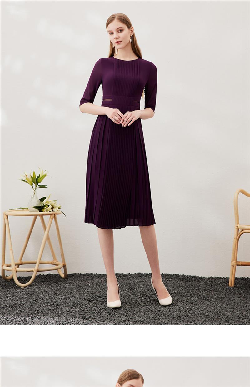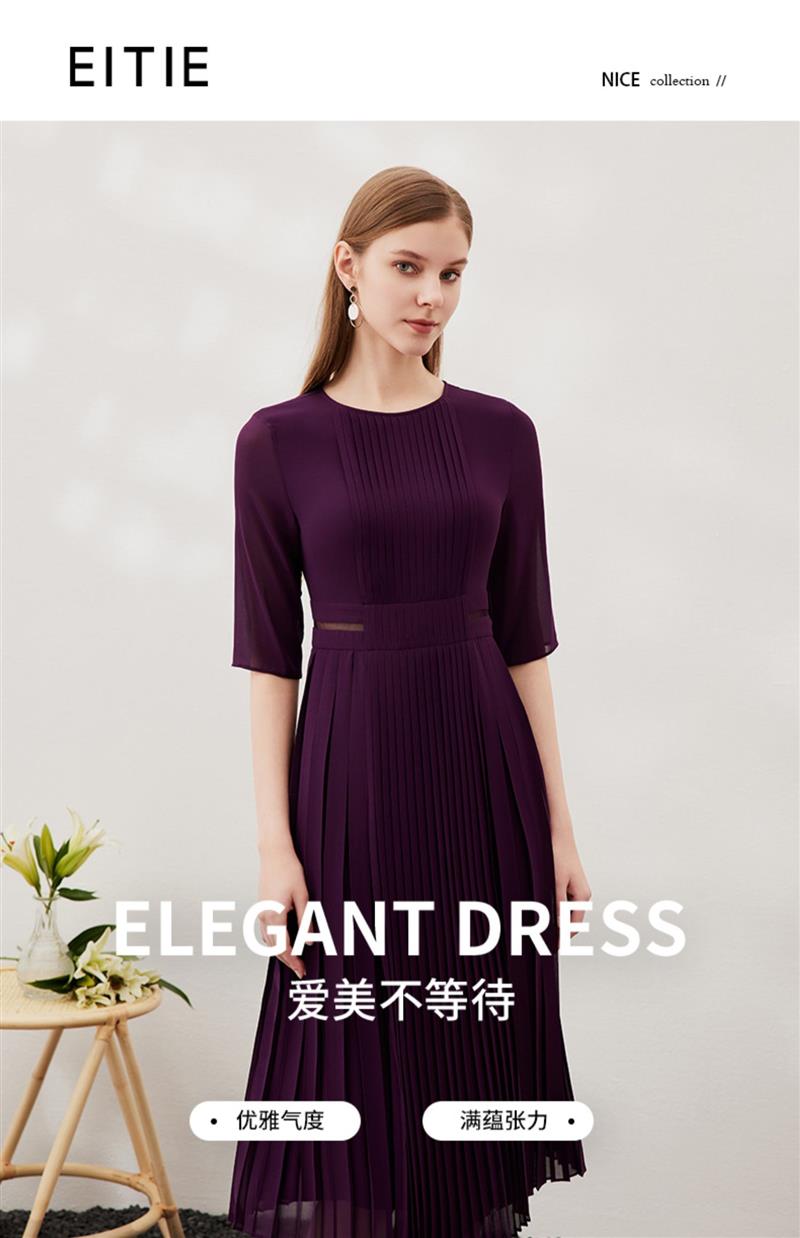 EITIE爱特爱品牌女装秋款优雅纯色日常婚宴礼服中长款A字裙5877509
