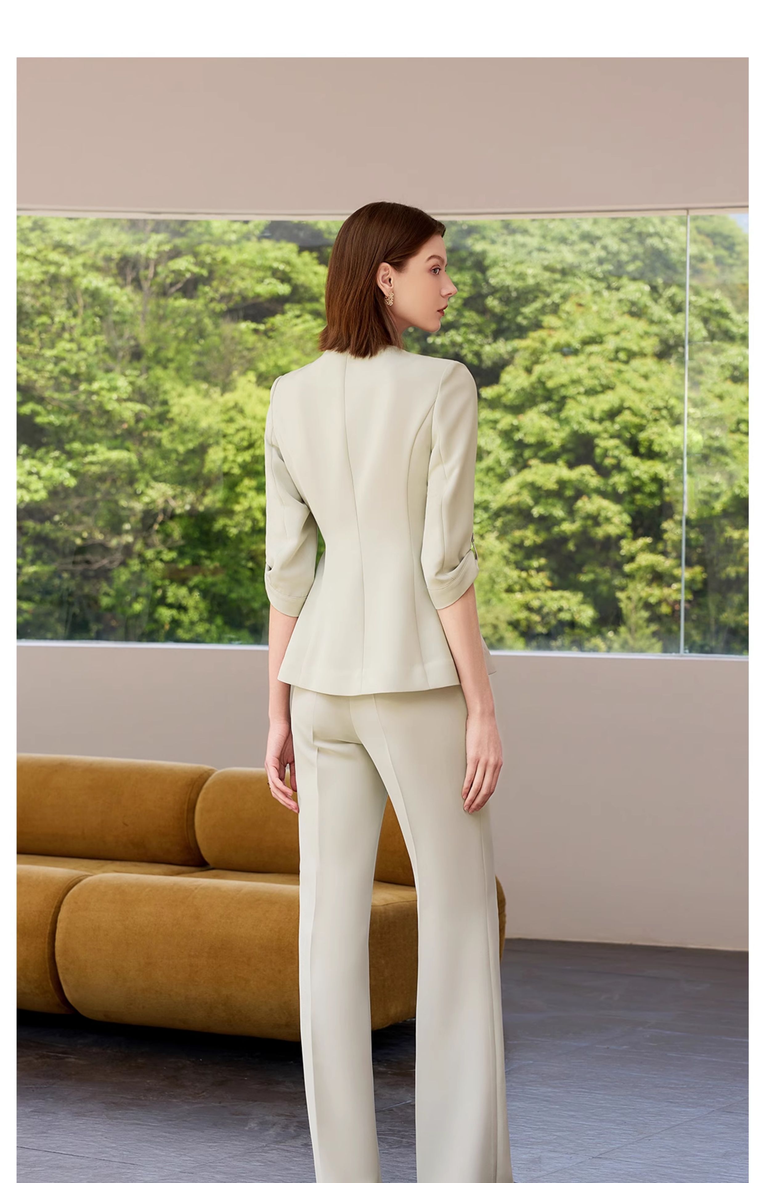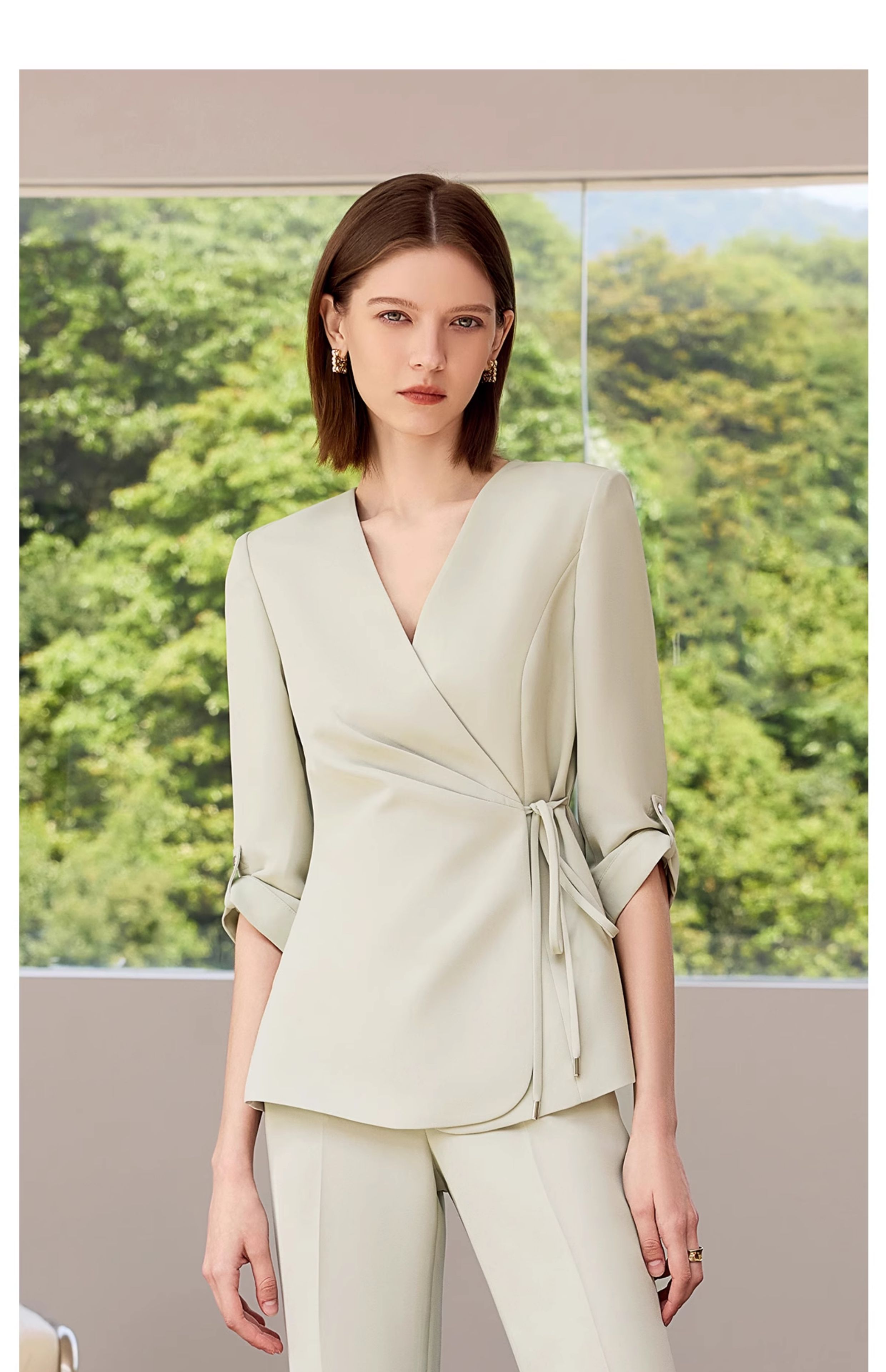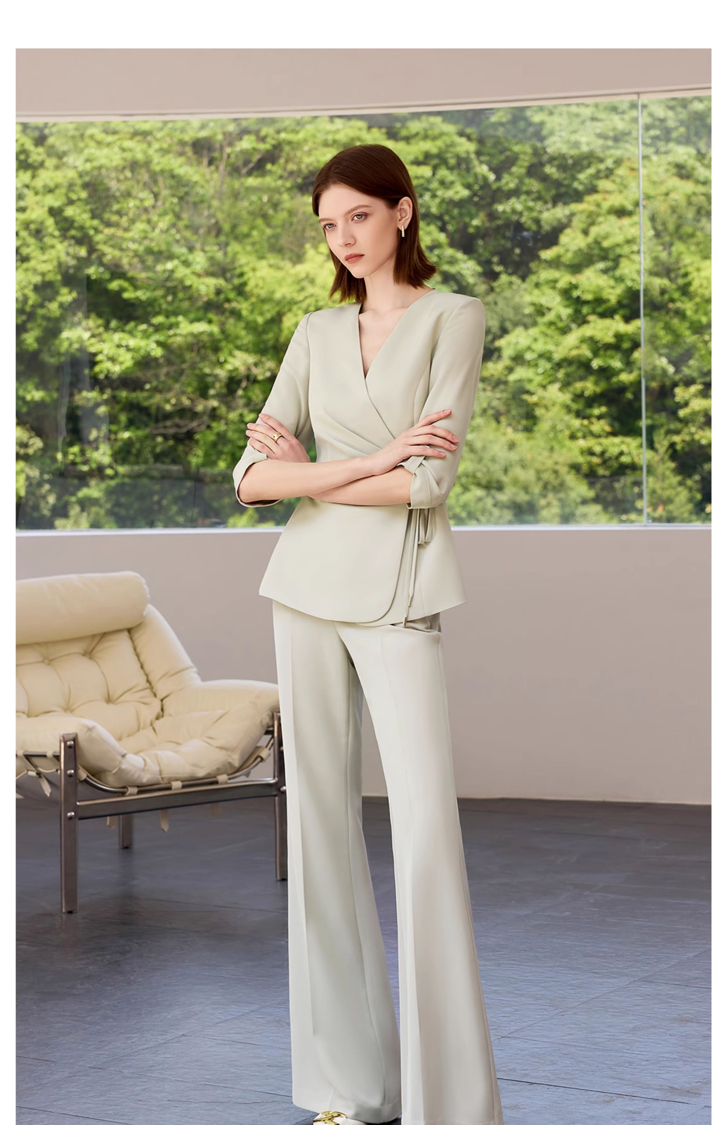 IWY/气质灰绿色短袖西装套装女高级感职业装总裁上班正装工作服CP2285