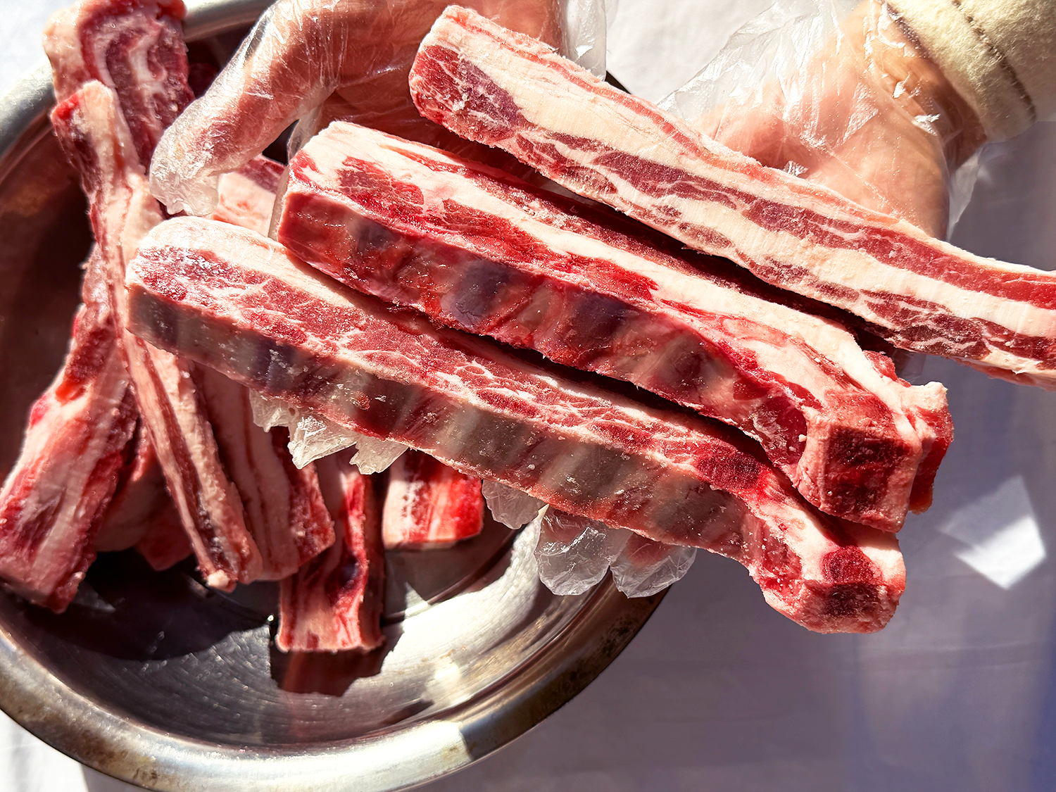 羊排——紧挨着羊脊梁的条状羊肋排,肥而不腻,造型口感俱佳。