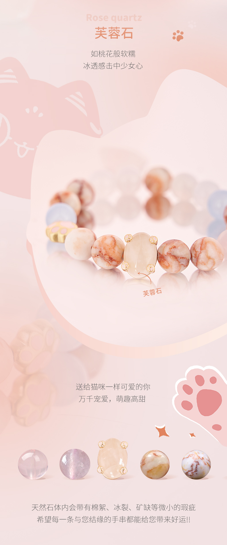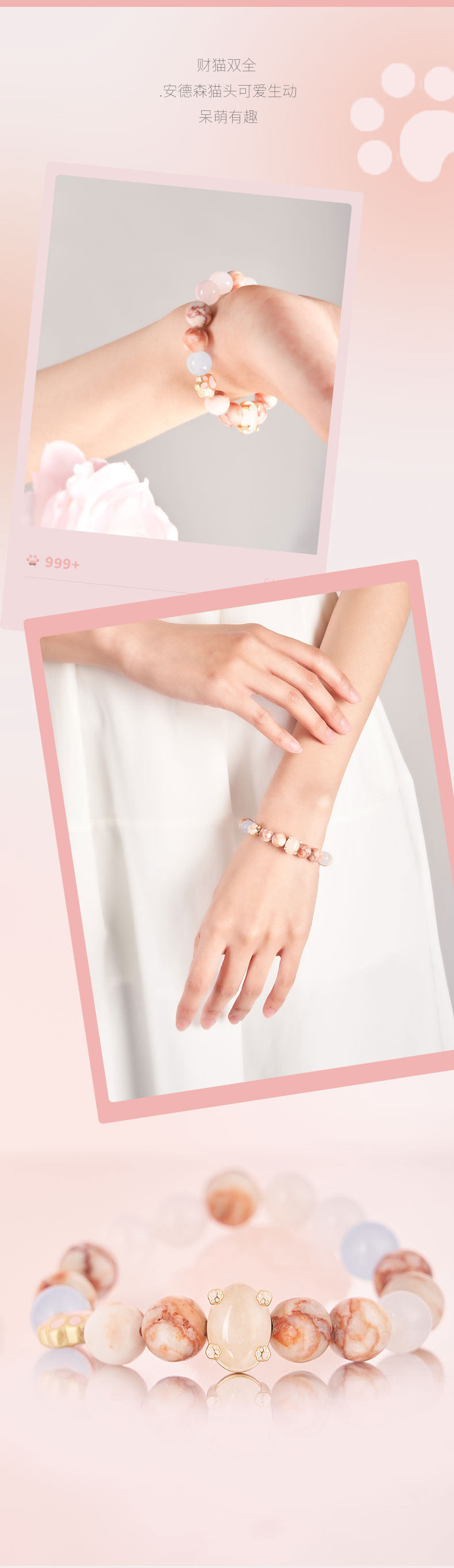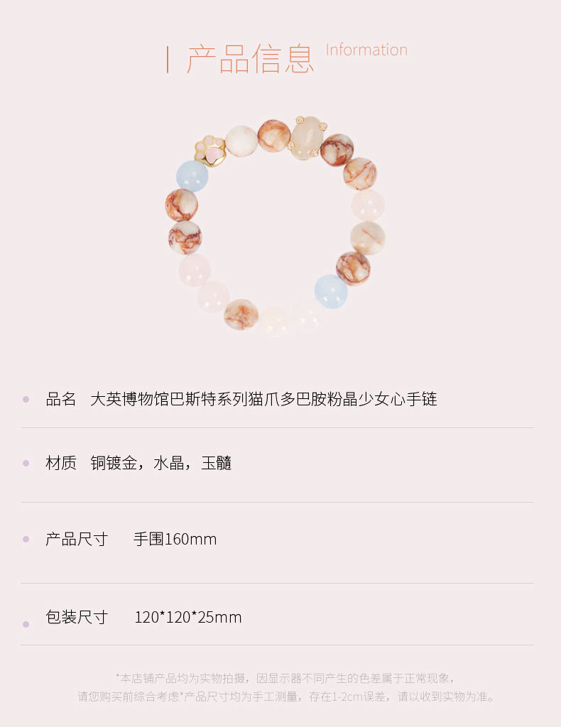 大英博物馆 巴斯特系列猫爪 多巴胺粉晶 少女心手链