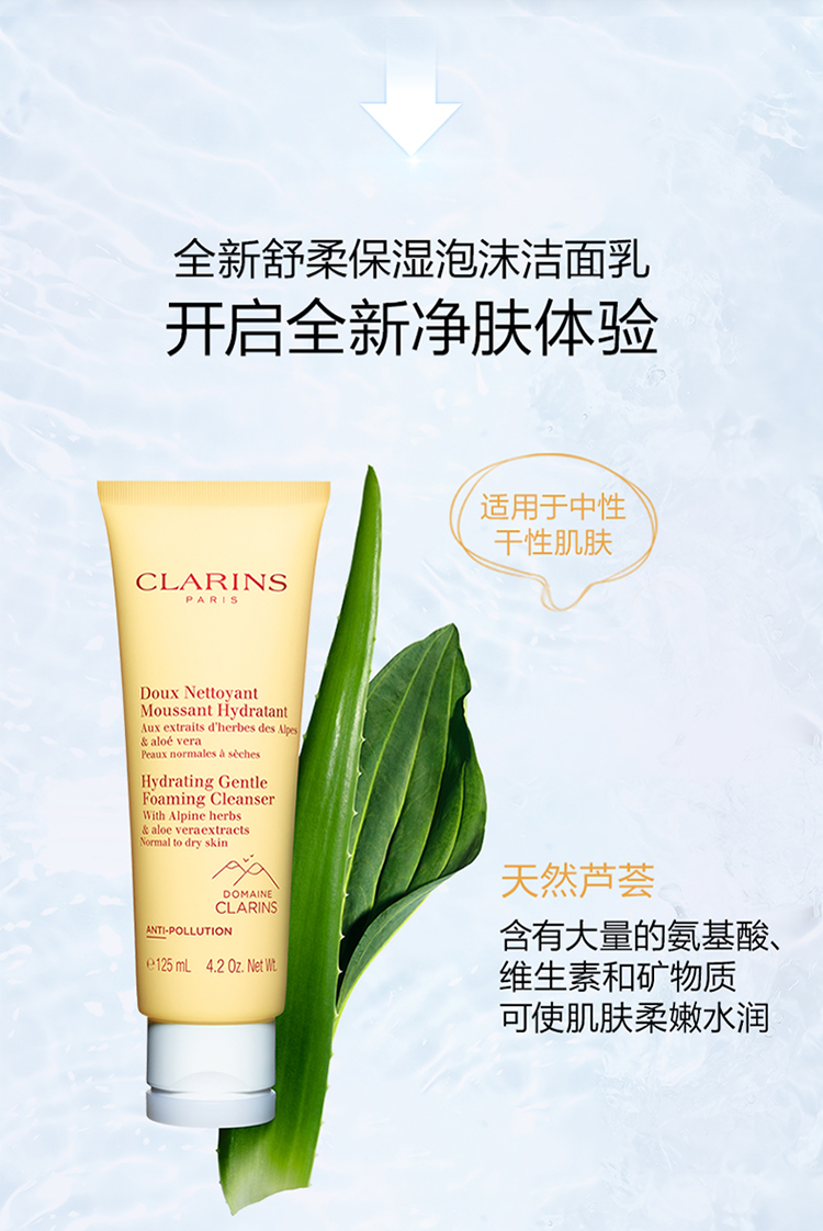 【1件包邮】娇韵诗柔润泡沫洁面乳125ml/118103 干性肌挚爱舒适不拔干港澳台不发货