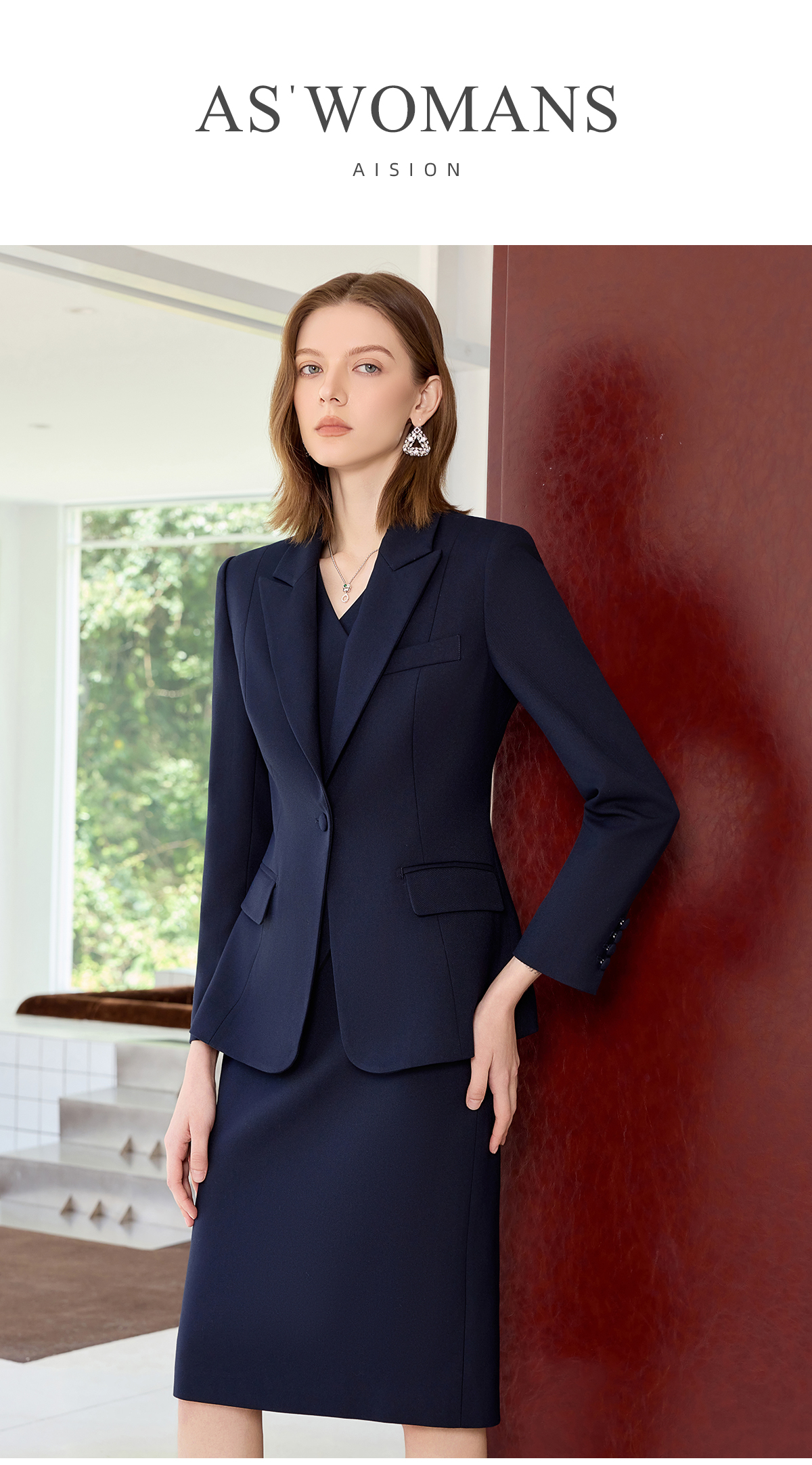IWY/藏青色西装套裙女秋季长袖高级感商务正装职场工作服J25C215+25S825