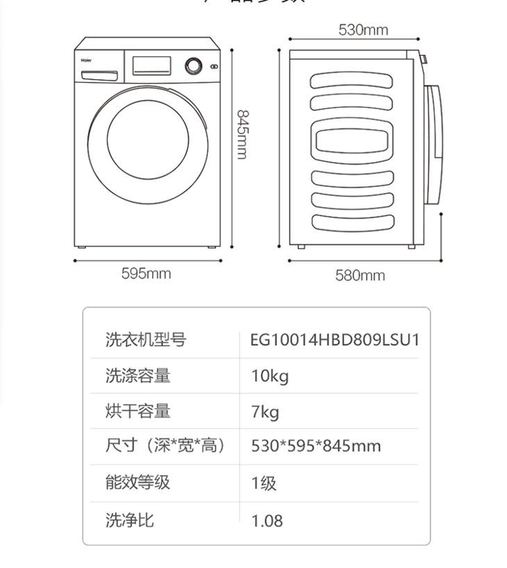 海尔(Haier)洗烘套装 EG100BD88PLUS+EHG10088PLUS