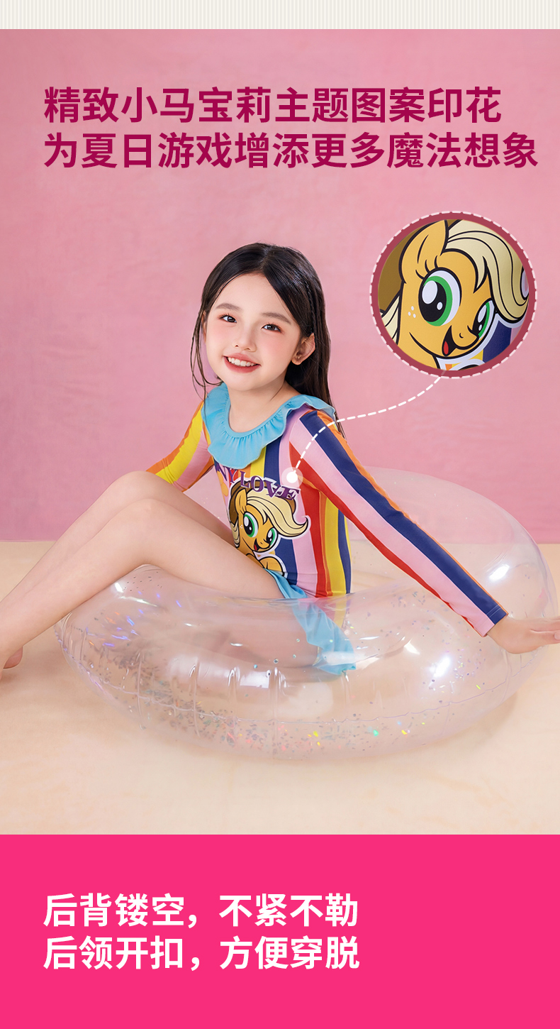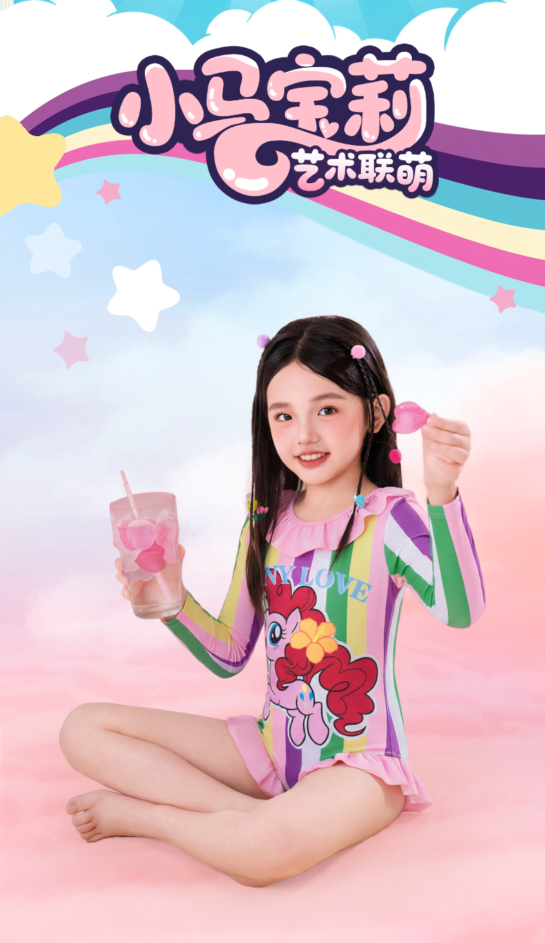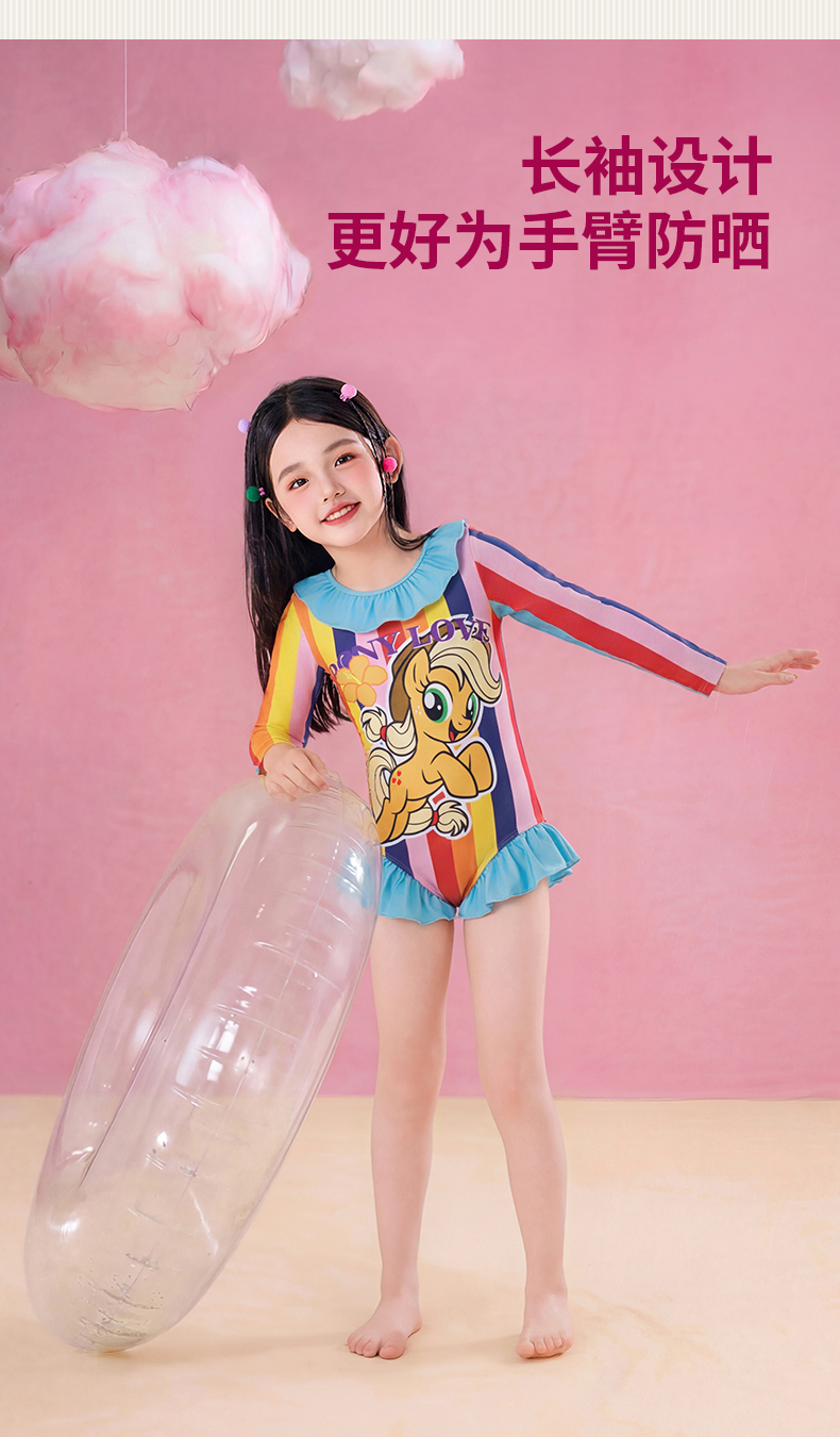 小马宝莉联名童装小马宝莉条纹泳衣女童夏季新款卡通防晒泳装夏款