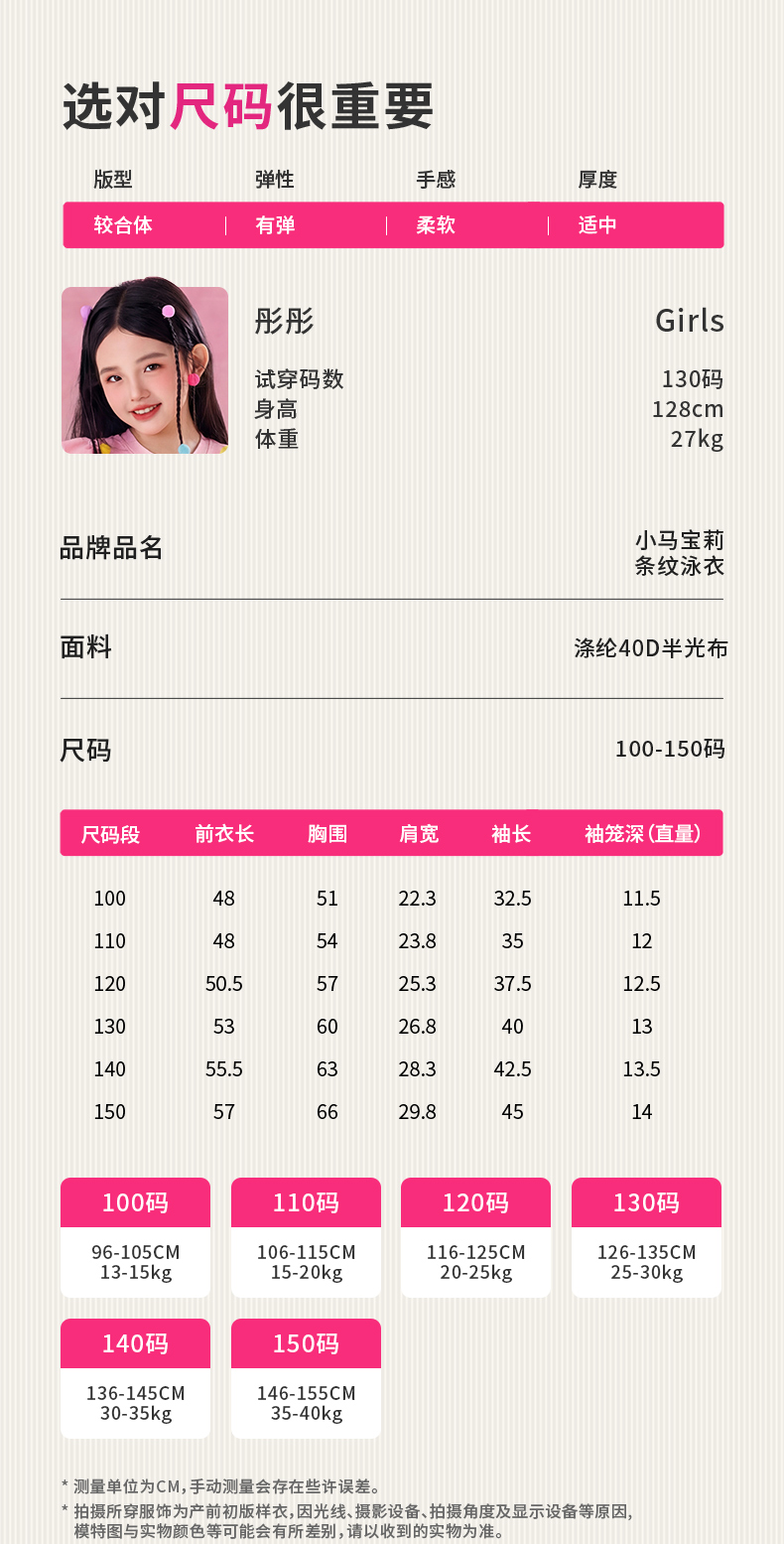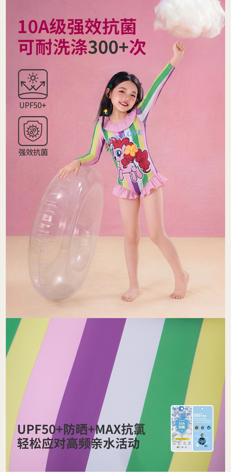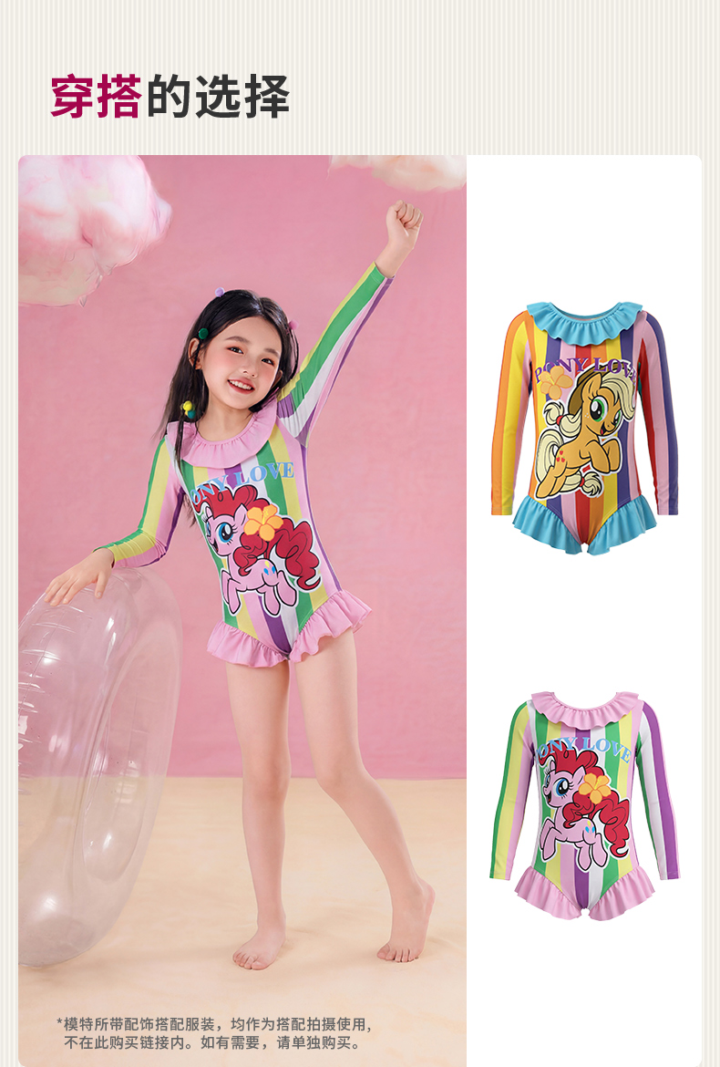 小马宝莉联名童装小马宝莉条纹泳衣女童夏季新款卡通防晒泳装夏款