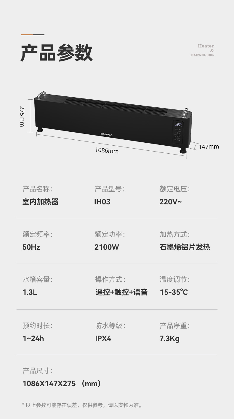 【大宇DAEWOO】 IH03复古火焰取暖器