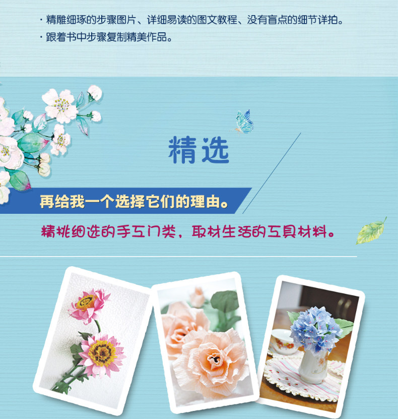 ★步骤超详细,小白也学得会:这本书从纸艺花基本技法讲起,共收录20多个纸艺花作品,详解制作过程,手把手教你做,真正的零基础。