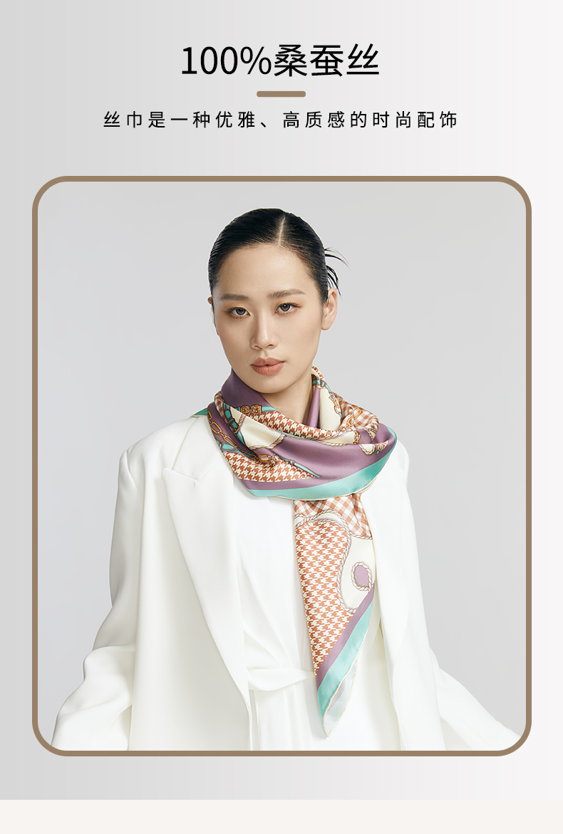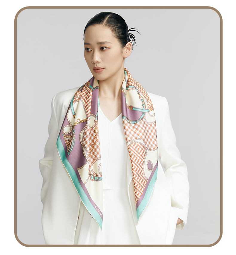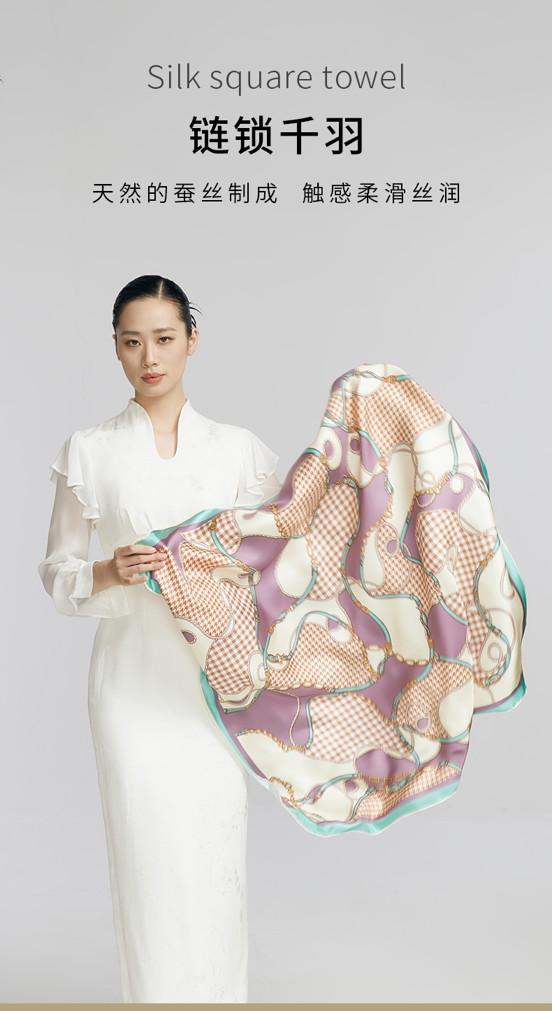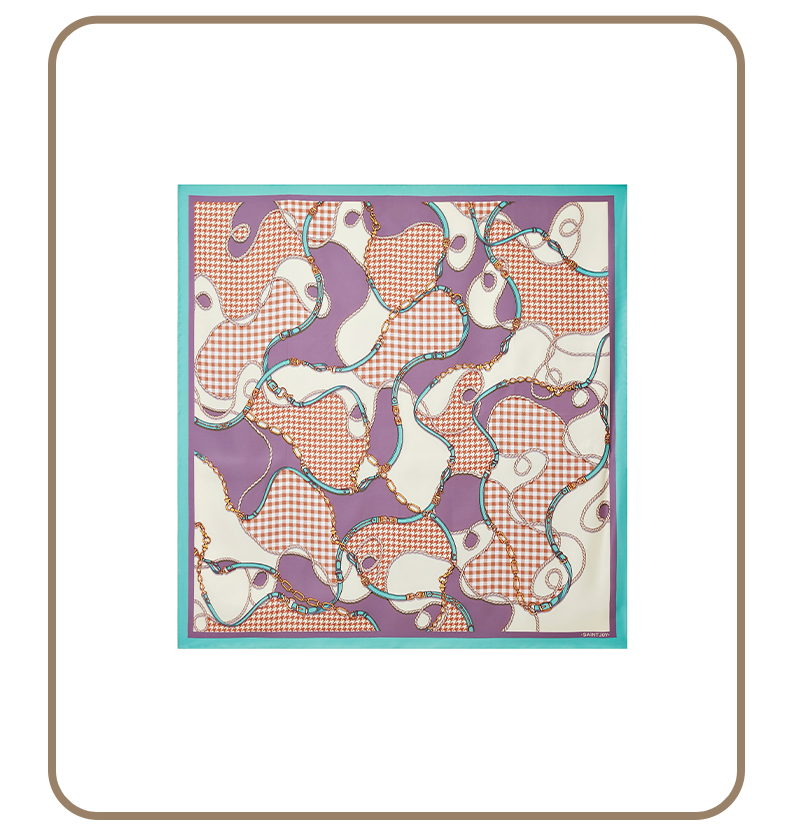 SAINTJOY/上久楷 真丝方巾 链锁千羽 FJS24011