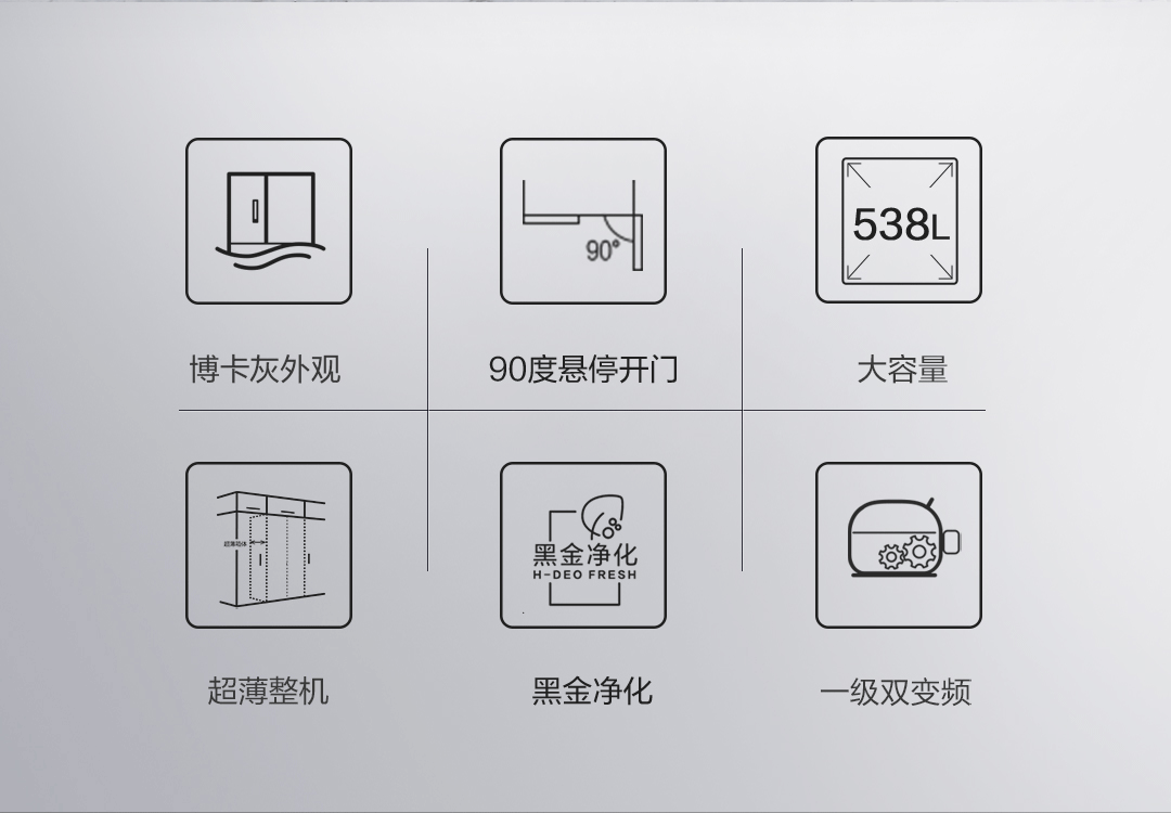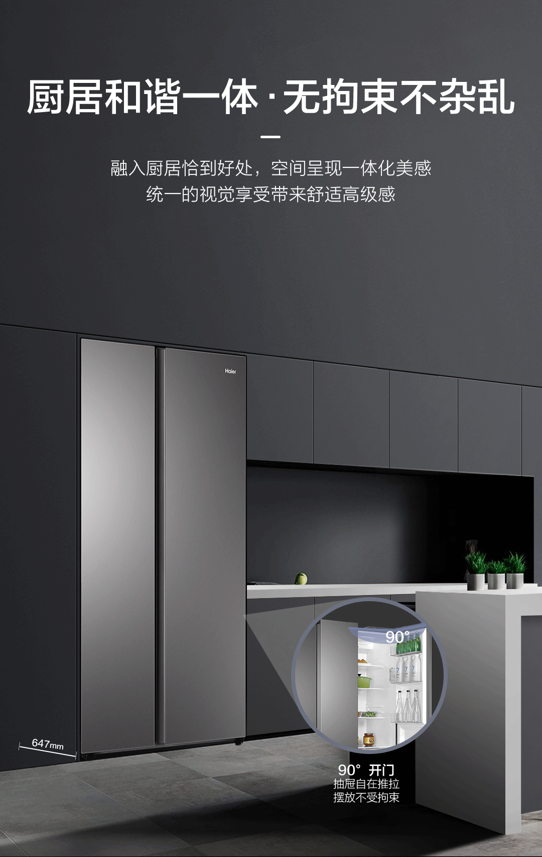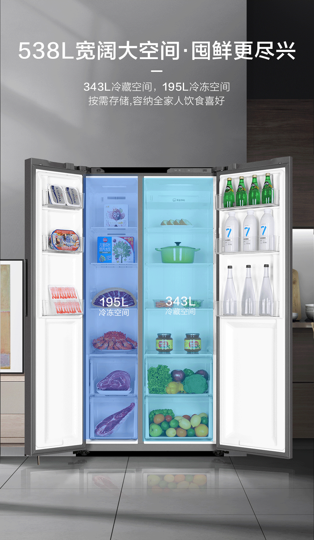 海尔(Haier)538大容量风冷无霜一级双变频黑金净化抗菌超薄整机冰箱BCD-538WGHSSEDBK