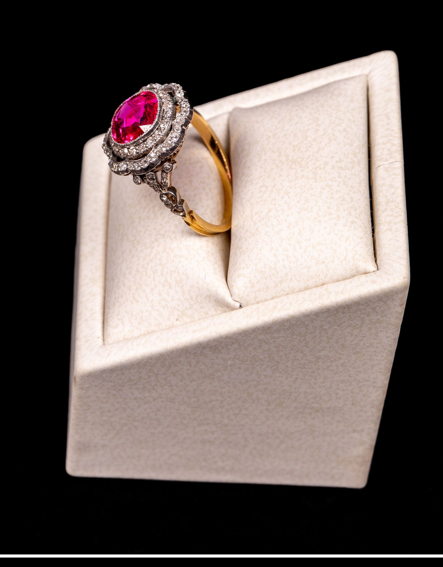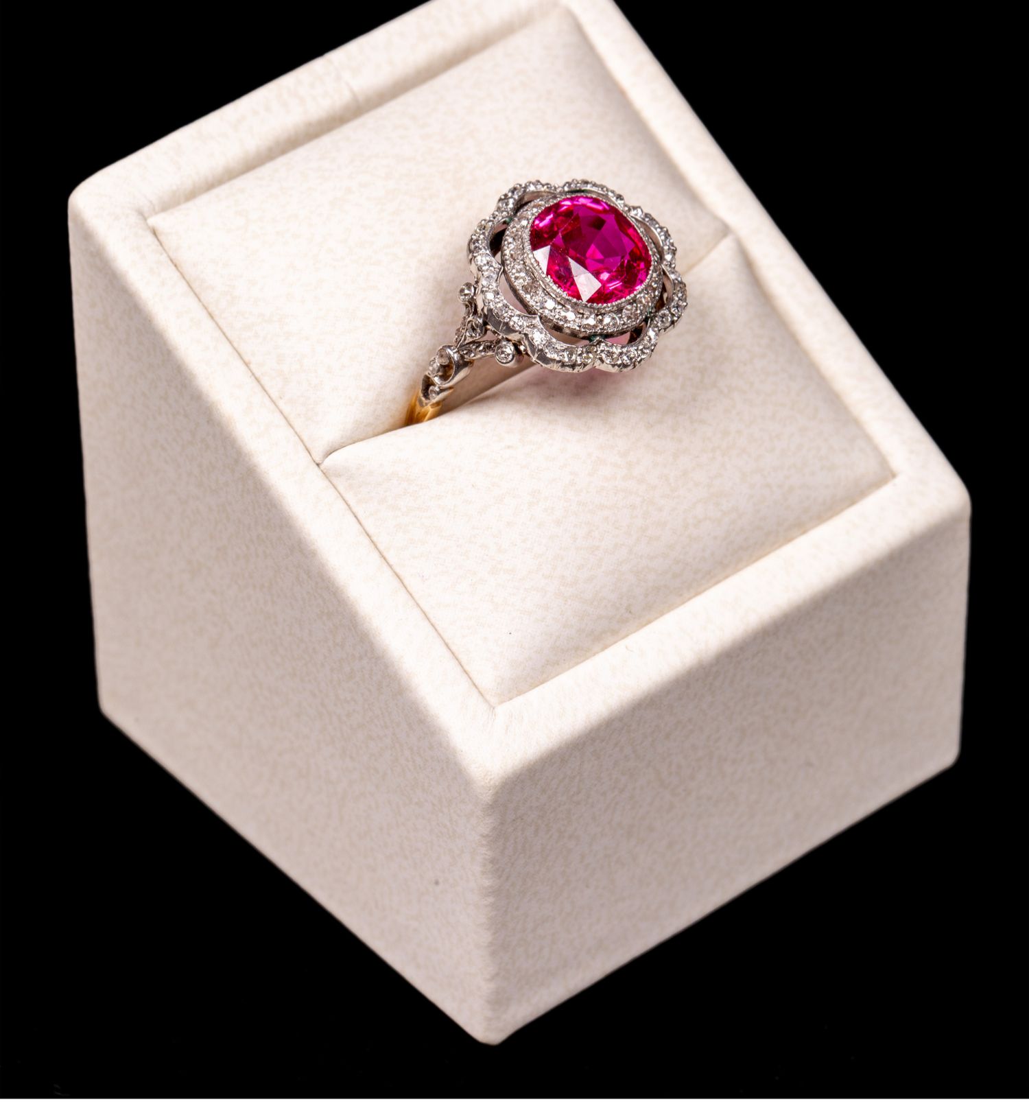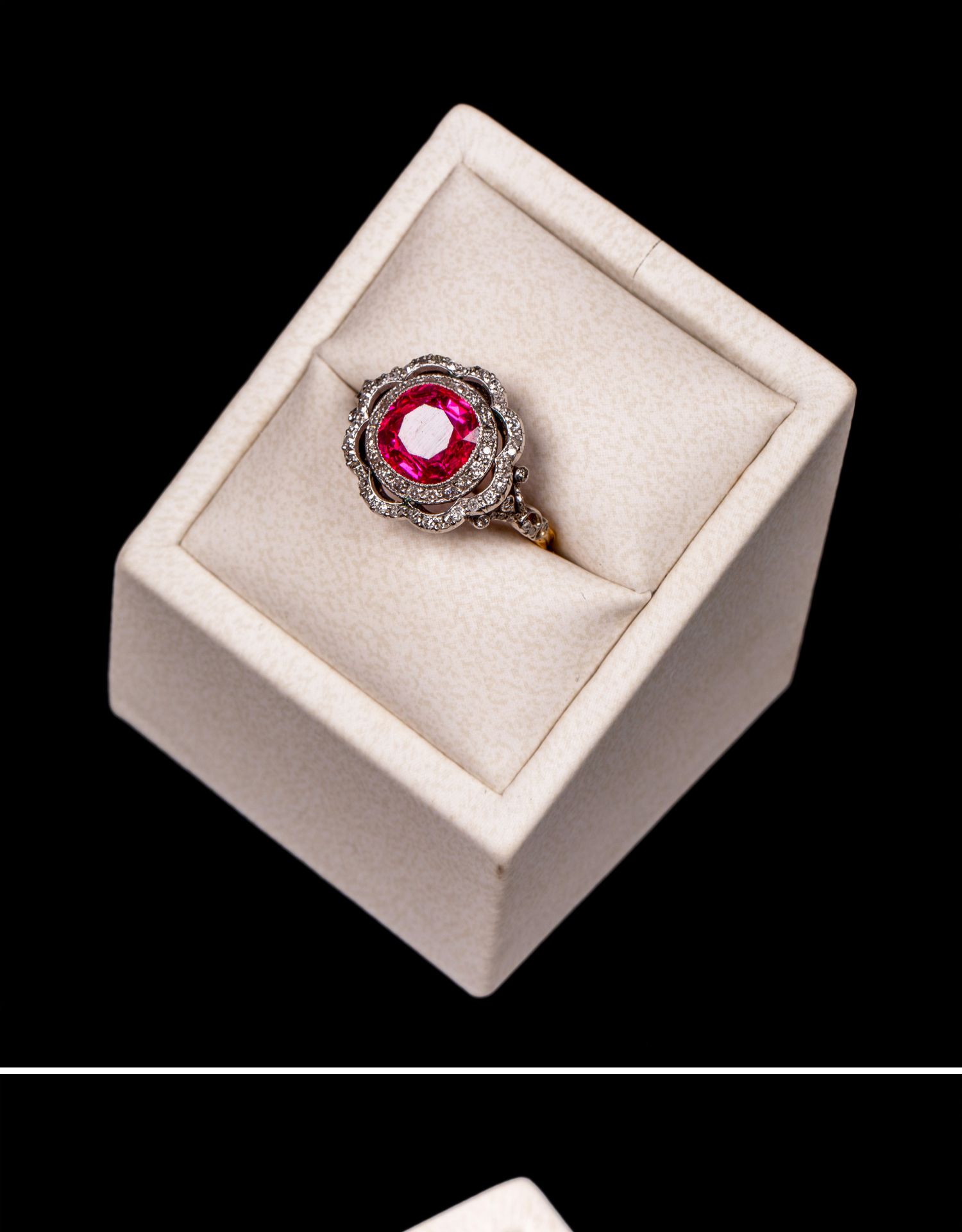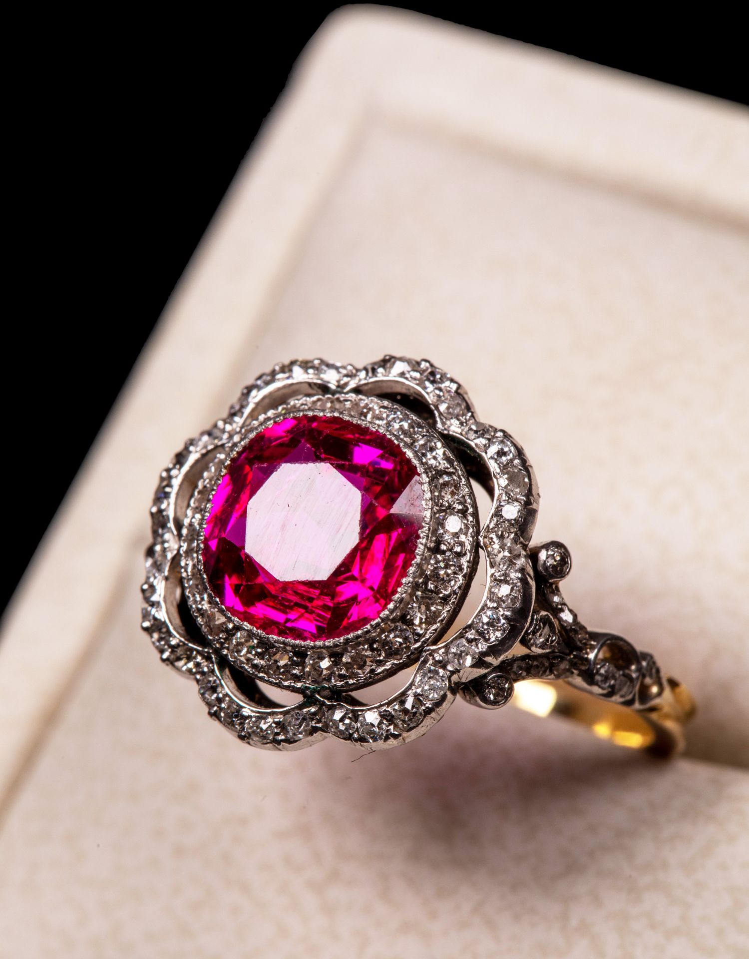 独角鹿西洋古董首饰女戒爱德华黄金铂金镶嵌缅甸红宝石钻石戒指