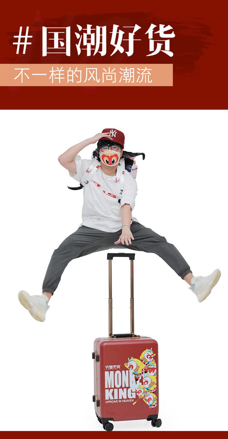 国潮新品银座大闹天宫系列拉杆箱行李箱可登机20寸铝框箱A-9389K