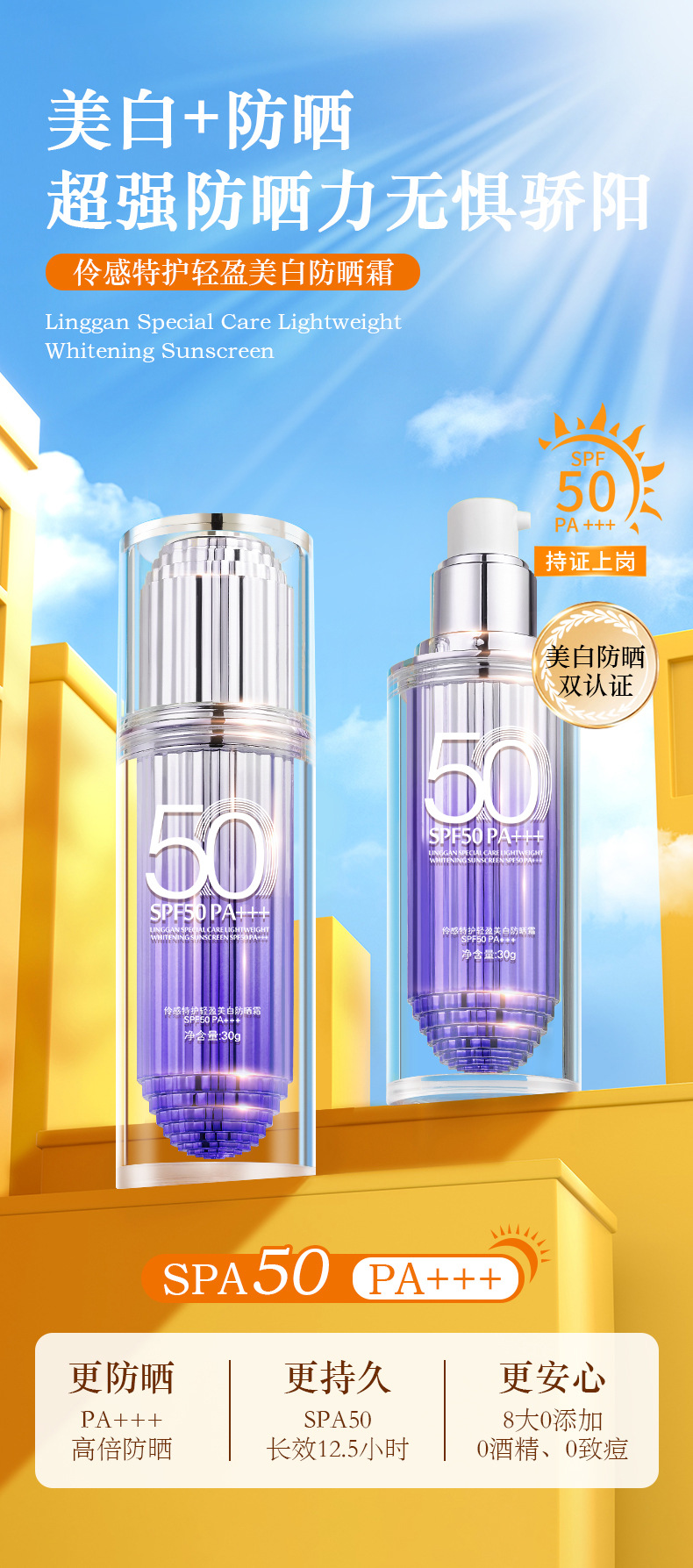 【GZ】无忧购45元2件伶感特护轻盈美白防晒霜MK835(截单后7天发货)