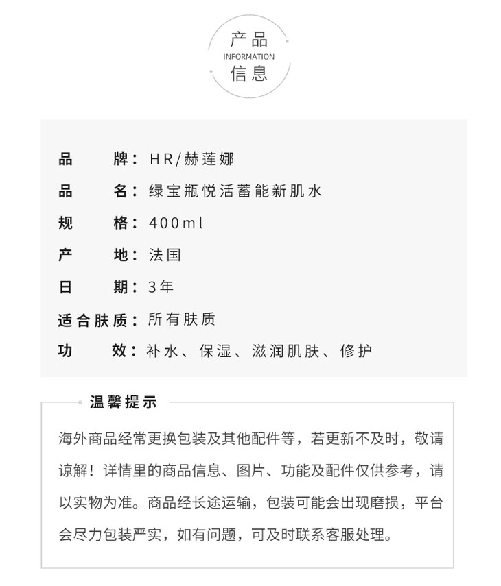 赫莲娜HR绿宝瓶精粹水新肌水400ml 补水保湿精华水护肤水【CDF】