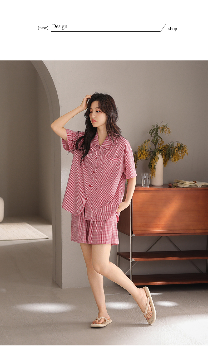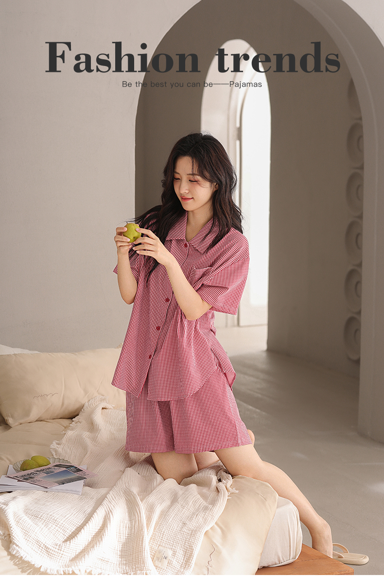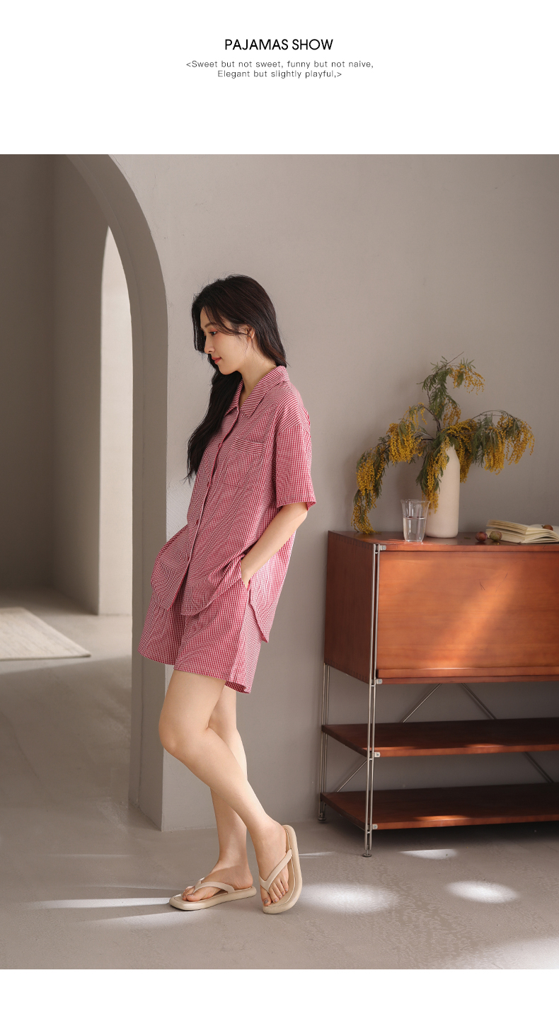 可人儿小众设计师新款泡泡绵女士睡衣夏季短袖可外出家居服套装