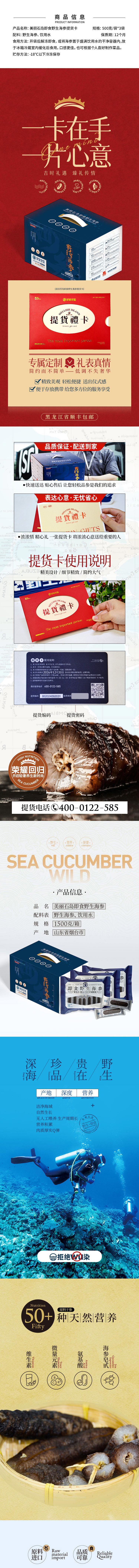 新版 美丽石岛即食野生海参提货卡(1.5kg/箱)/张