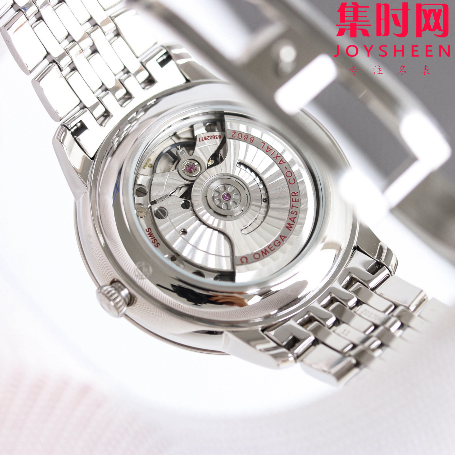 316L精钢表带原装折叠扣,内部搭载定制Cal.8802自动上链机械机芯,透过耐磨损蓝宝石玻璃表背,机芯的运转美态清晰可见。