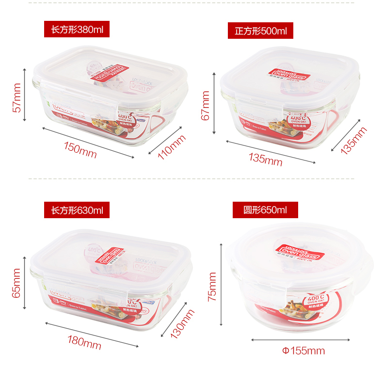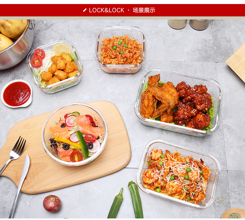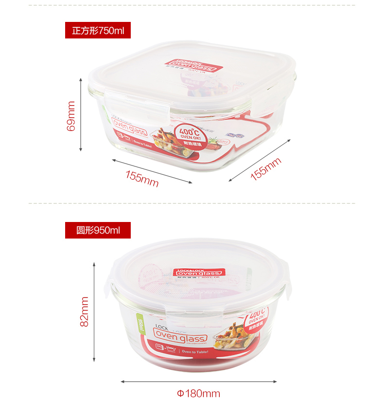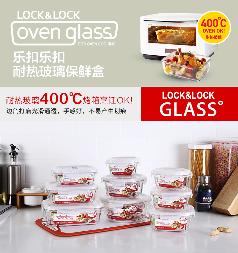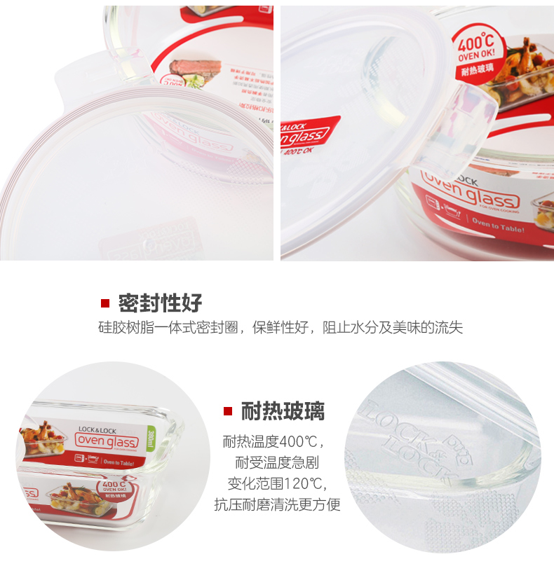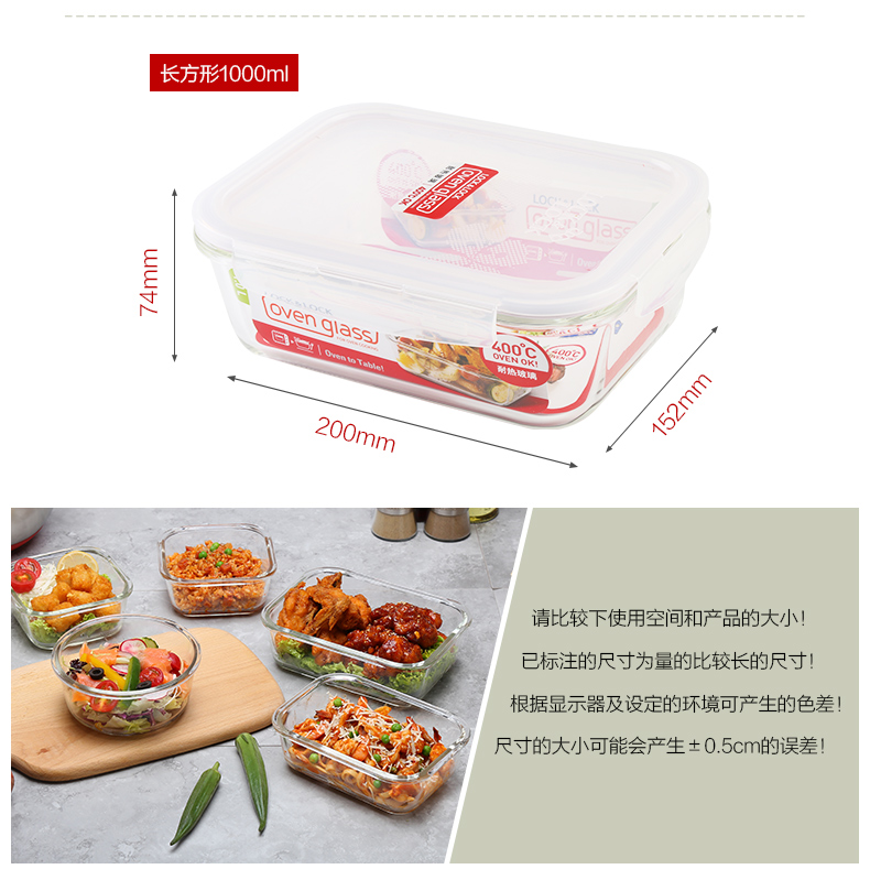 乐扣乐扣玻璃保鲜盒饭盒便当盒宝宝辅食上班族微波炉冰箱收纳