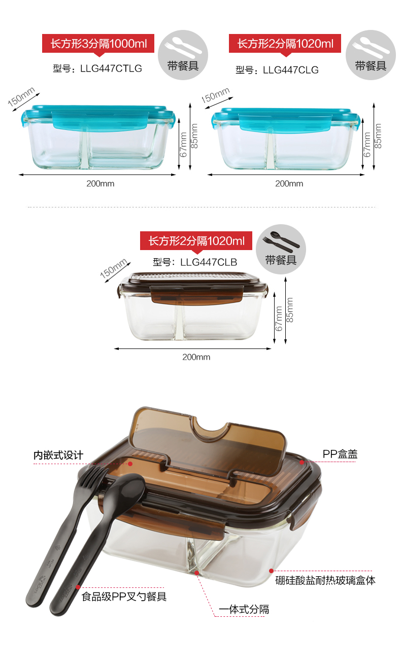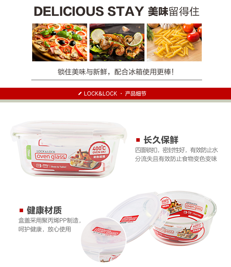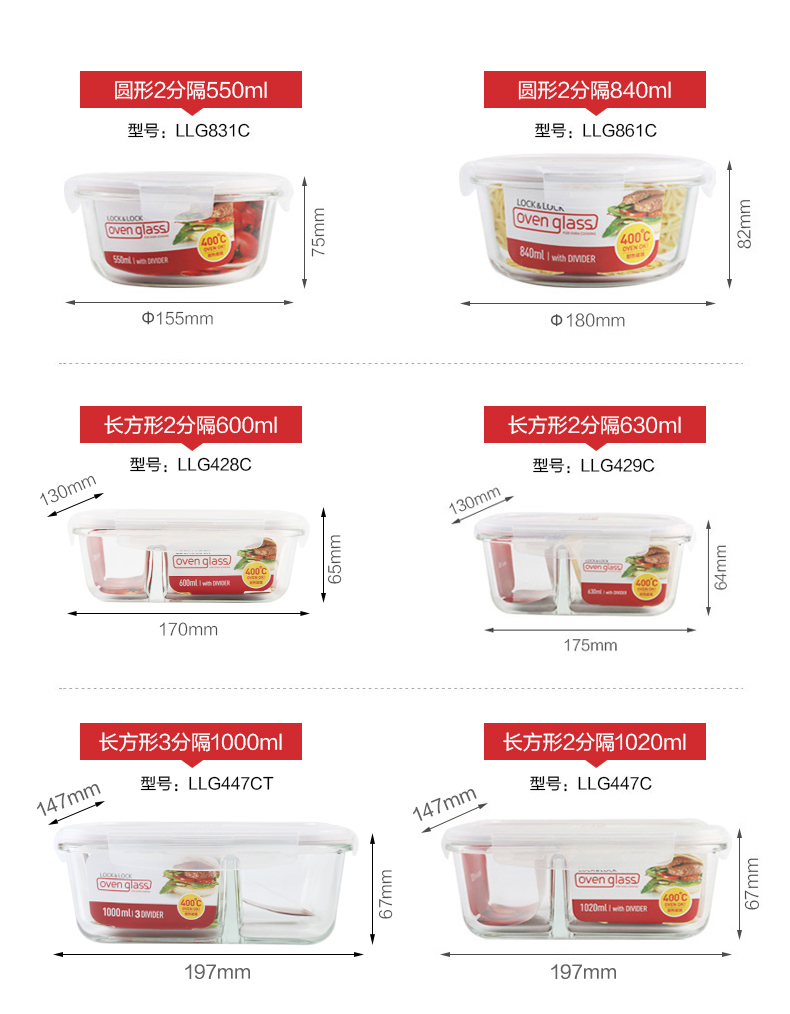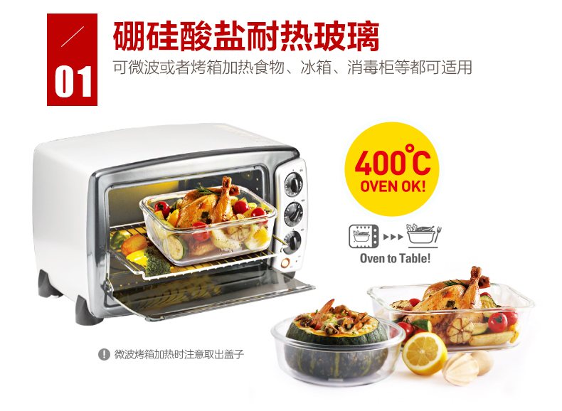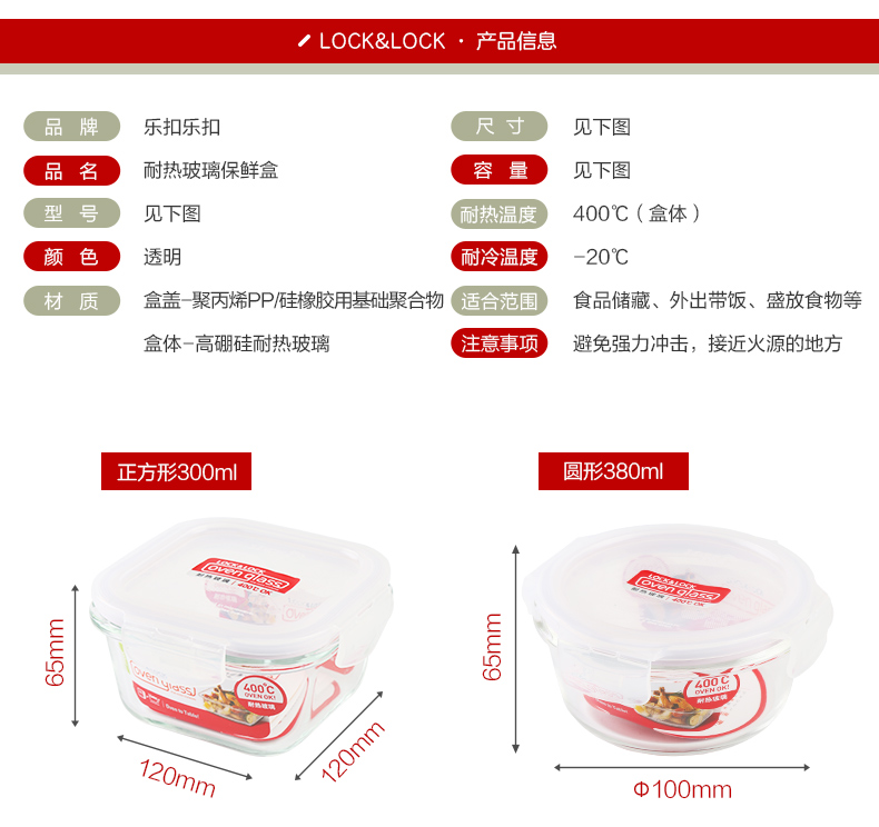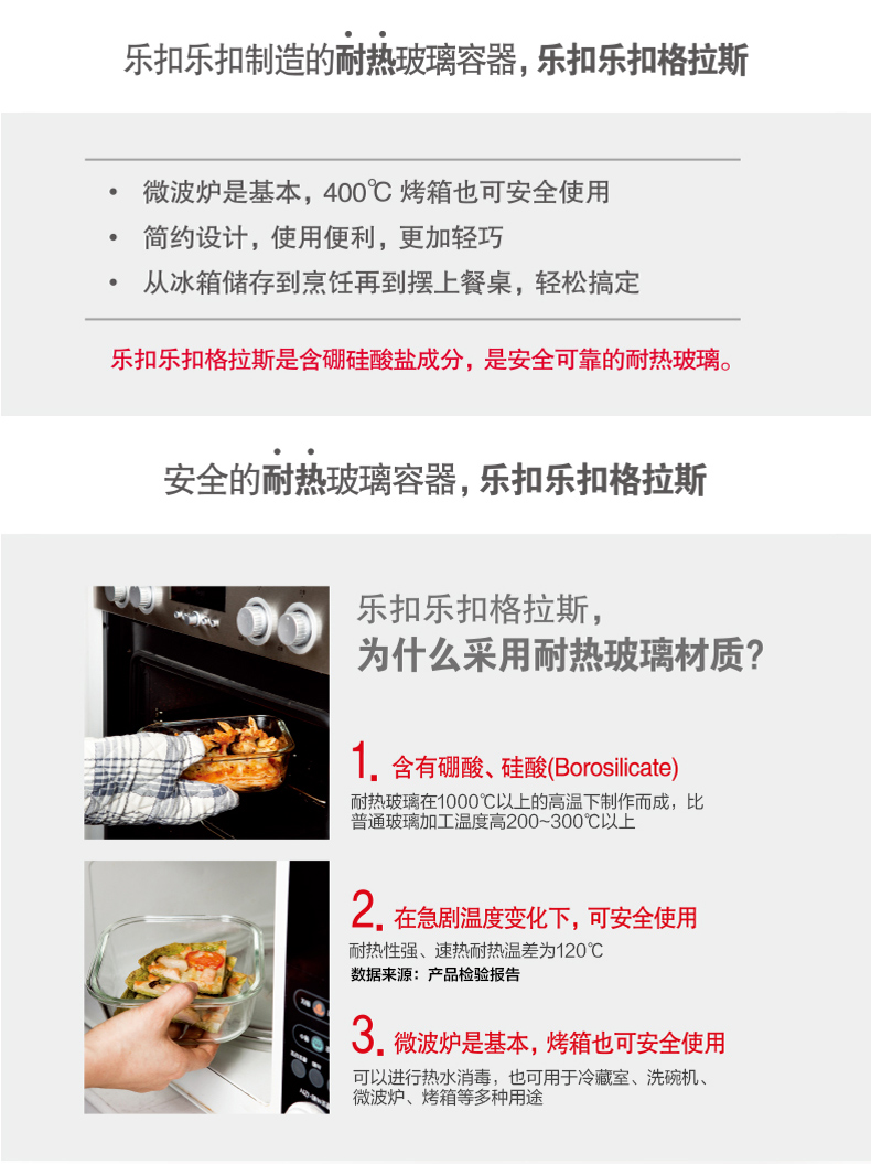 乐扣乐扣玻璃保鲜盒饭盒便当盒宝宝辅食上班族微波炉冰箱收纳